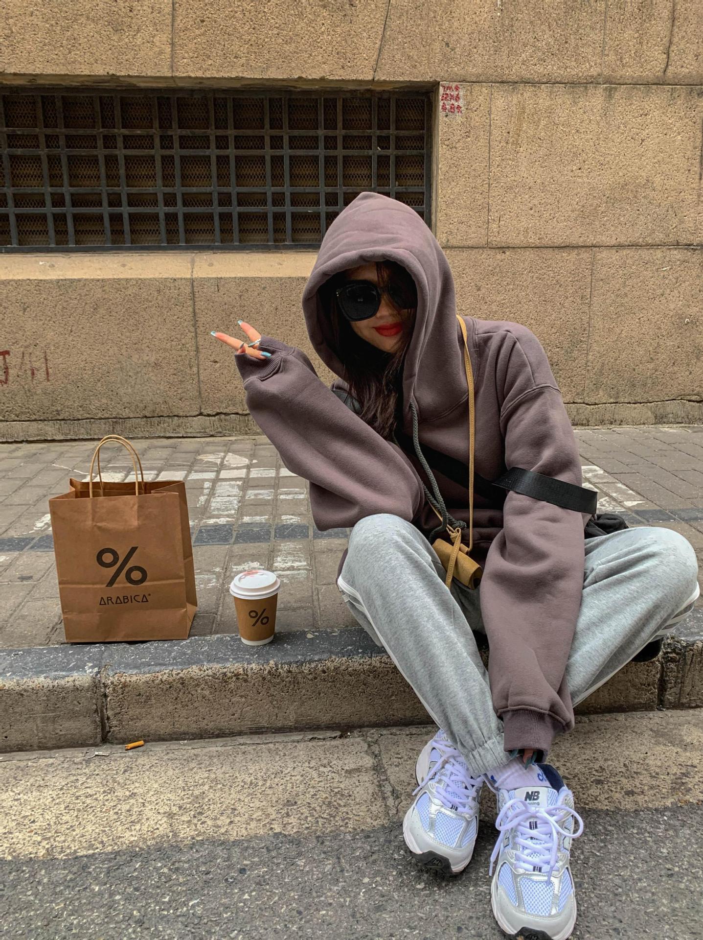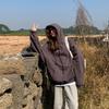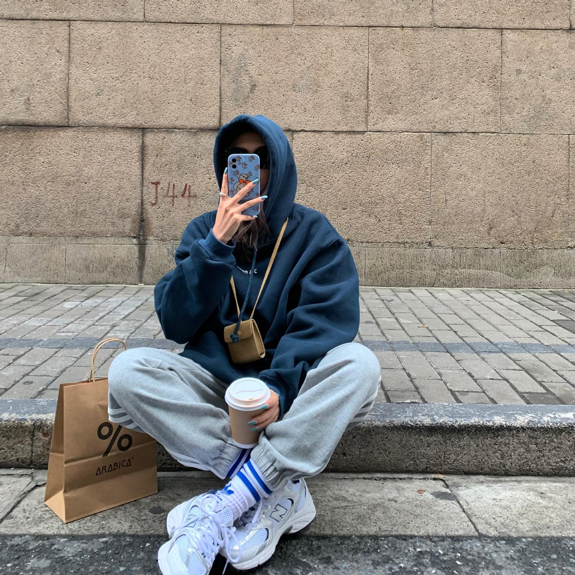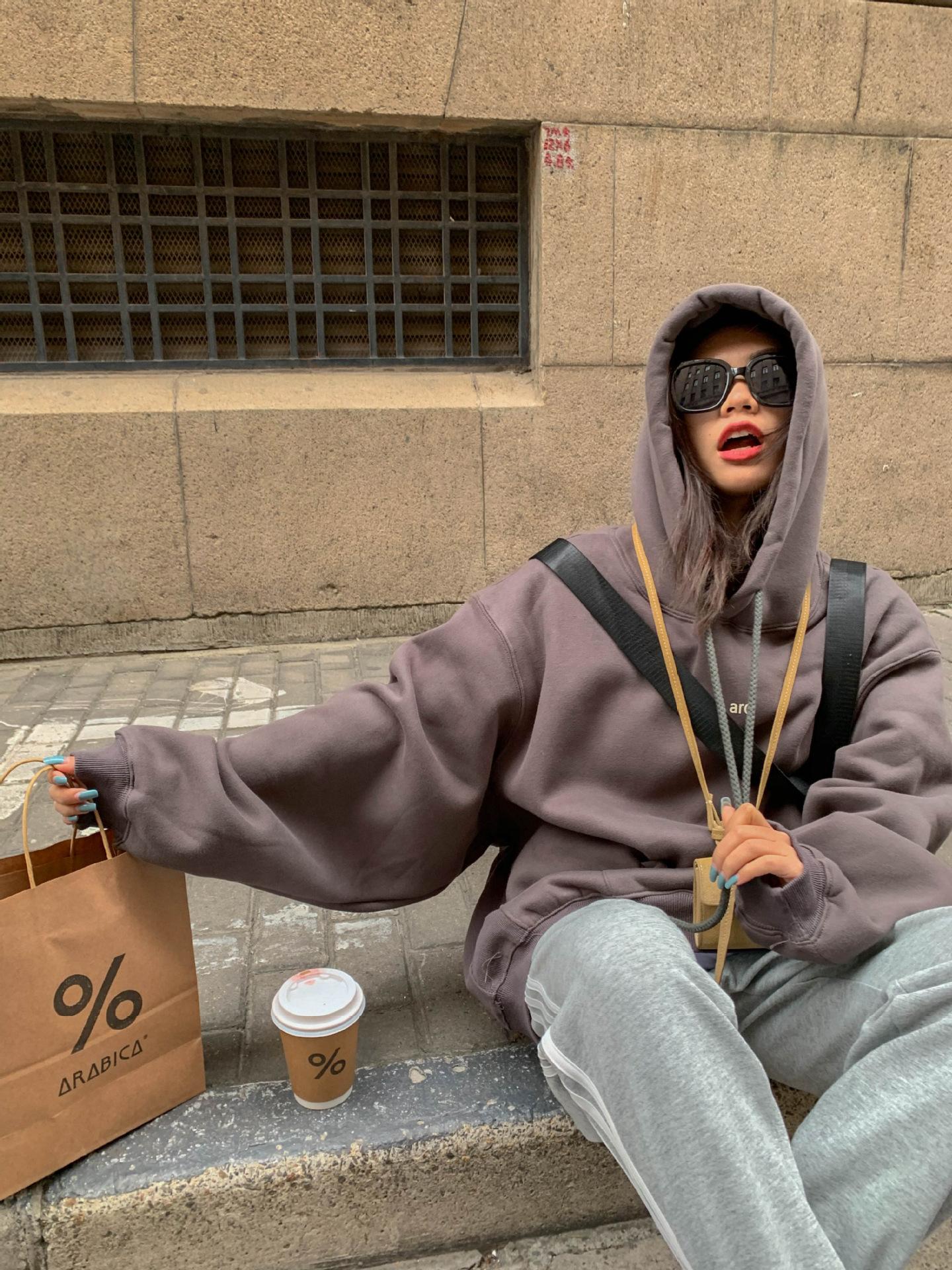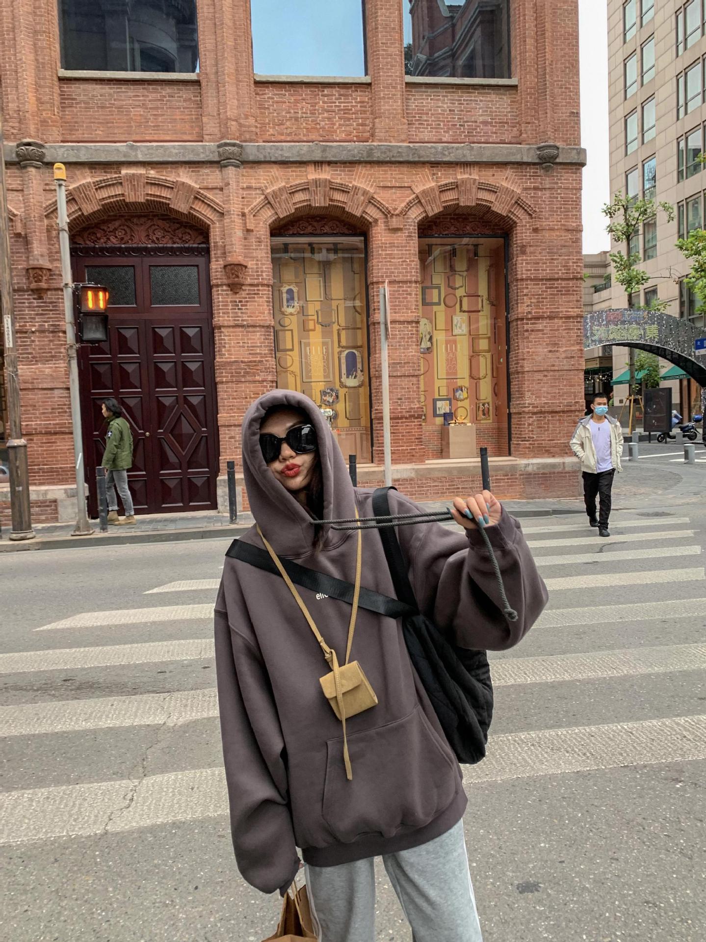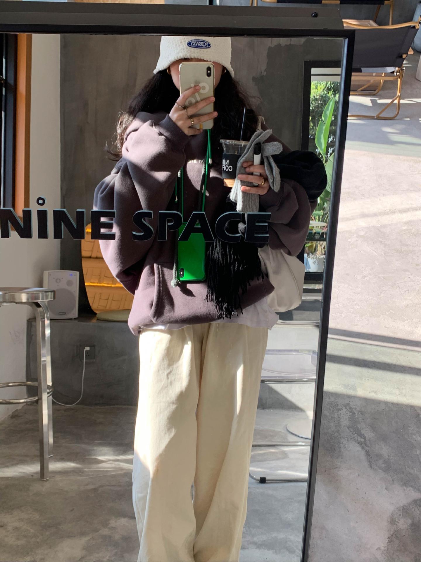 Suéter holgado estilo retro americano para mujer, de otoño e invierno, con estampado de letras David y forro polar de 190 g, tendencia