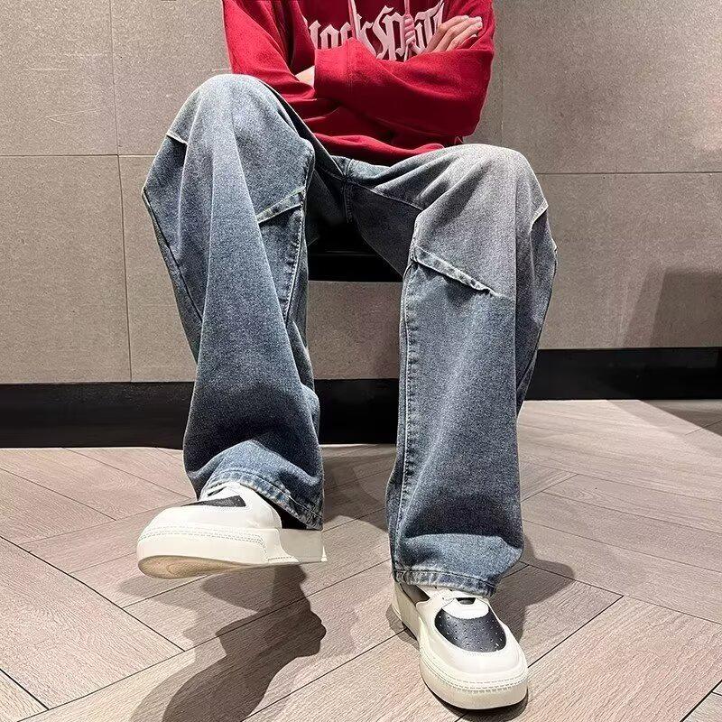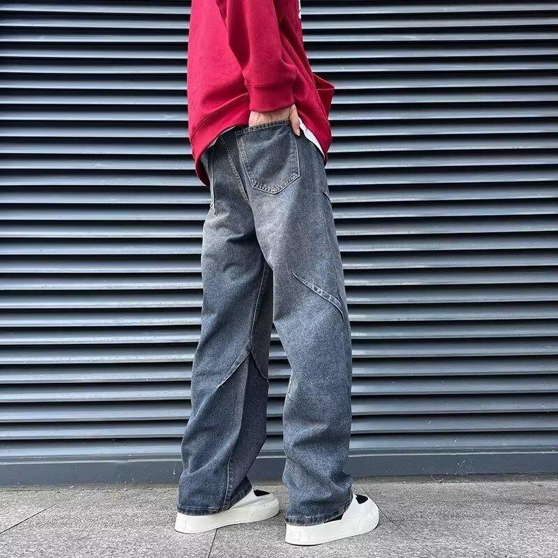 Jeans Casuales para Adolescentes Americano High Street Retro Pantalones de Pierna Ancha Primavera y Otoño Sueltos Rectos Moda Pantalones Nuevos