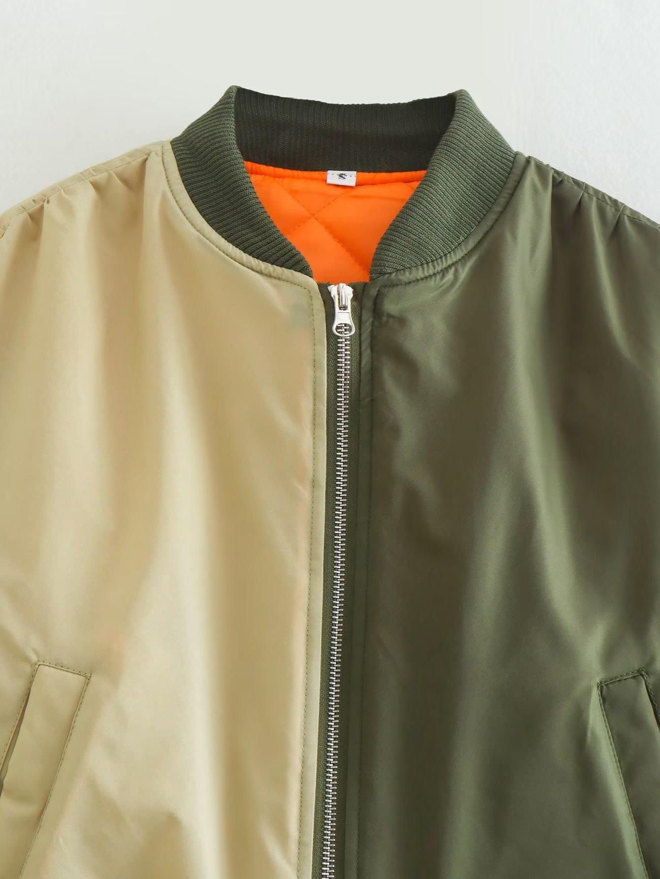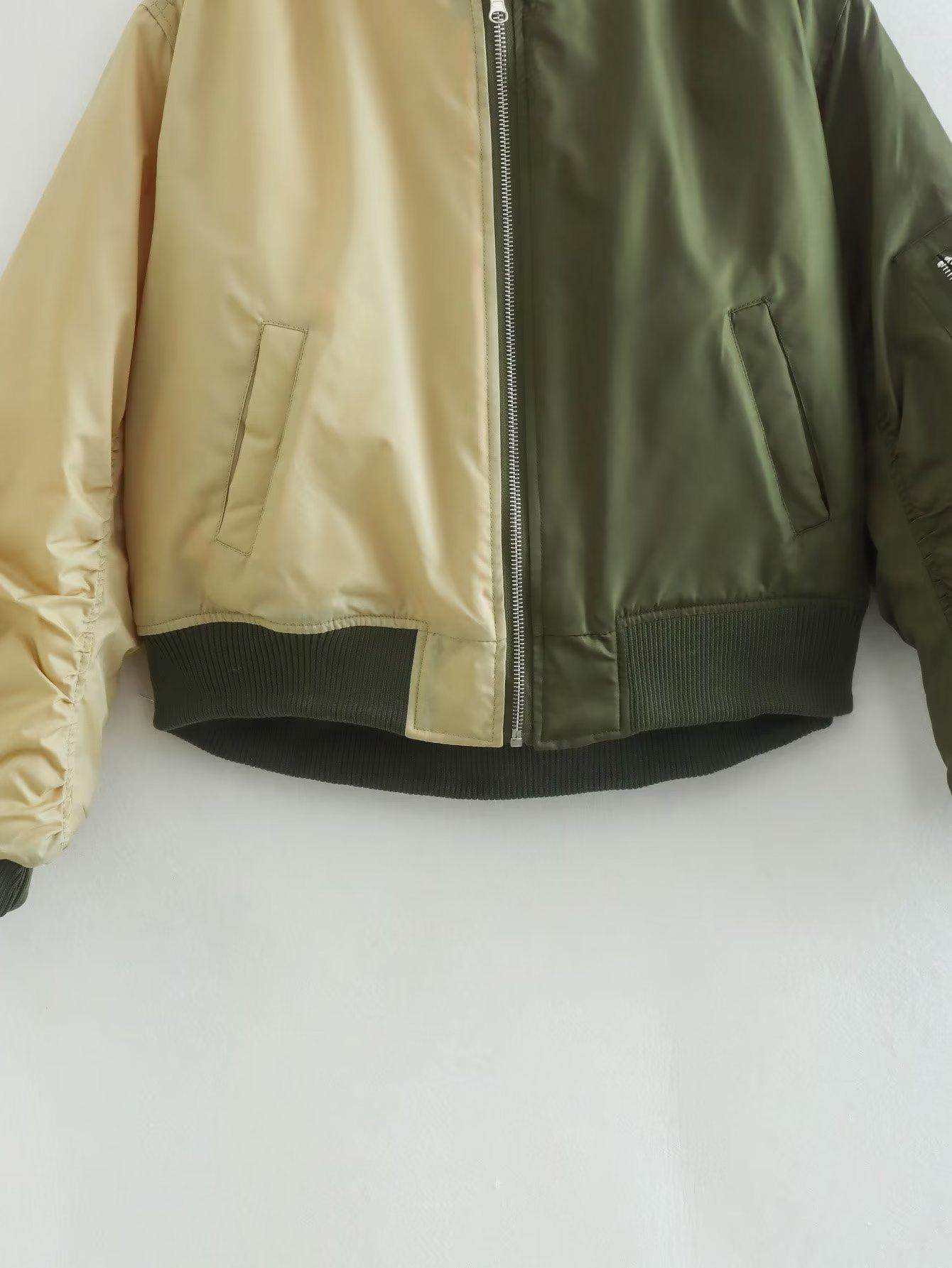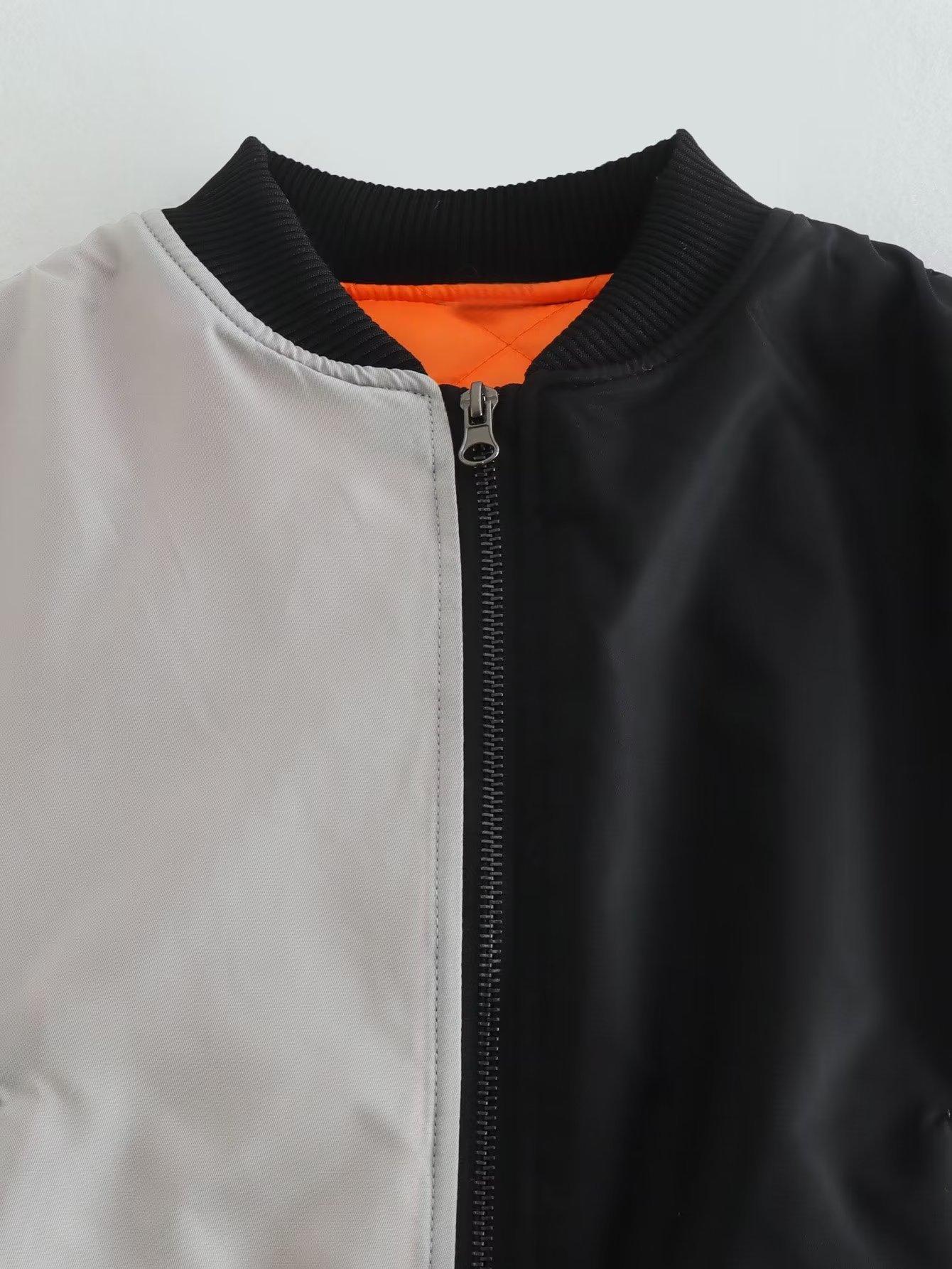 Venta al por mayor 2022, abrigo de algodón con cuello alto y cremallera en contraste de color para mujer, moda de otoño e invierno, YY9-60779