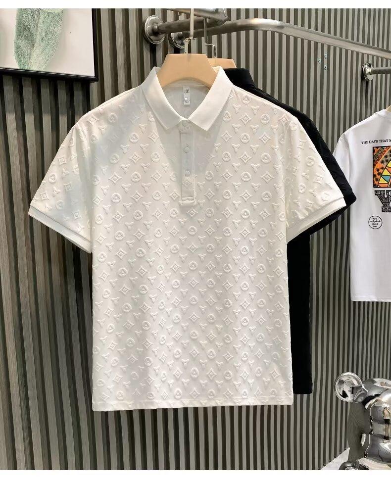 Camiseta de manga corta de verano para hombre, polo ligero de lujo con jacquard juvenil, corte entallado, base de encaje Lel, manga corta, marca de moda.