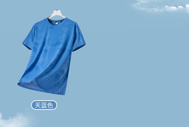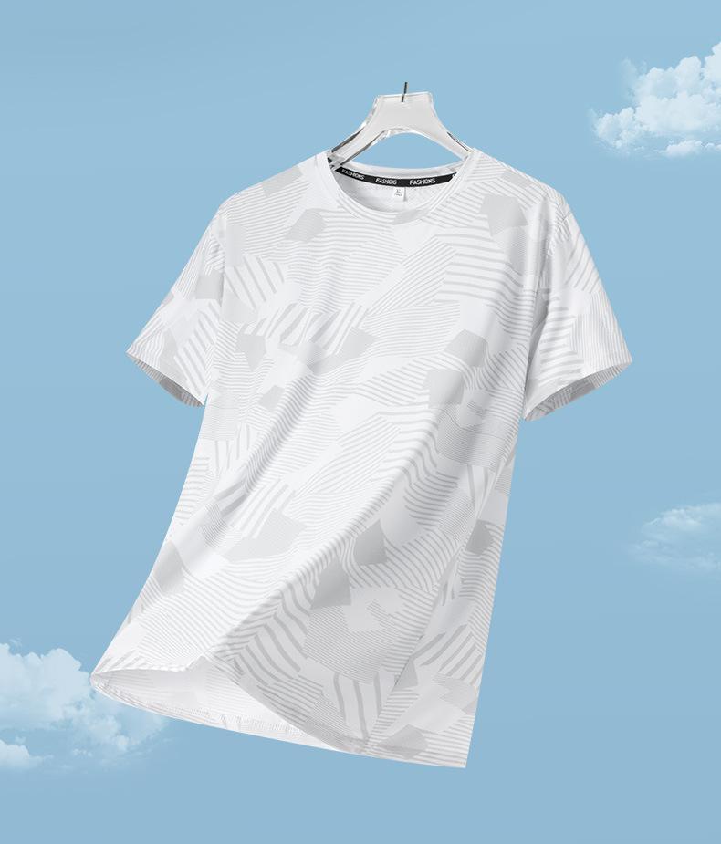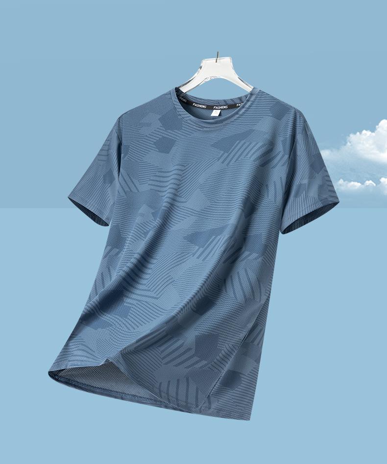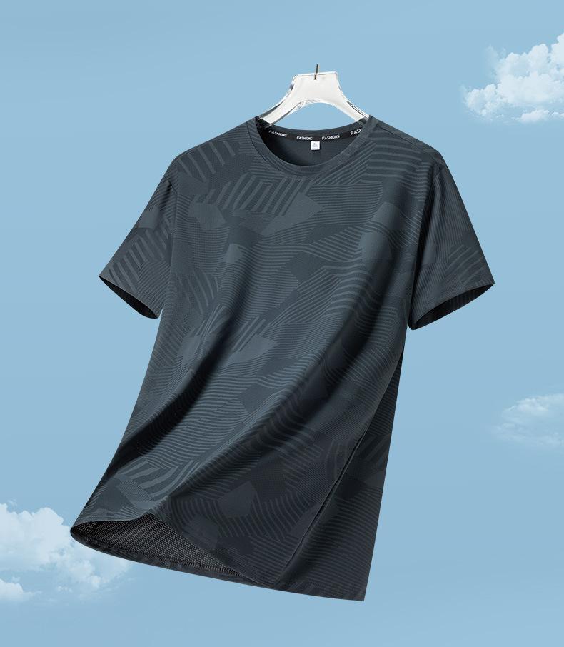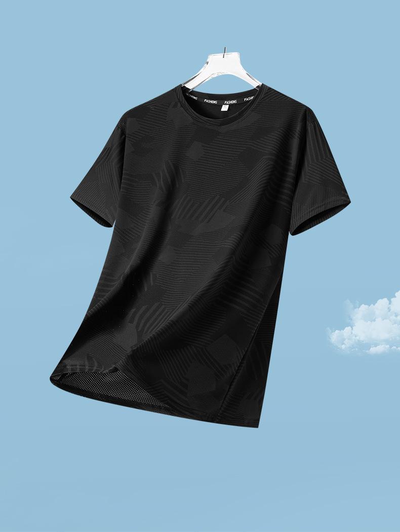 Camiseta de manga corta para hombre de verano delgada de seda de hielo fresca de malla de cuello redondo para hombre ropa deportiva de verano de secado rápido