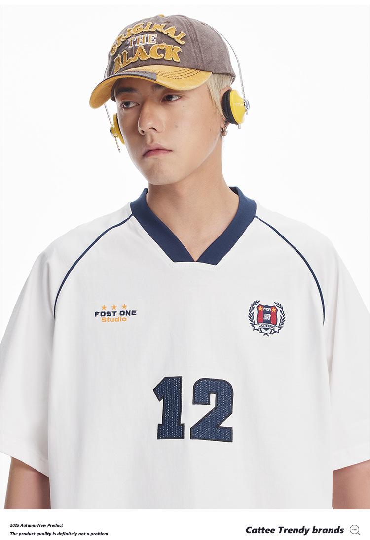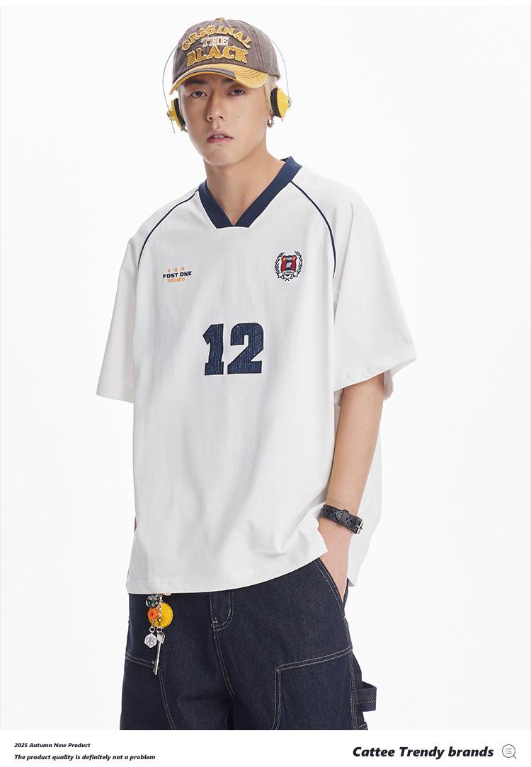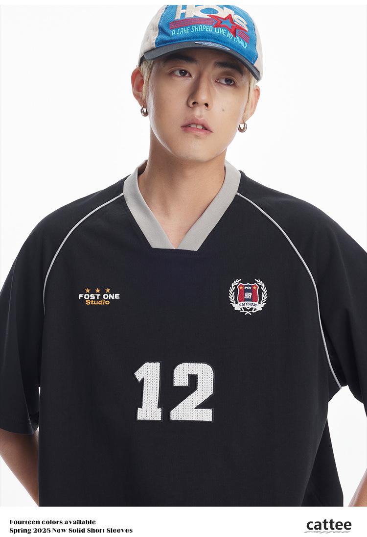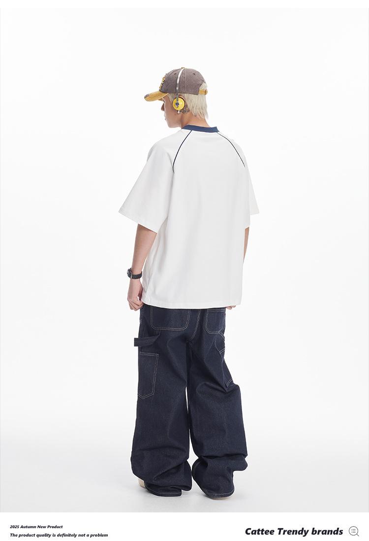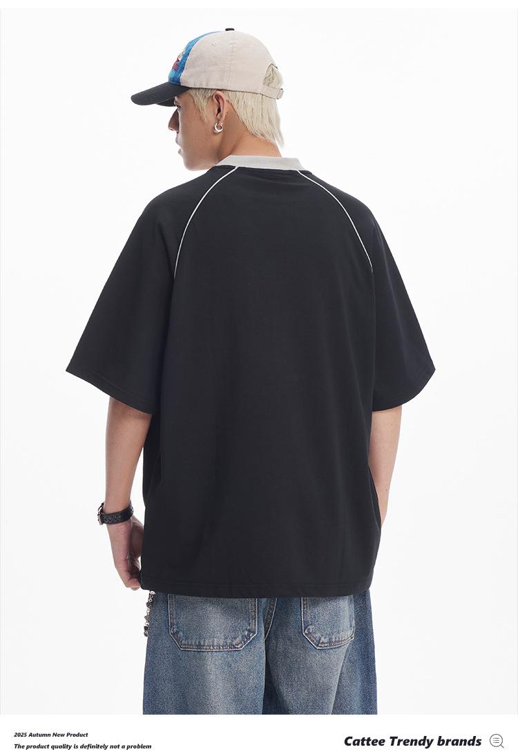 Camiseta CATTEE de manga corta bordada con rayas gruesas de algodón puro de 300 g para hombre, estilo retro americano, deportiva, holgada, para parejas