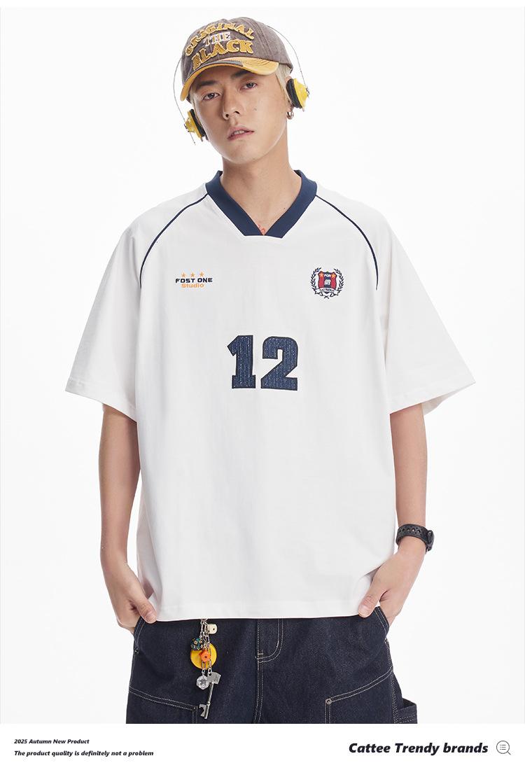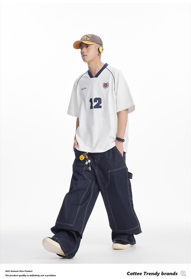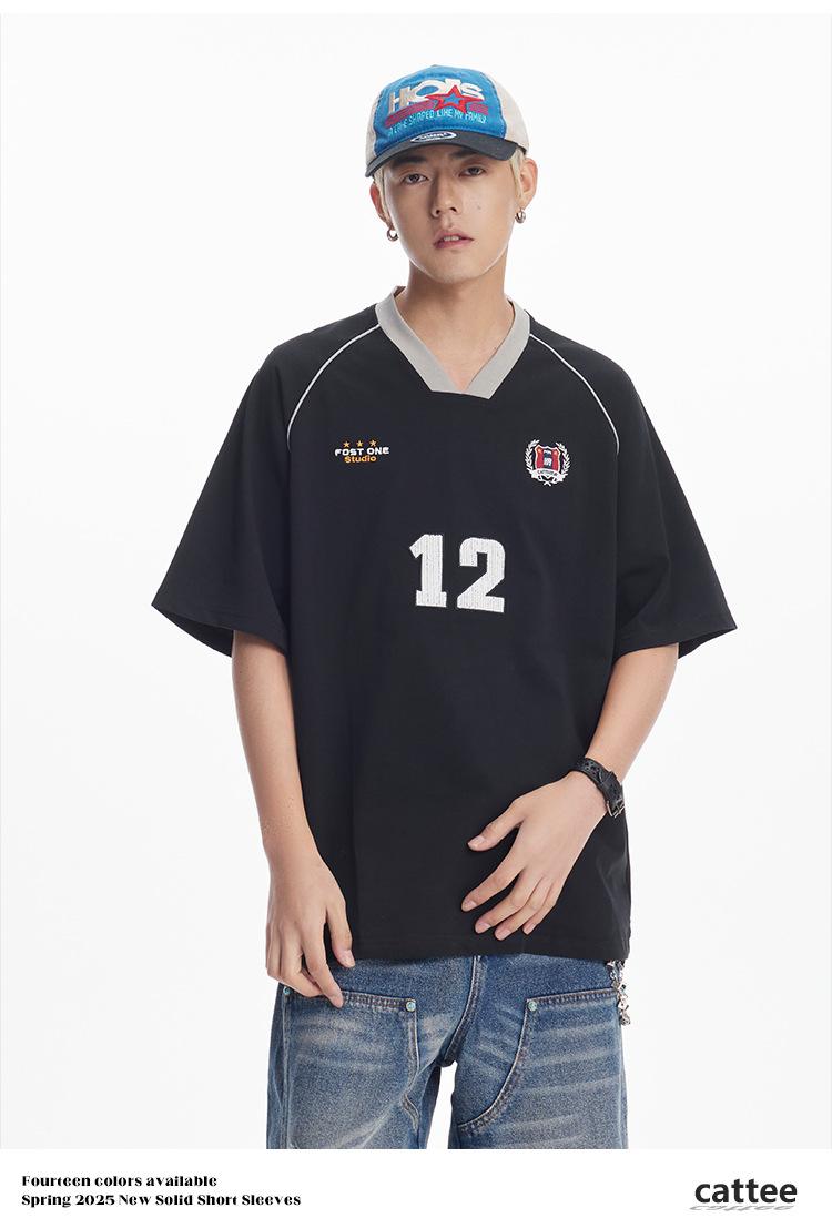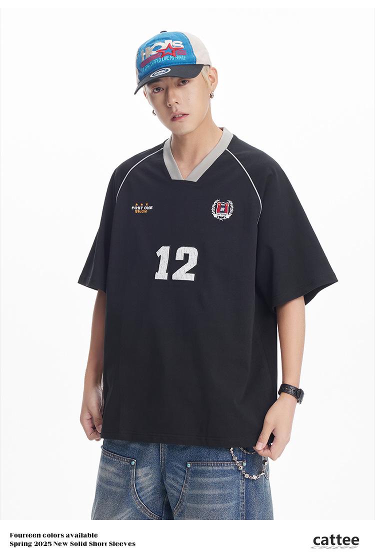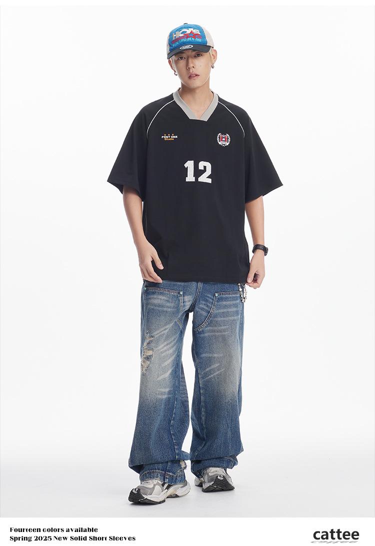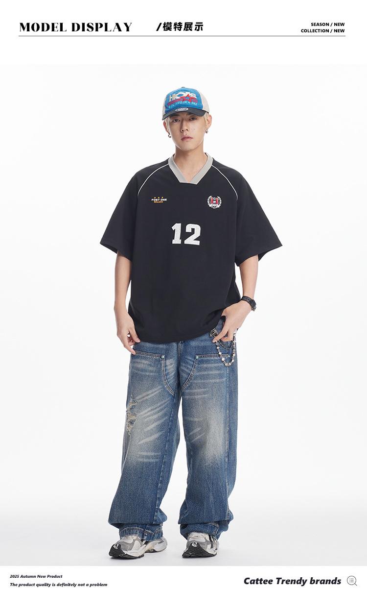 Camiseta CATTEE de manga corta bordada con rayas gruesas de algodón puro de 300 g para hombre, estilo retro americano, deportiva, holgada, para parejas