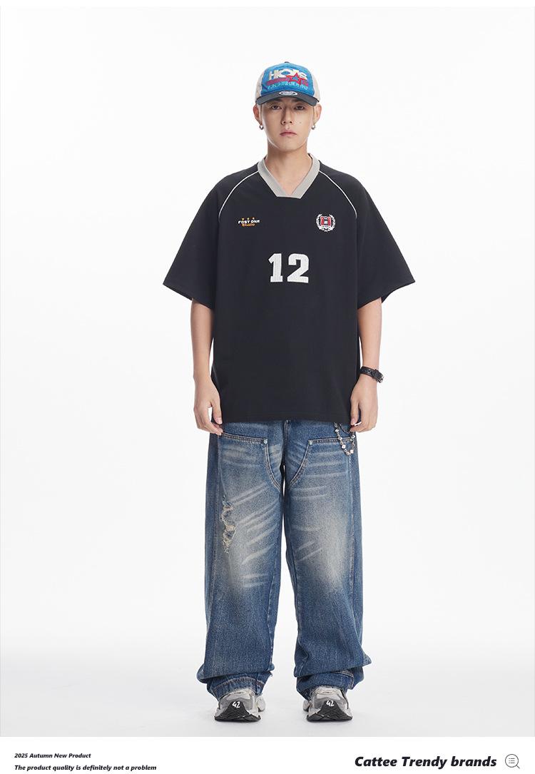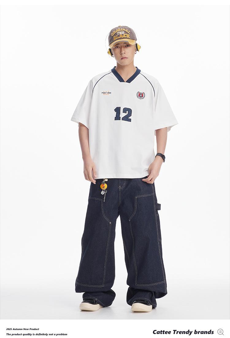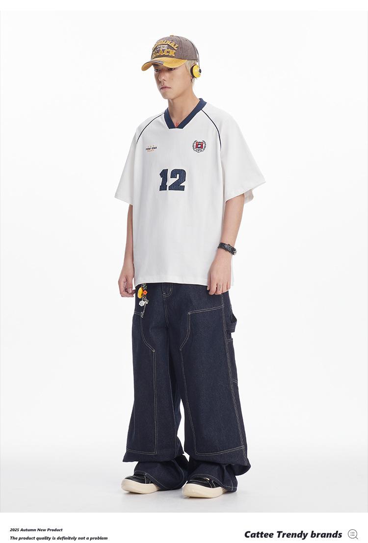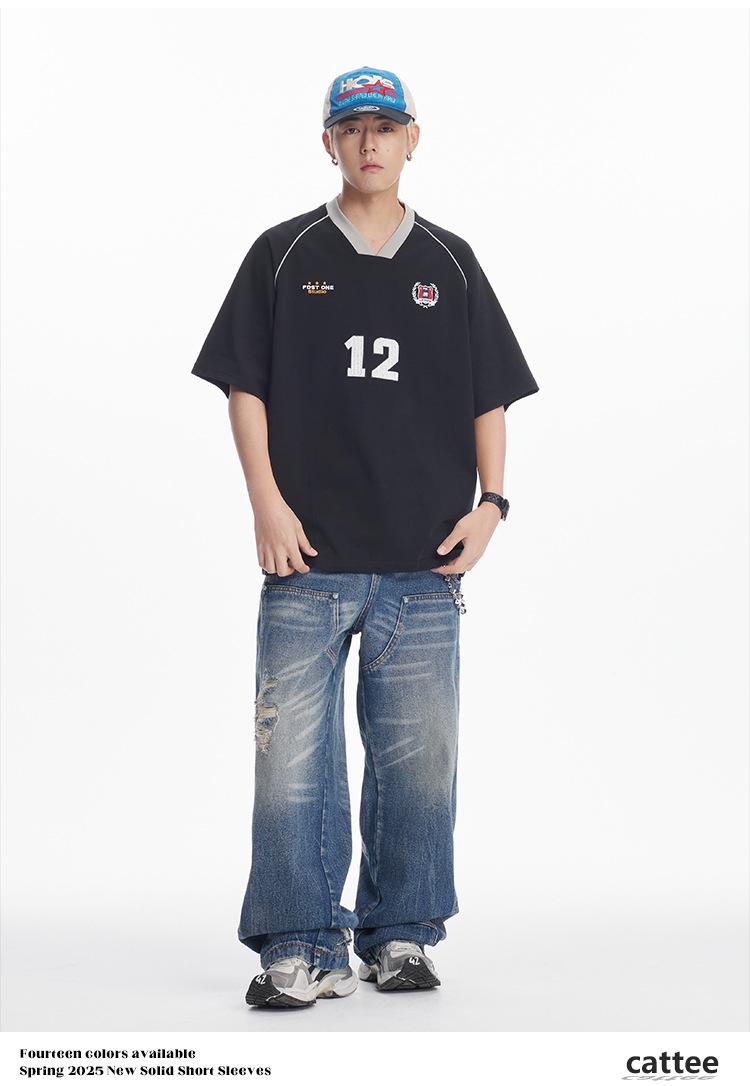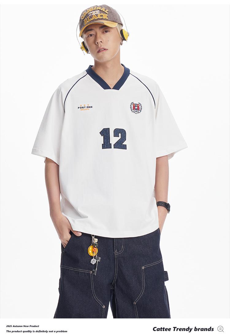 Camiseta CATTEE de manga corta bordada con rayas gruesas de algodón puro de 300 g para hombre, estilo retro americano, deportiva, holgada, para parejas