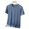 2025 Nueva camiseta de secado rápido de verano fina para hombre, camiseta de manga corta con cuello redondo, parte superior de seda helada, elástica y holgada de verano