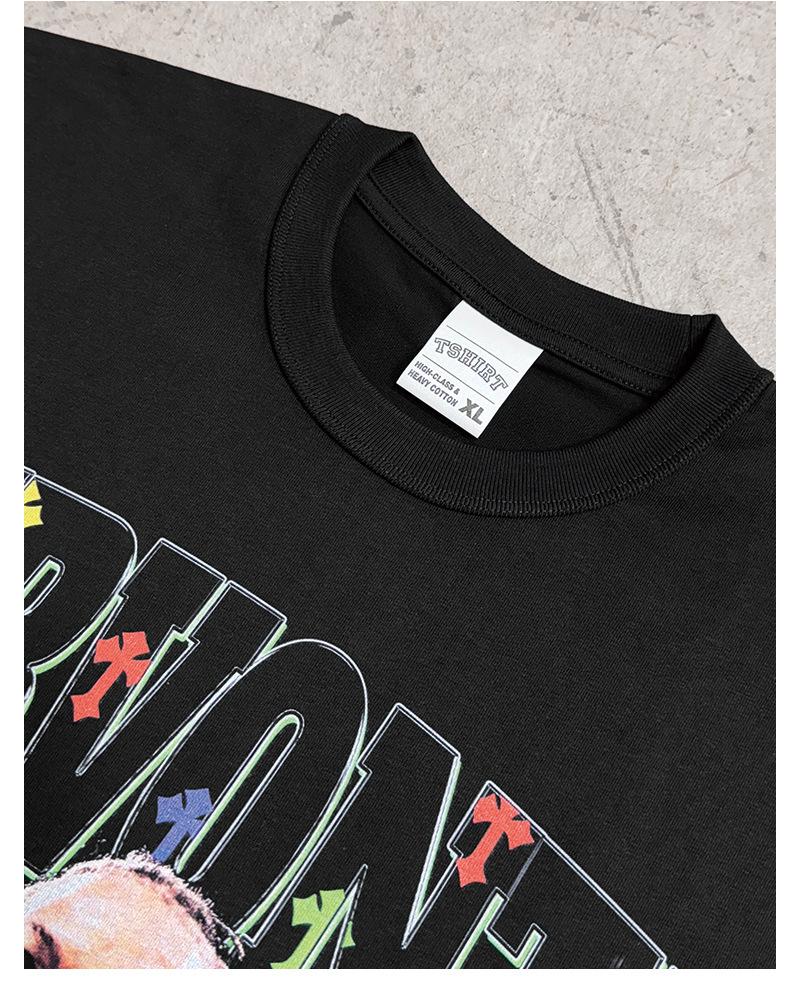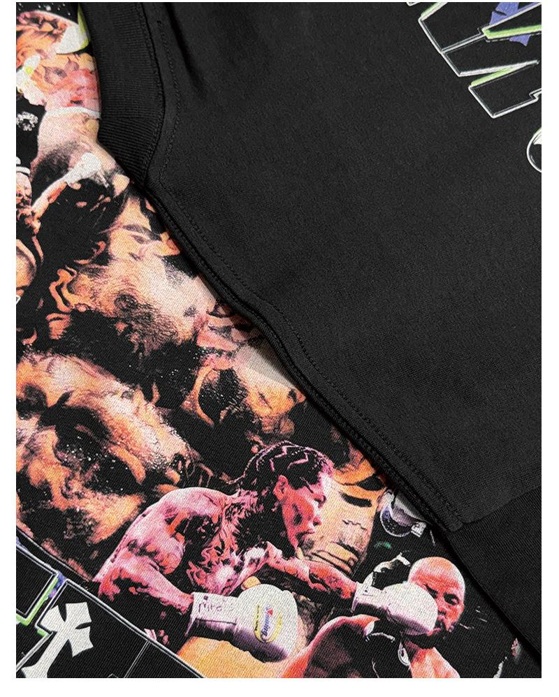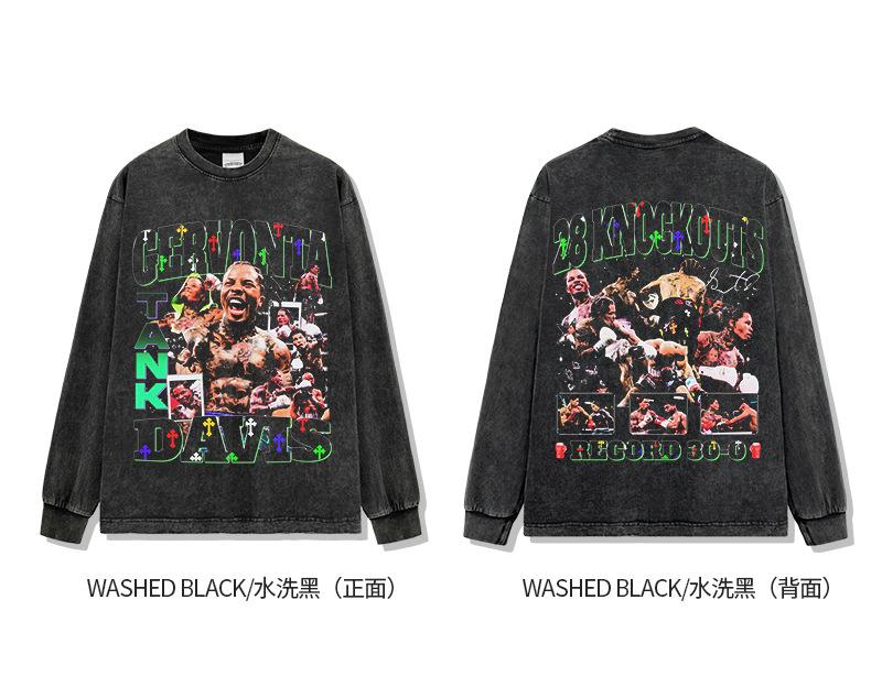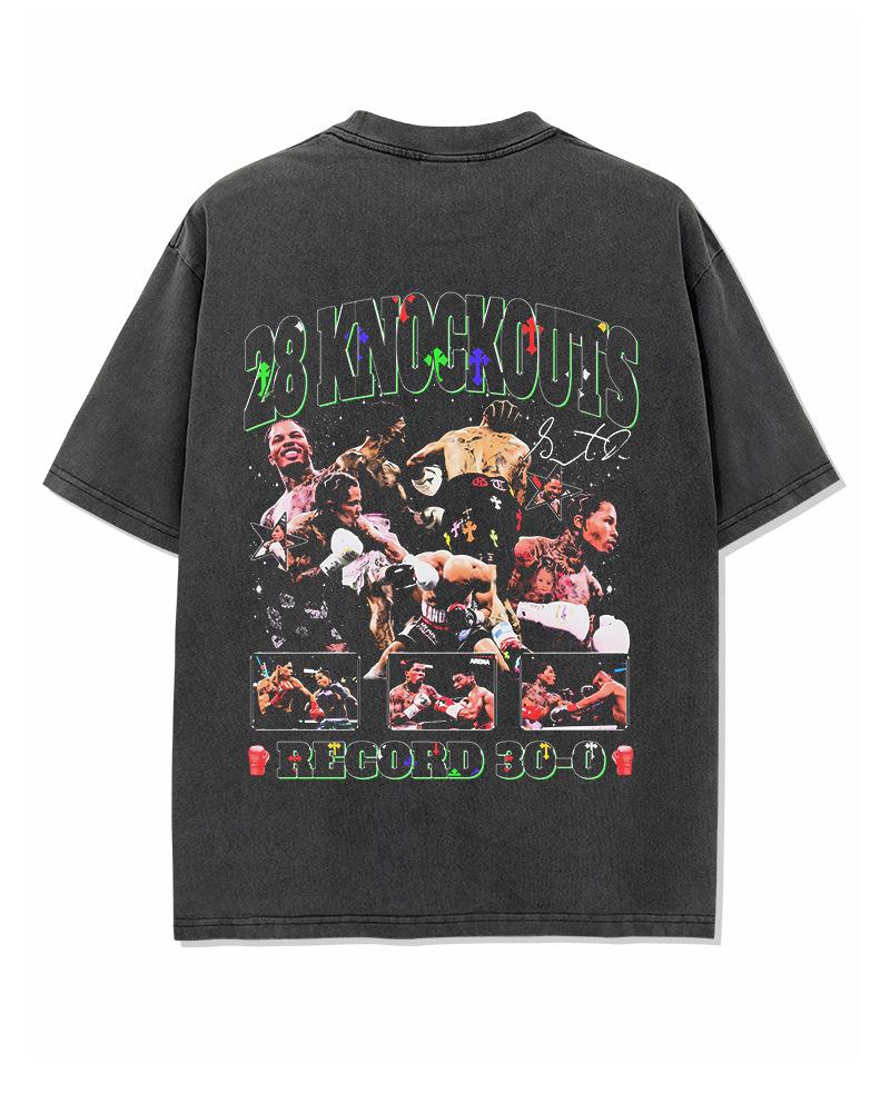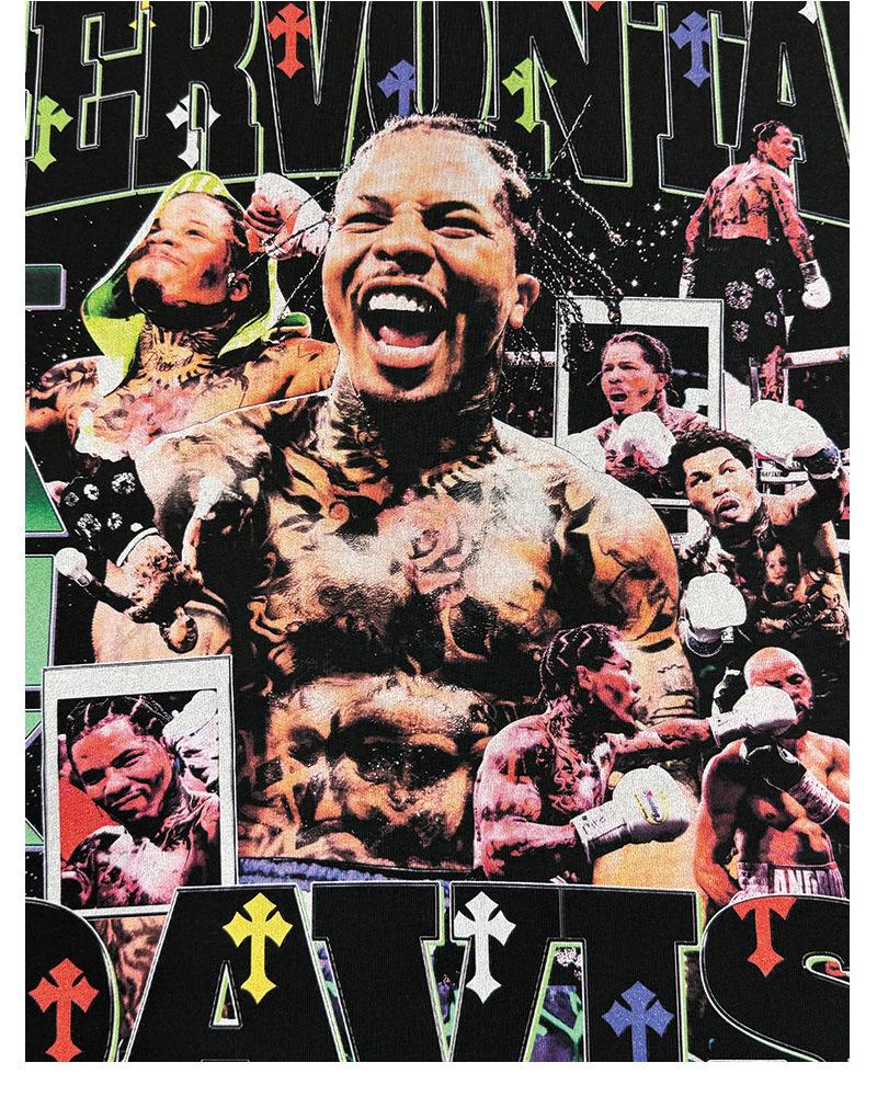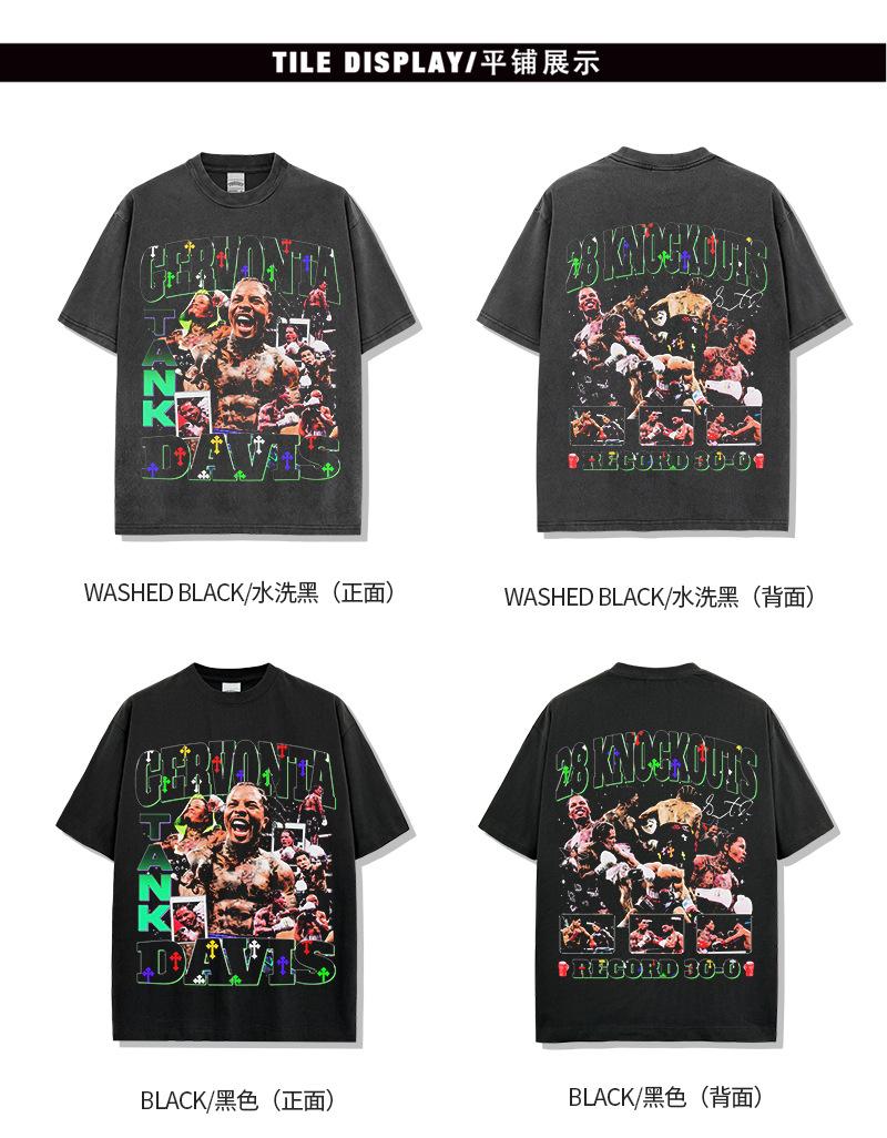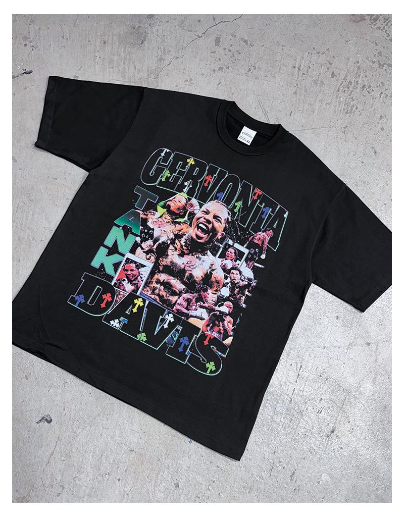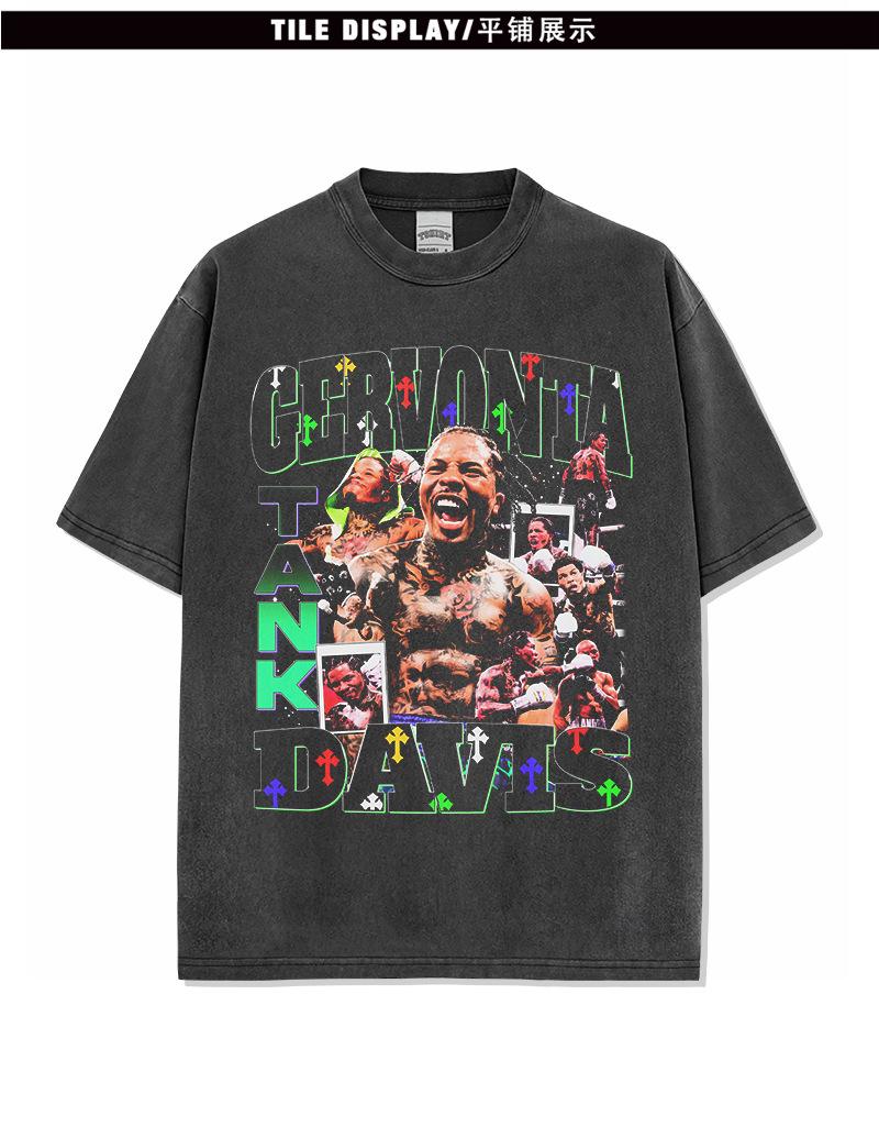 Camiseta de manga corta lavada con estampado de GERVONTA DAVIS, estilo americano, con cuello redondo y capucha pesada para hombre