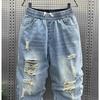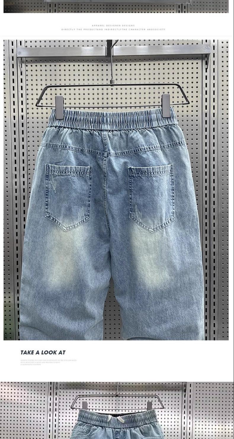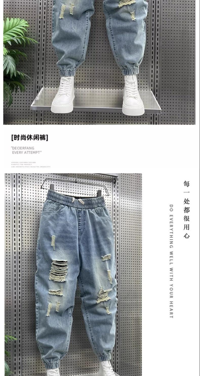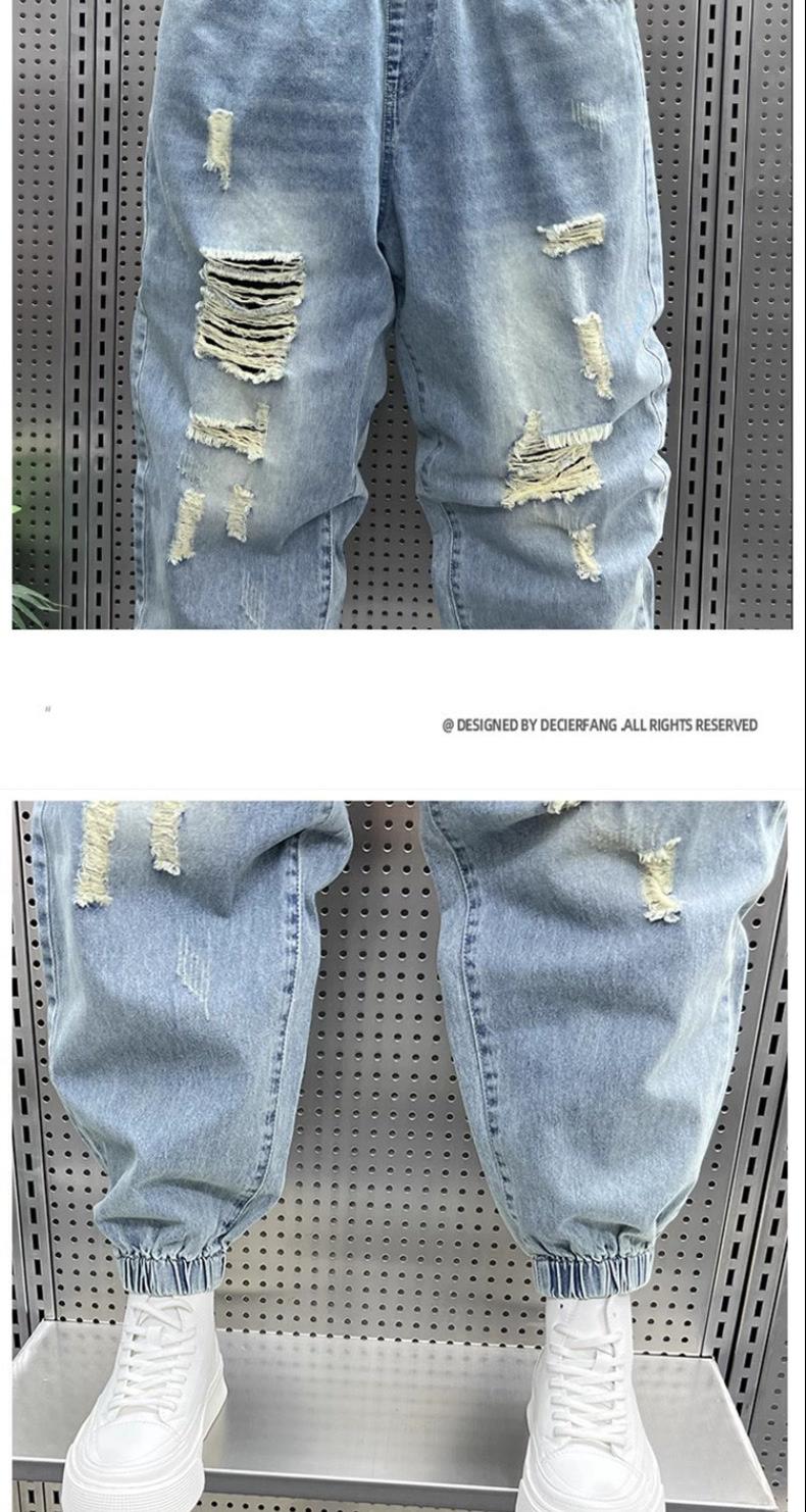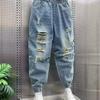Pantalones Harem Jogger Rotos de Calle Alta Jeans Casuales de Moda para Hombre Americano Lavado Holgado Versátil Pantalones Recortados de Color Claro