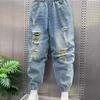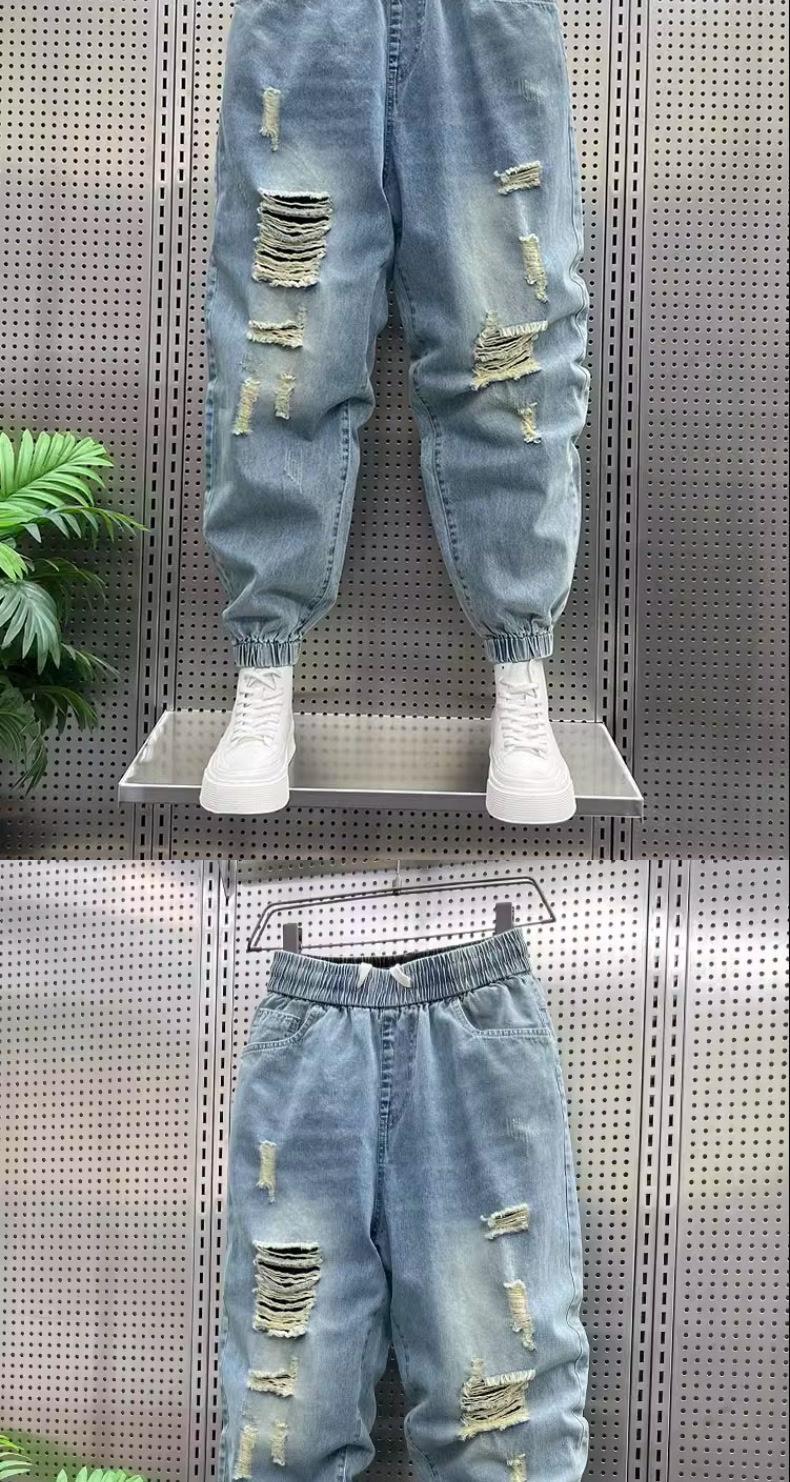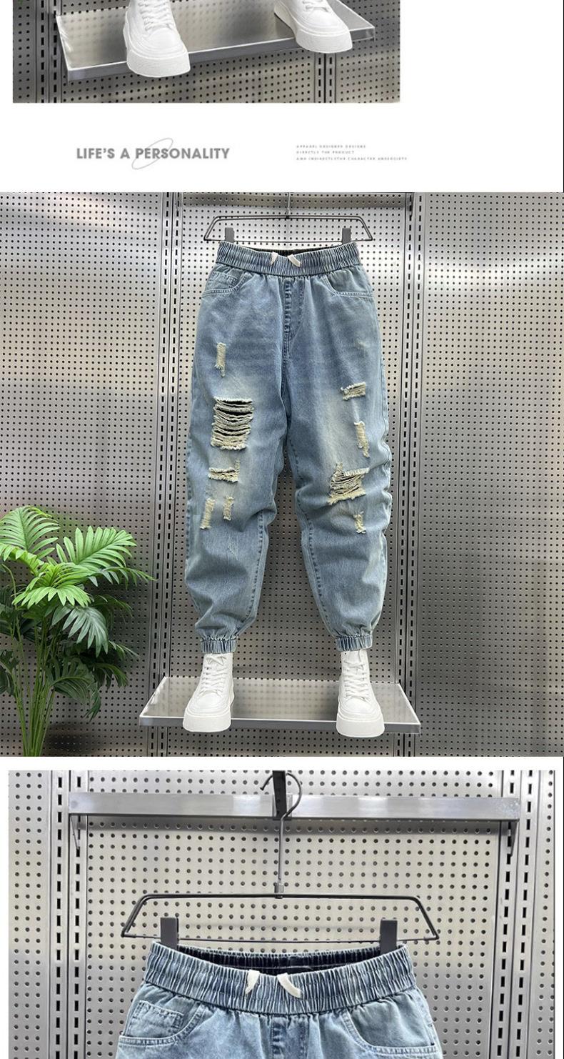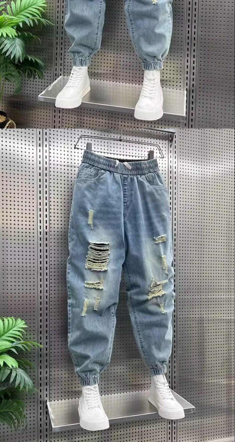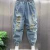 Pantalones Harem Jogger Rotos de Calle Alta Jeans Casuales de Moda para Hombre Americano Lavado Holgado Versátil Pantalones Recortados de Color Claro
