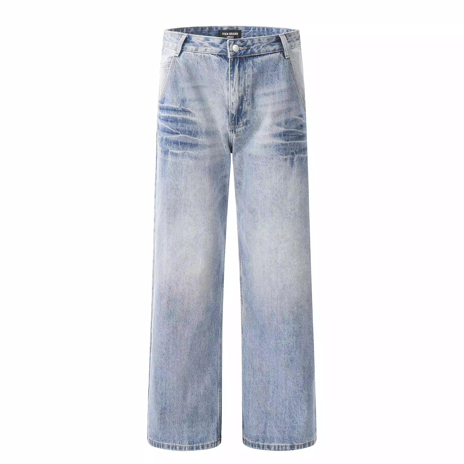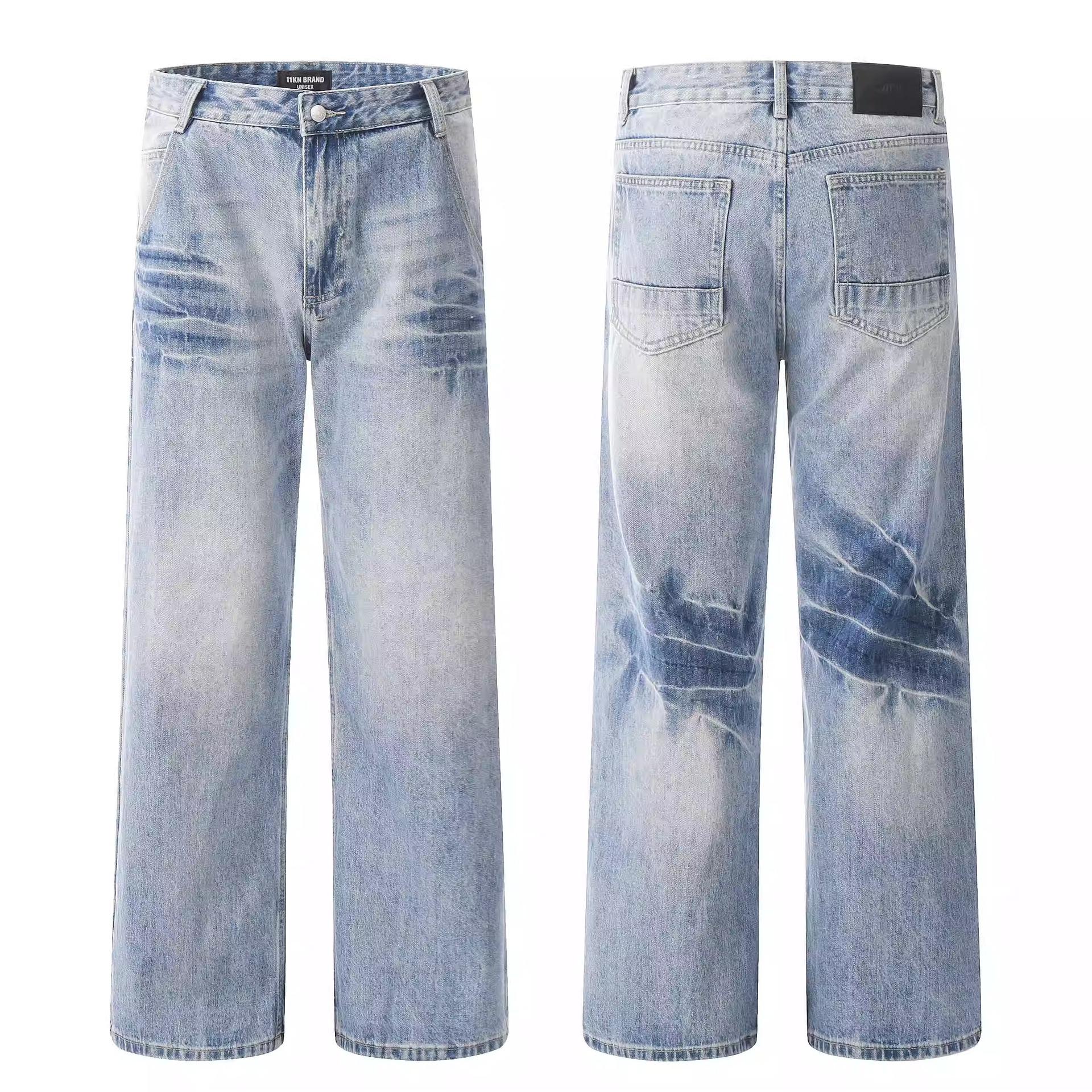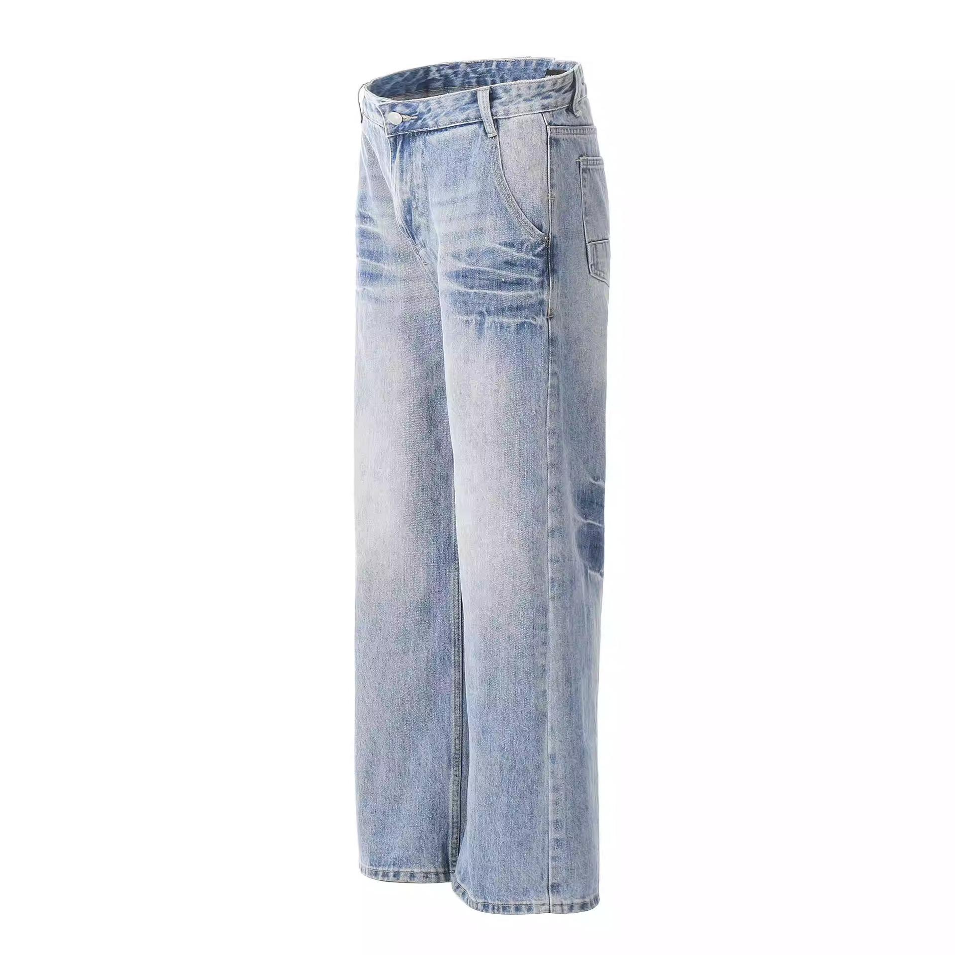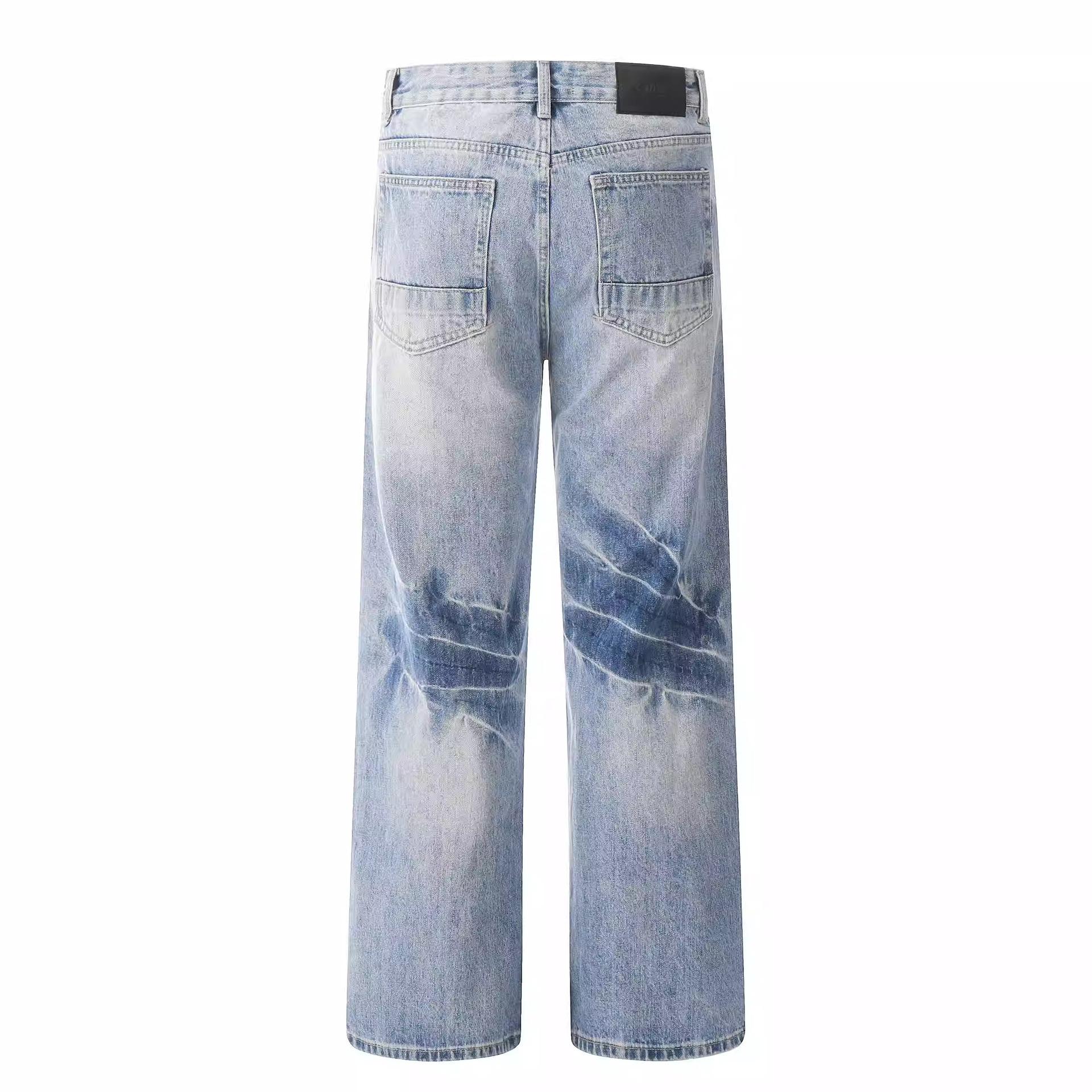 Compra Pantalones vaqueros estilo americano retro lavados con estampado de bambú y relámpagos blancos para hombre, estilo nuevo, rectos, para primavera y otoño. al por mayor en Joom.pro