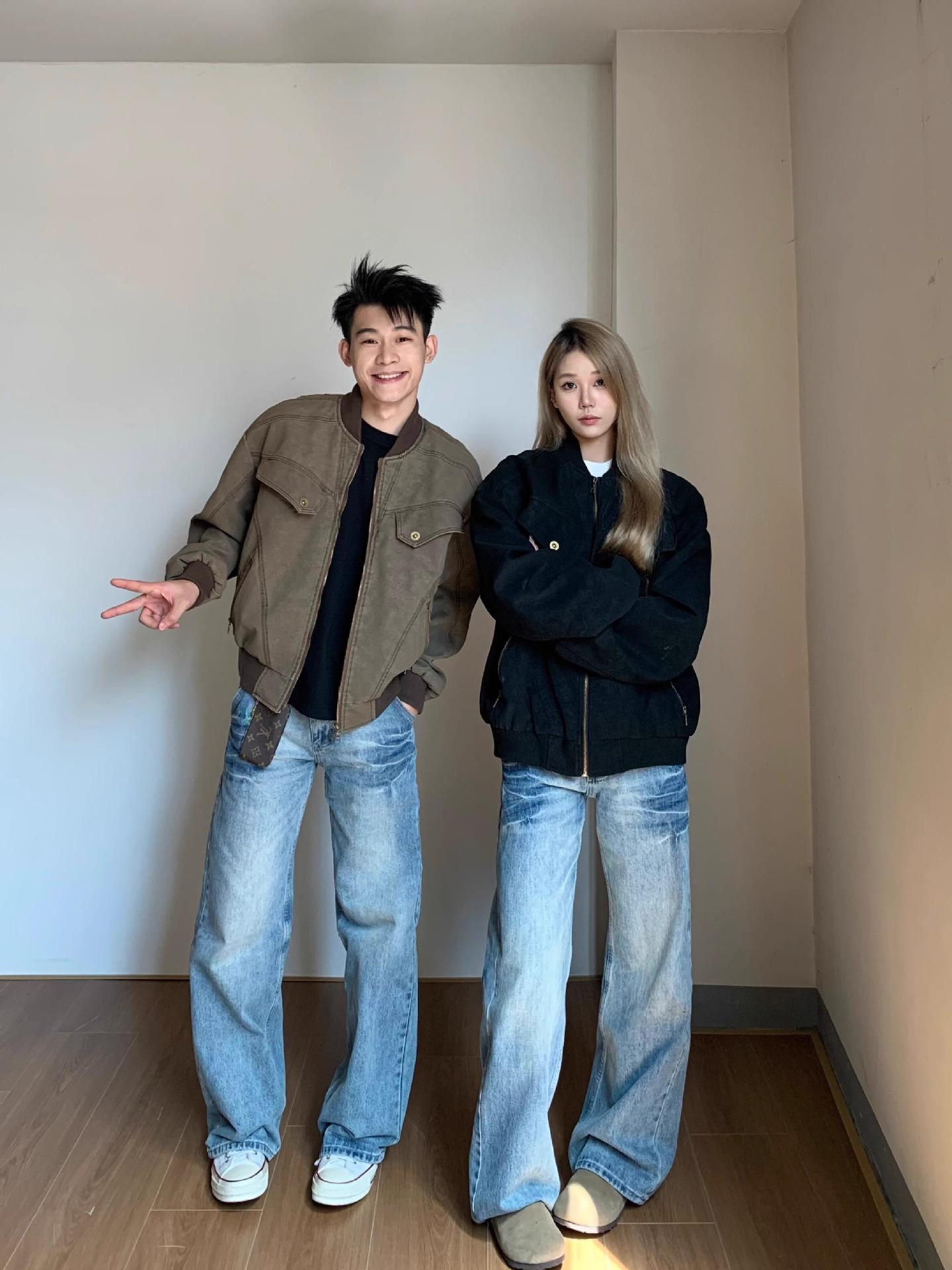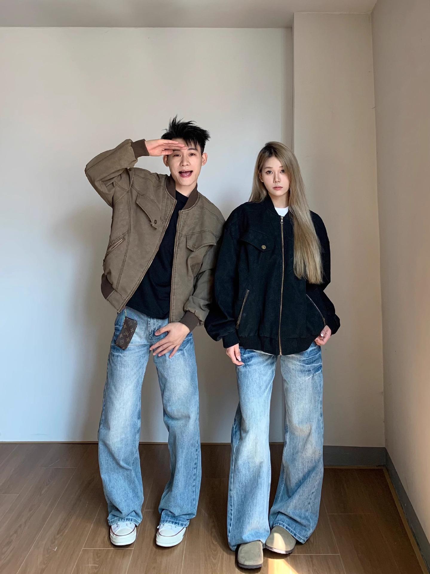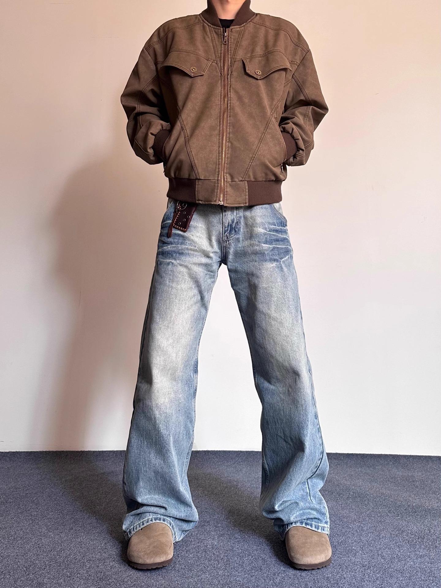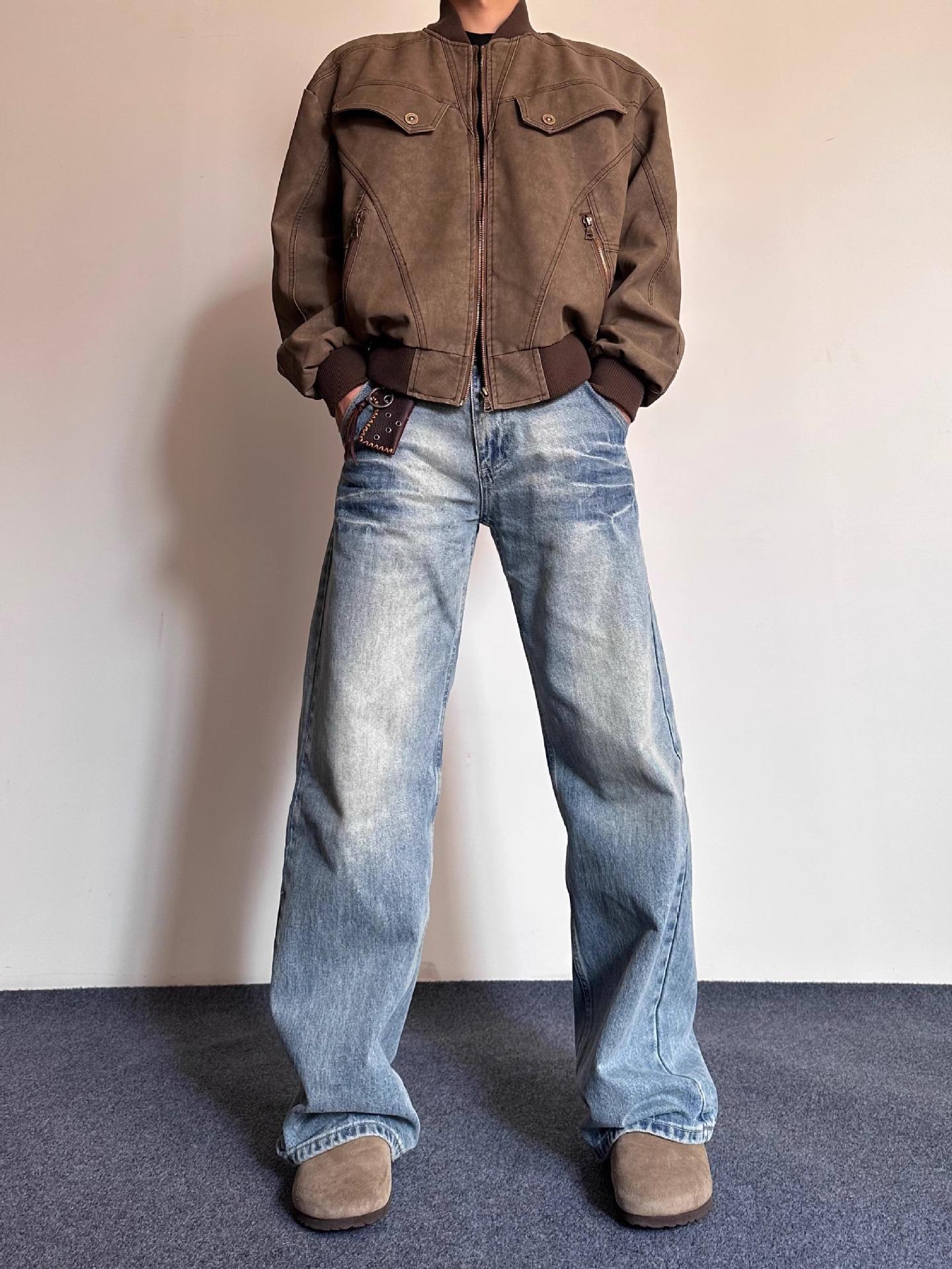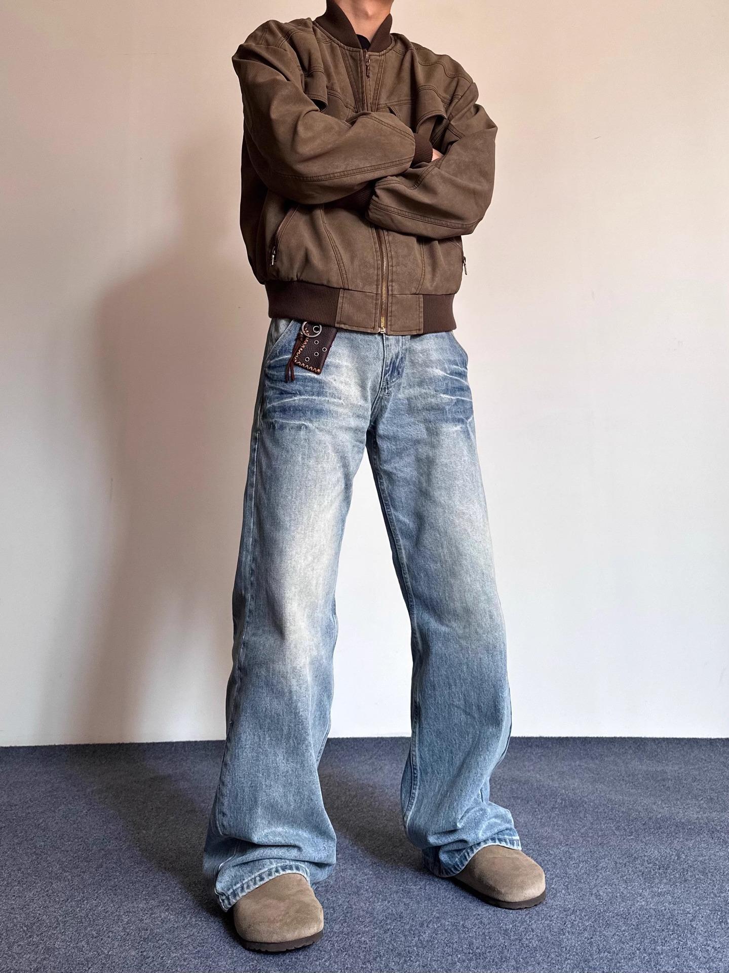 Compra Pantalones vaqueros estilo americano retro lavados con estampado de bambú y relámpagos blancos para hombre, estilo nuevo, rectos, para primavera y otoño. al por mayor en Joom.pro