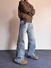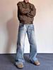 Pantalones vaqueros estilo americano retro lavados con estampado de bambú y relámpagos blancos para hombre, estilo nuevo, rectos, para primavera y otoño.