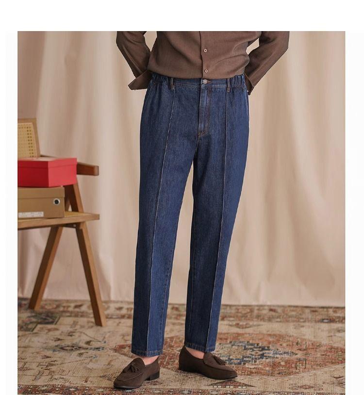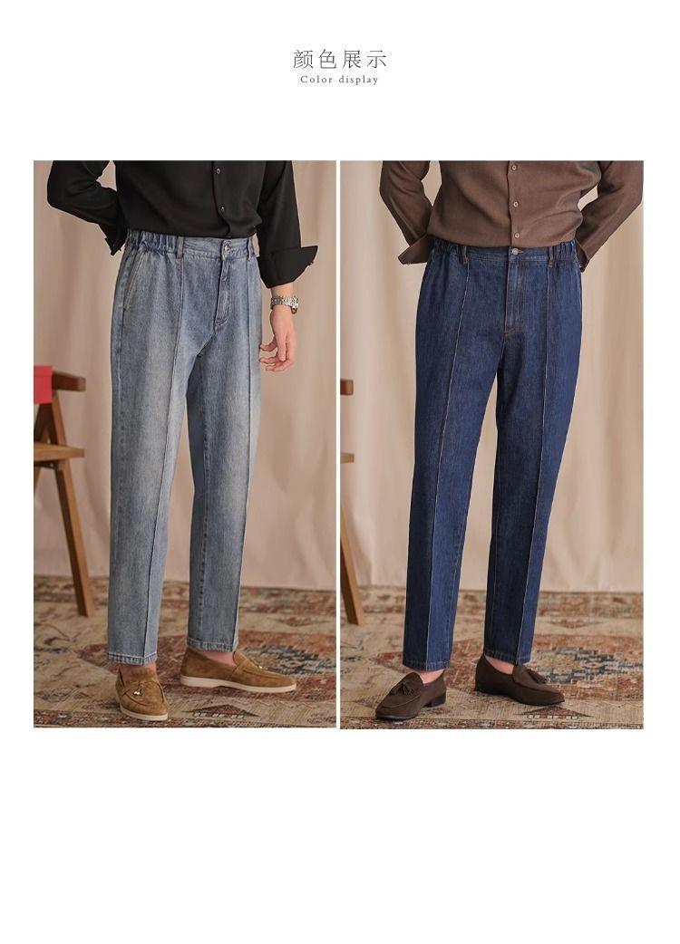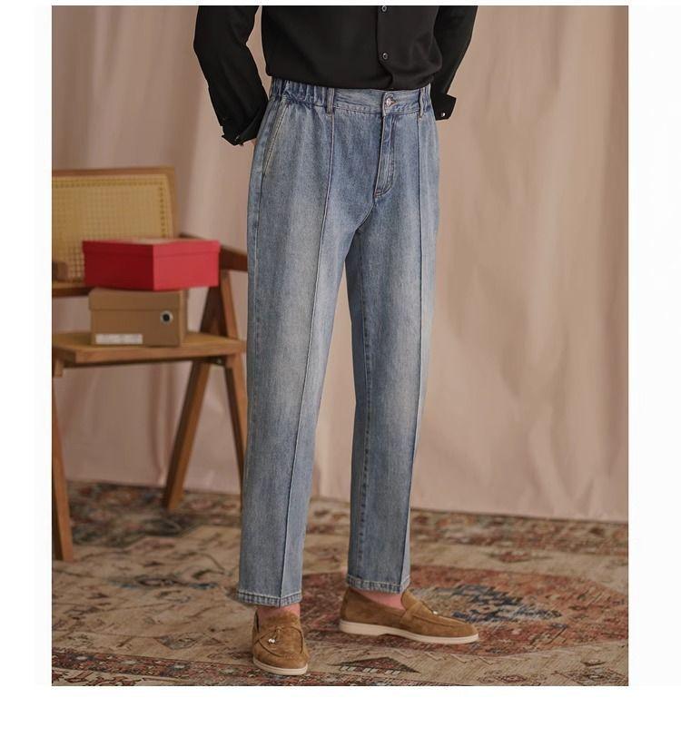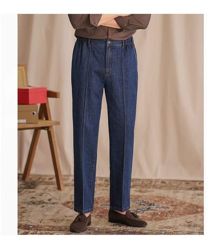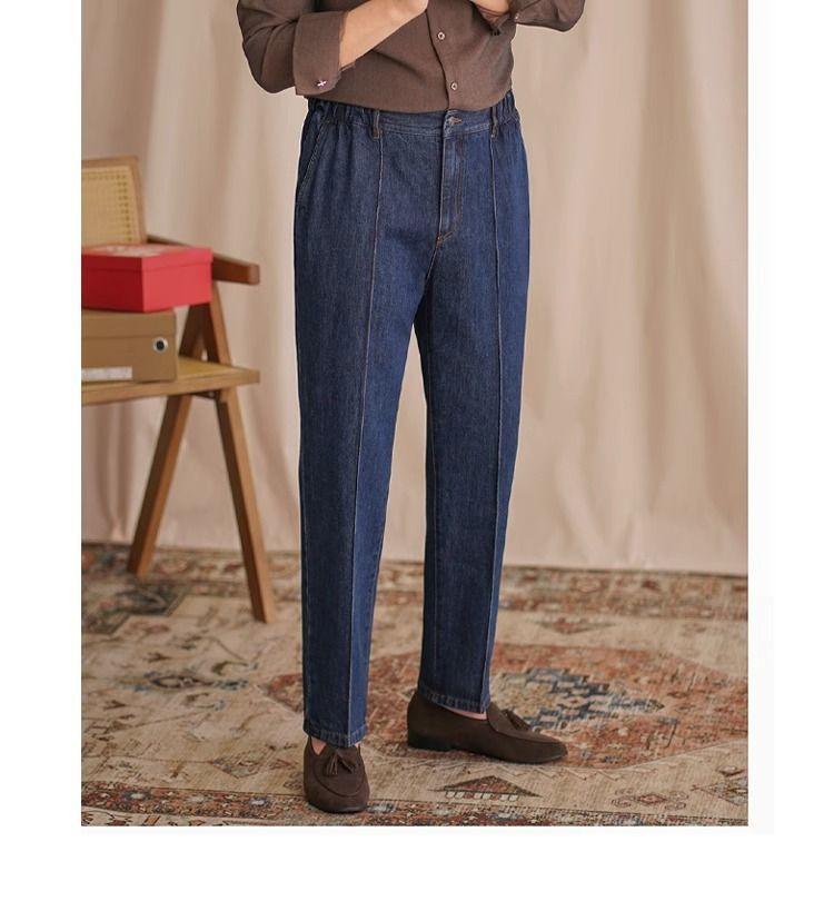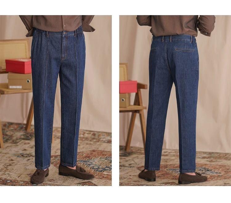 Jeans retro de algodón puro para hombre, moda, rectos, versátiles, de calidad, pantalones casuales, británicos, de negocios, con cintura elástica, modernos