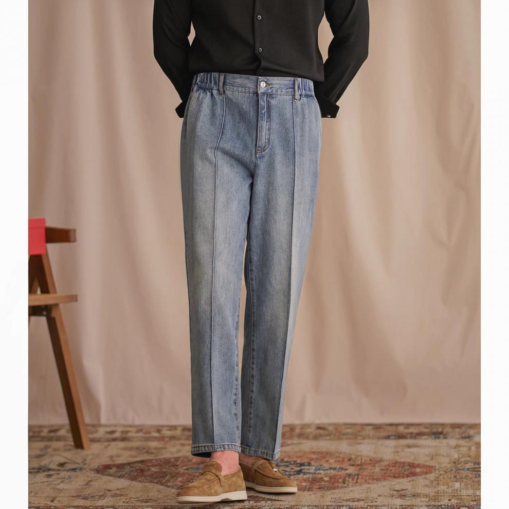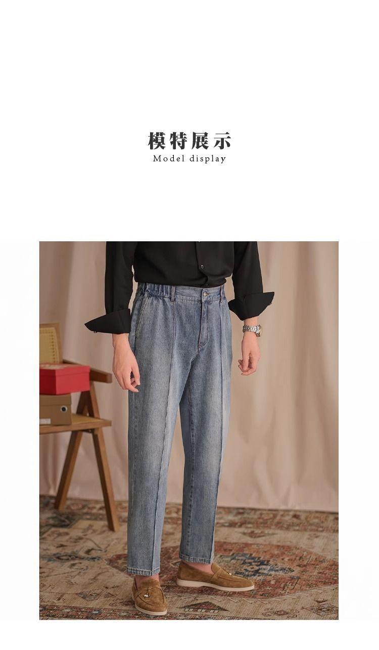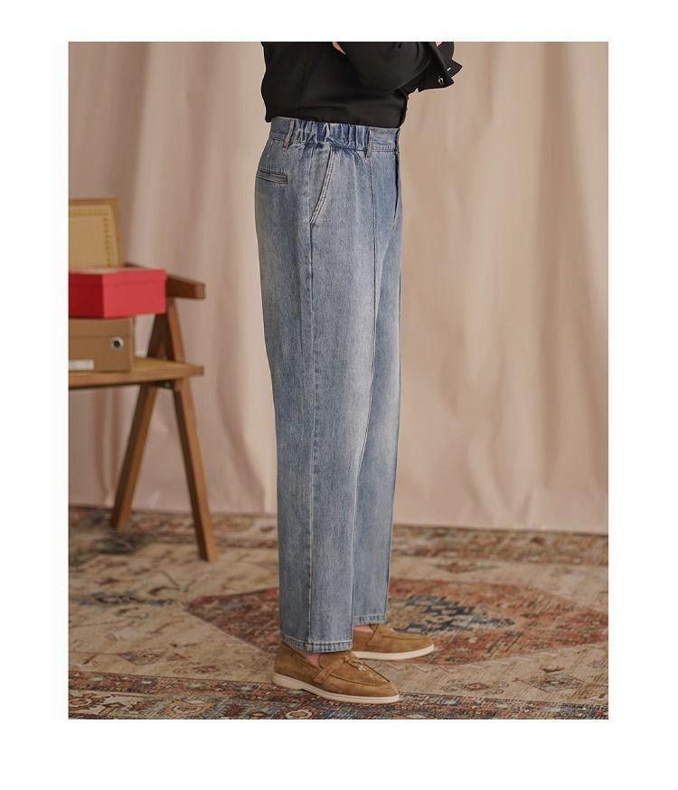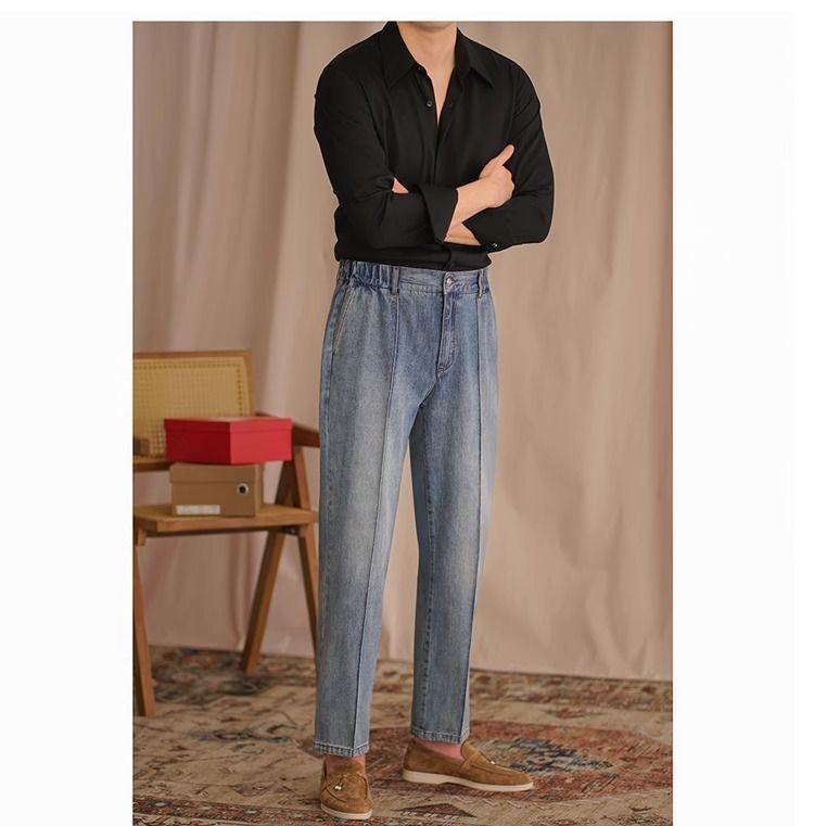 Jeans retro de algodón puro para hombre, moda, rectos, versátiles, de calidad, pantalones casuales, británicos, de negocios, con cintura elástica, modernos