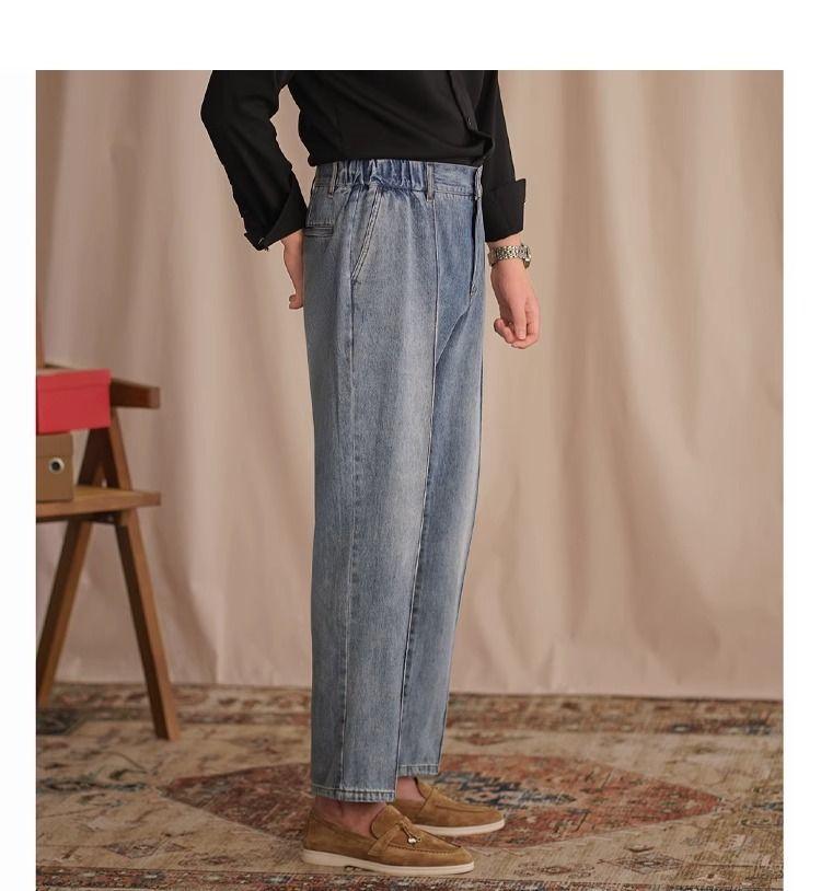 Jeans Retro de Algodón Moda Hombre Rectos Versátiles Calidad Pantalones Casuales Británicos Negocios Pantalones Cintura Elástica