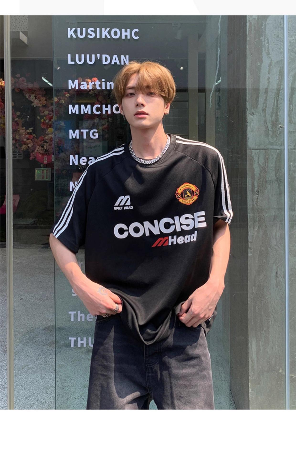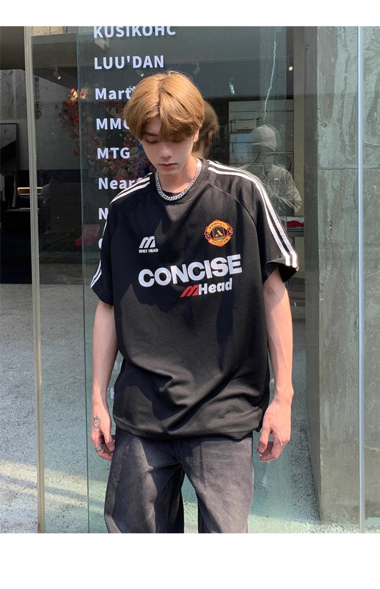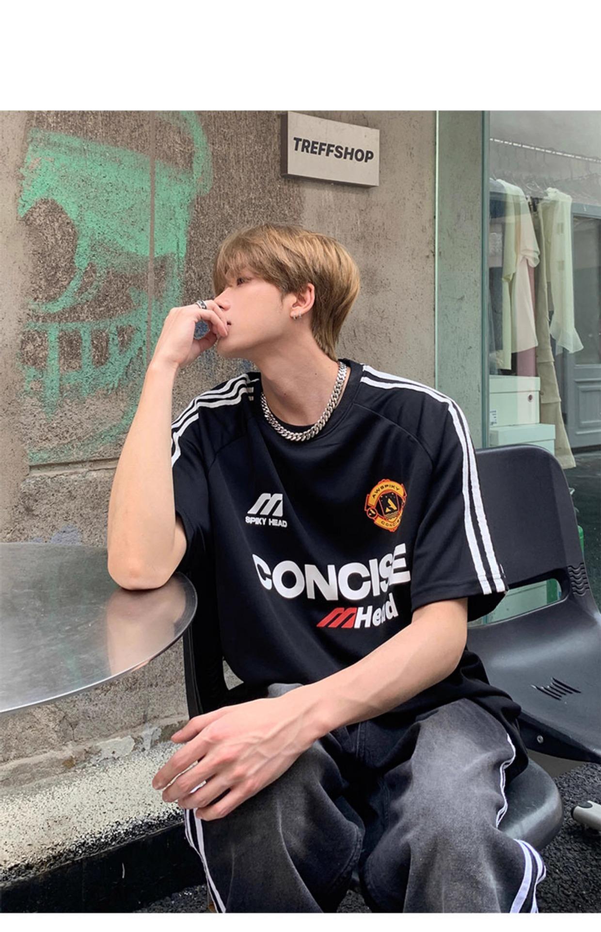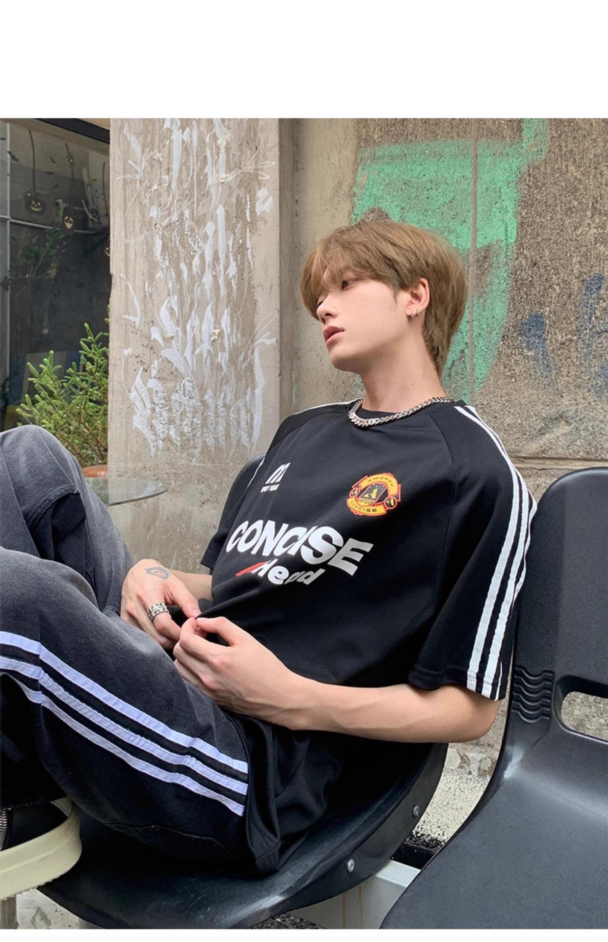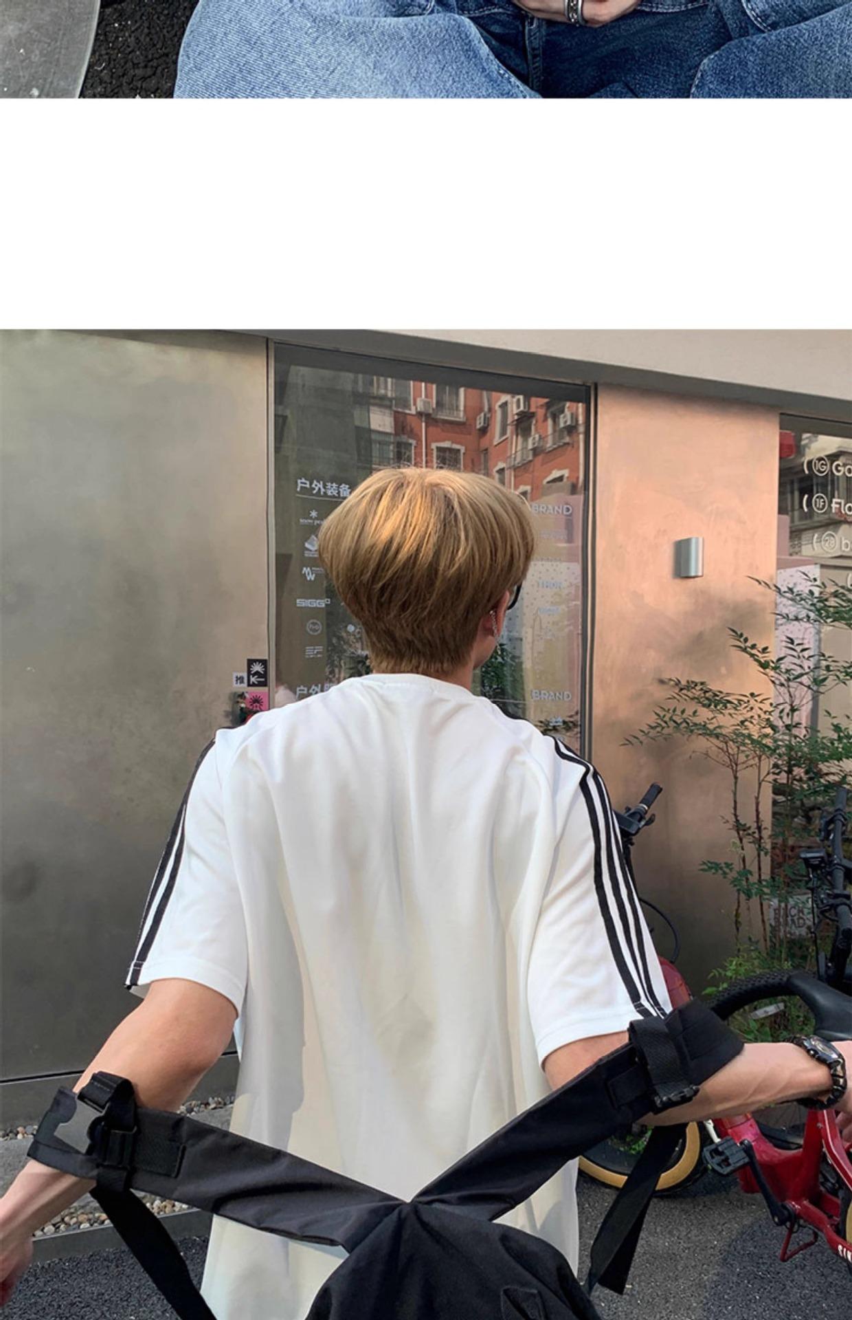 Camiseta deportiva de manga corta con rayas retro estilo americano para hombre, estilo motociclista, informal, holgada y moderna, de verano