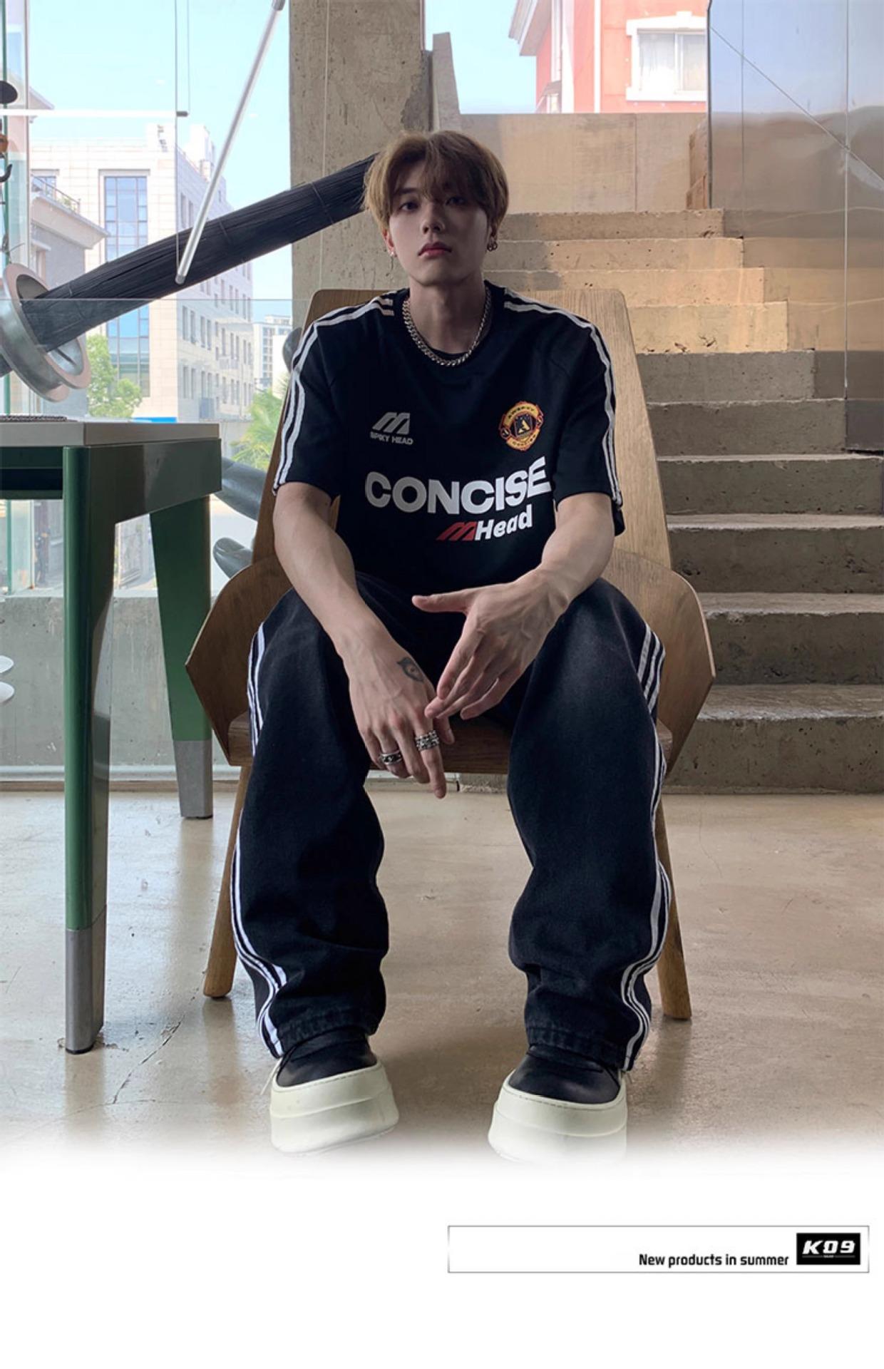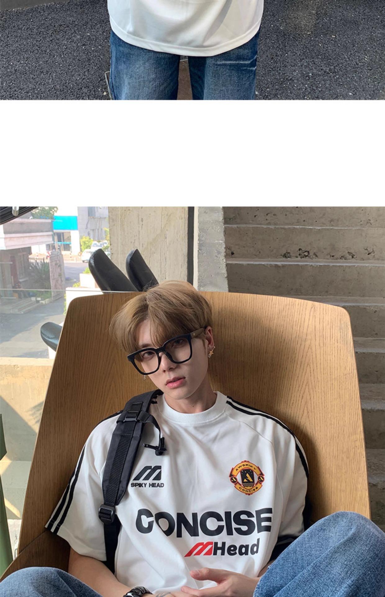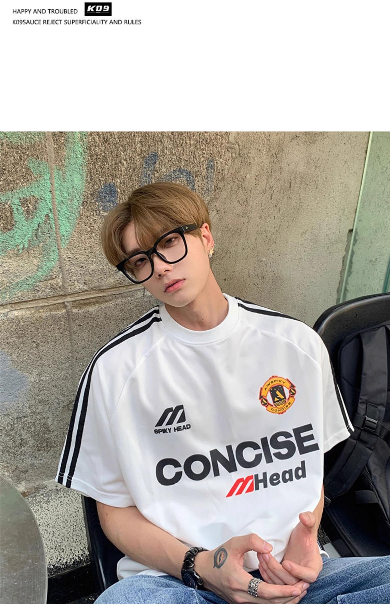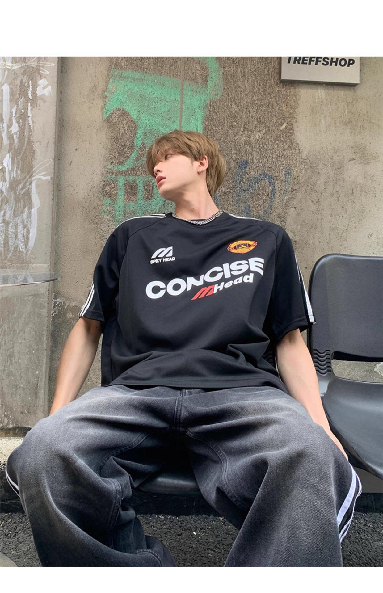 Camiseta deportiva de manga corta con rayas retro estilo americano para hombre, estilo motociclista, informal, holgada y moderna, de verano