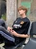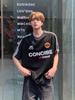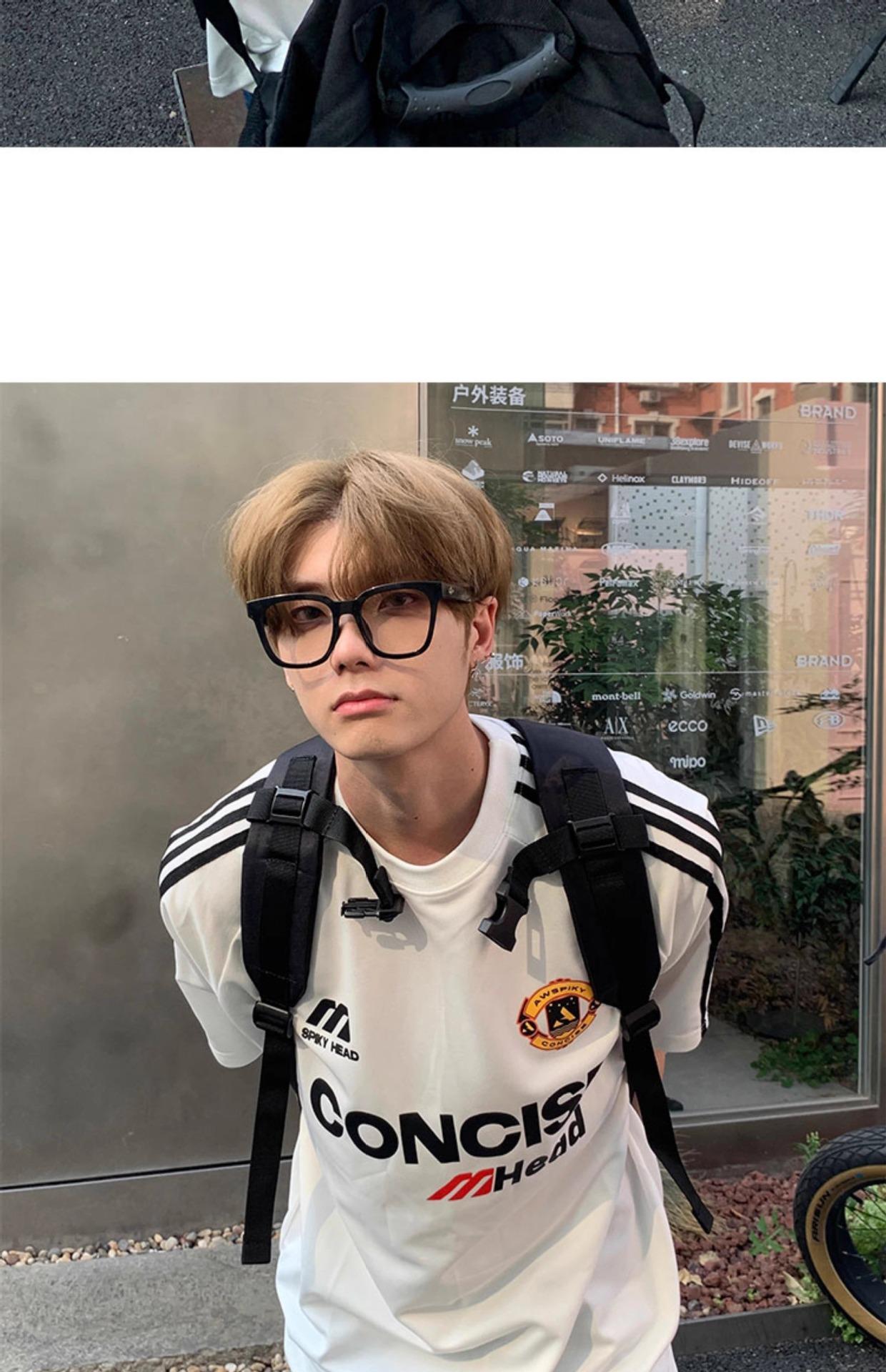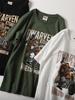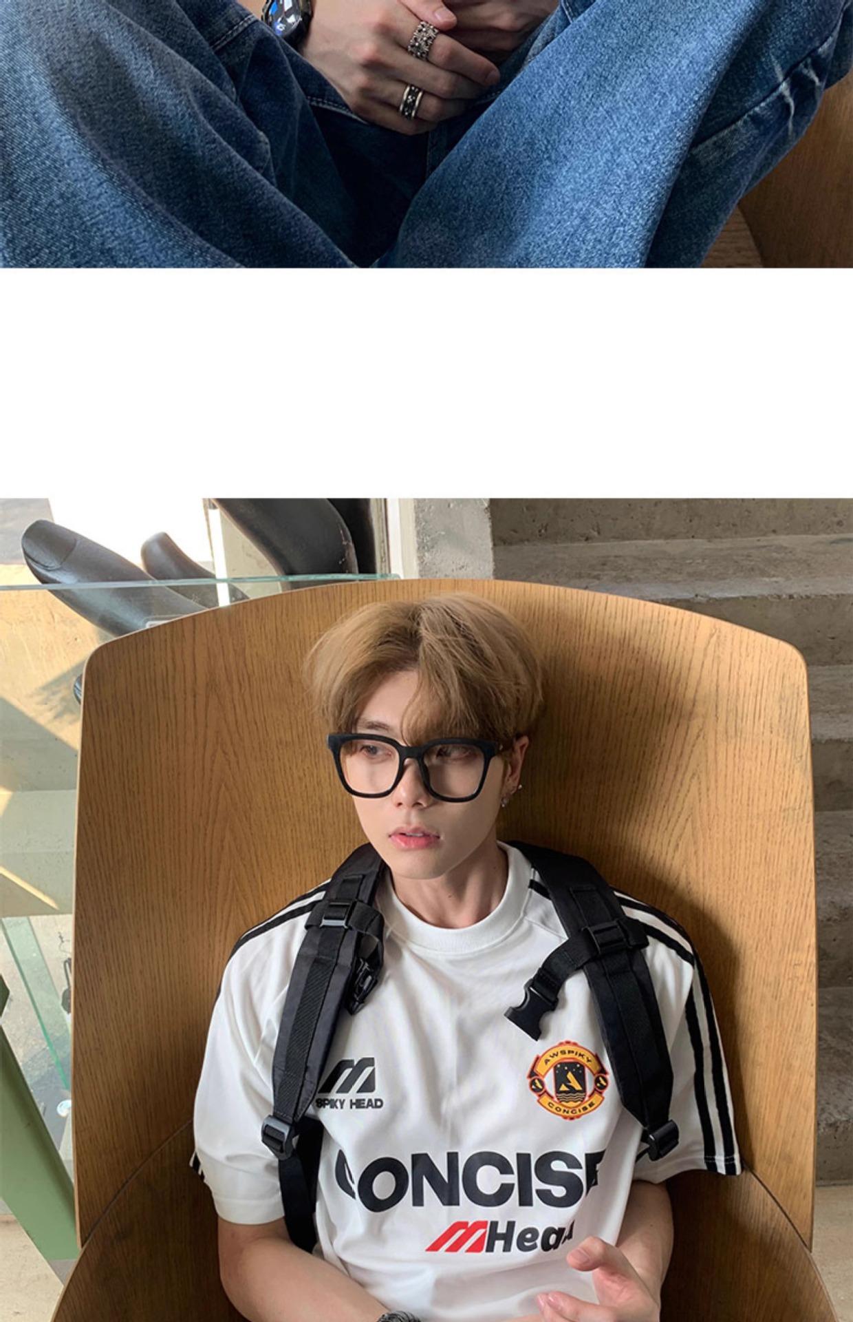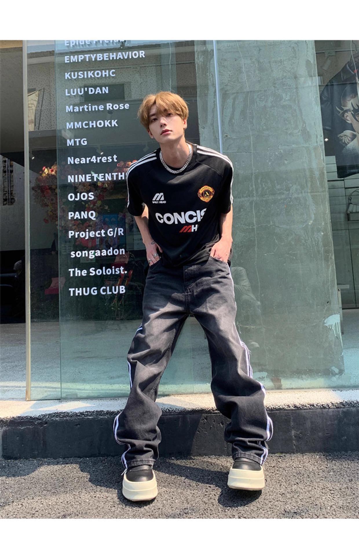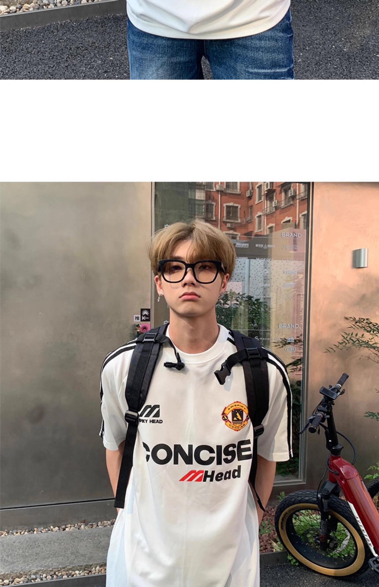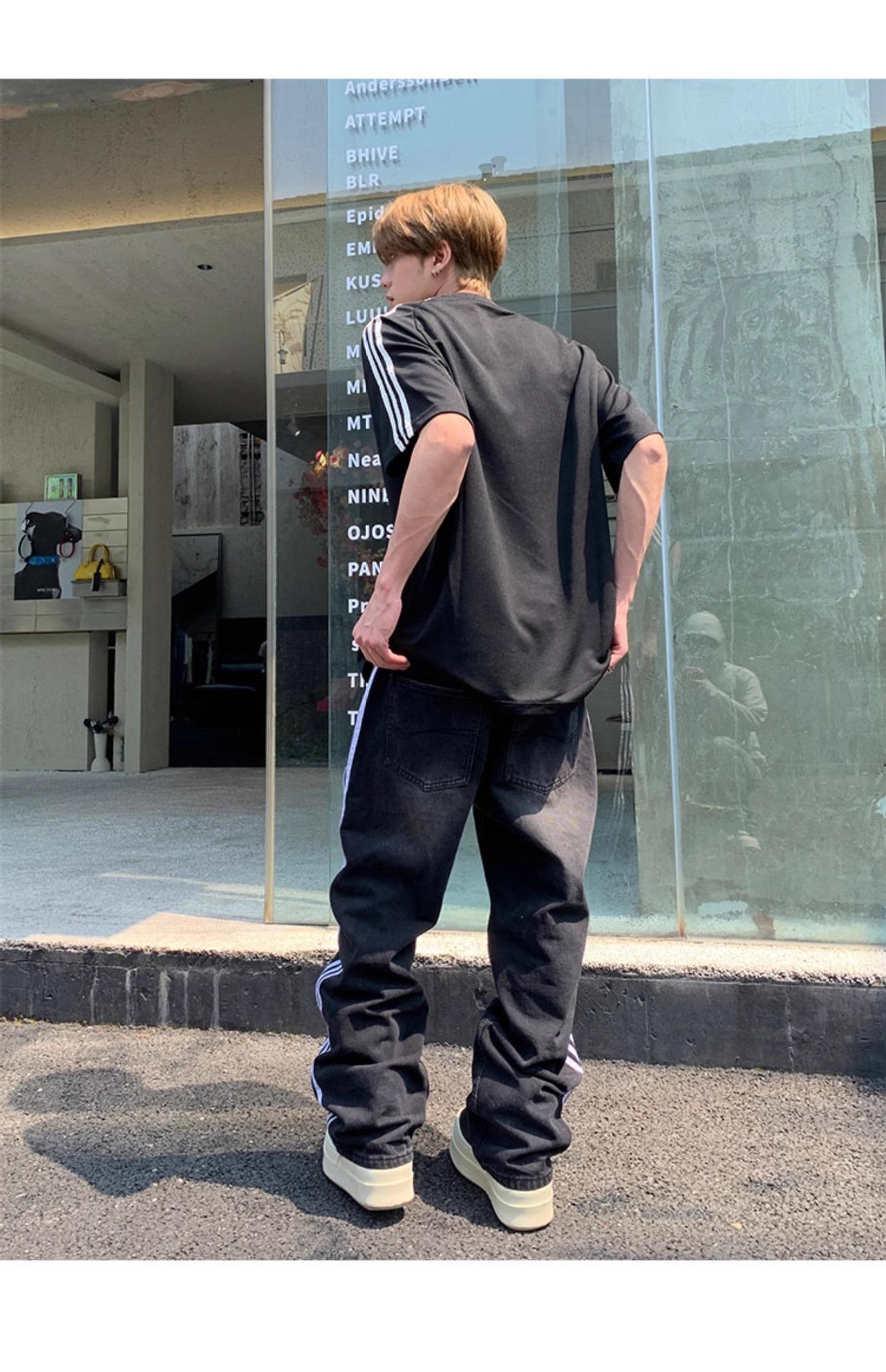 Camiseta deportiva de manga corta con rayas retro estilo americano para hombre, estilo motociclista, informal, holgada y moderna, de verano