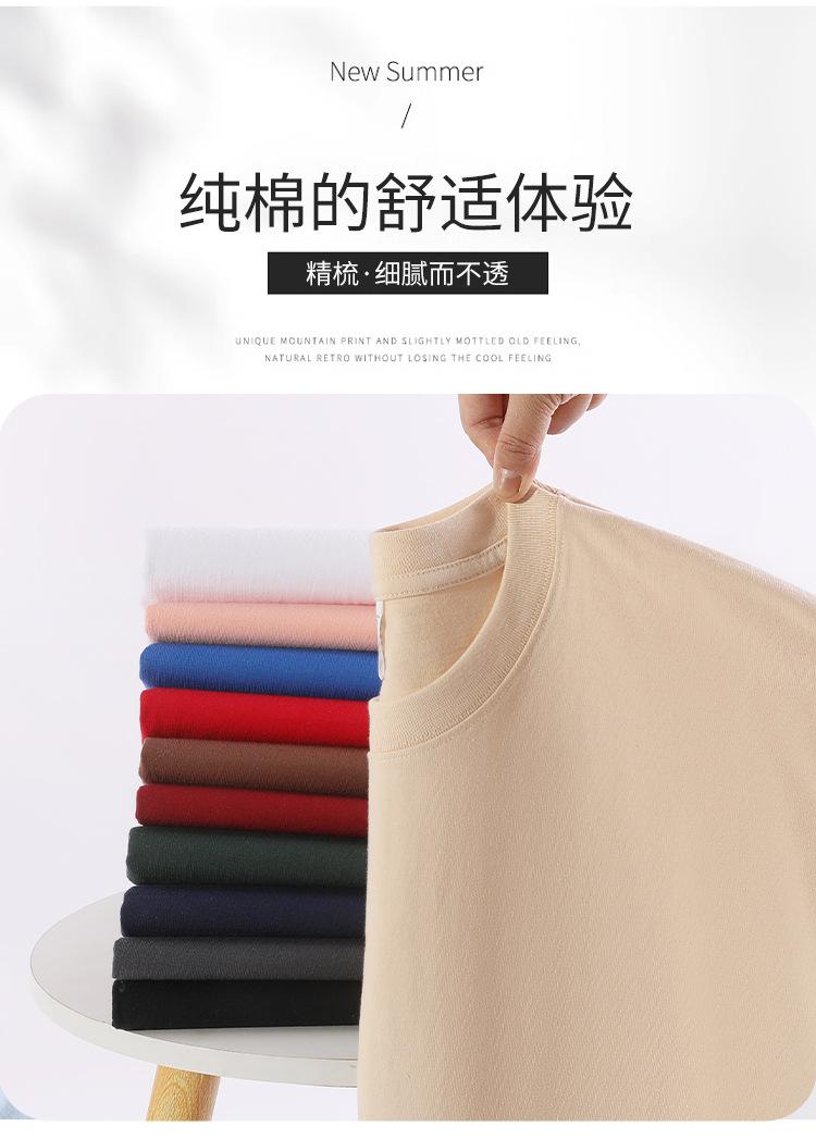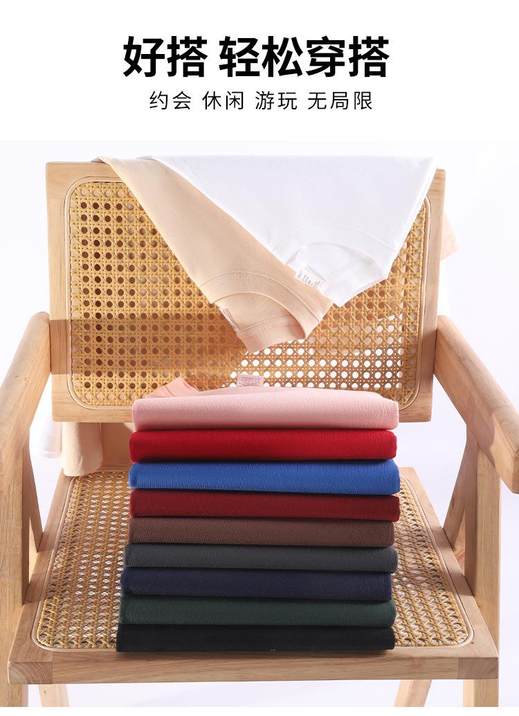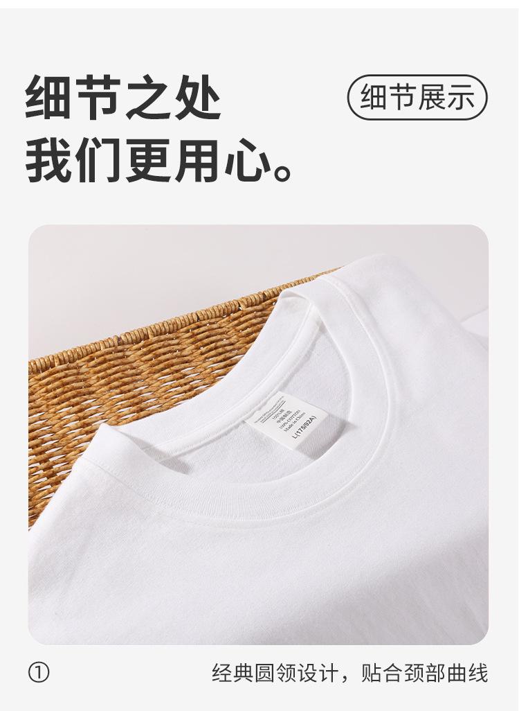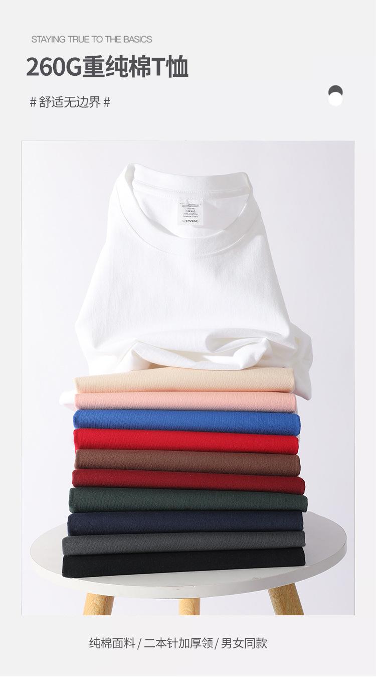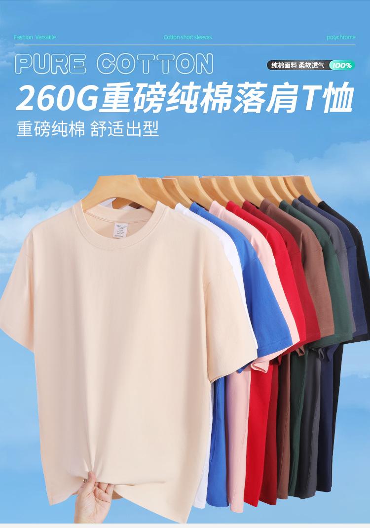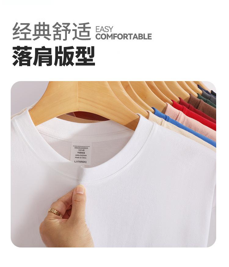 Playera pesada de algodón peinado de doble hilo de 260 g, cuello redondo de hielo, logotipo estampado personalizado, ropa de grupo, playera con palabra bordada