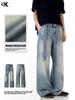 Jeans 11Kn estilo americano lavado azul claro de pierna recta para hombre y mujer con un moderno diseño tridimensional adelgazante holgado casual de pierna ancha