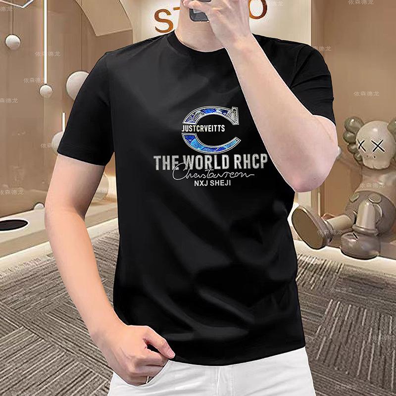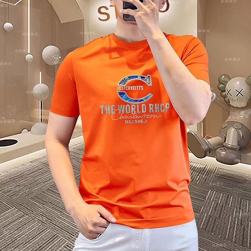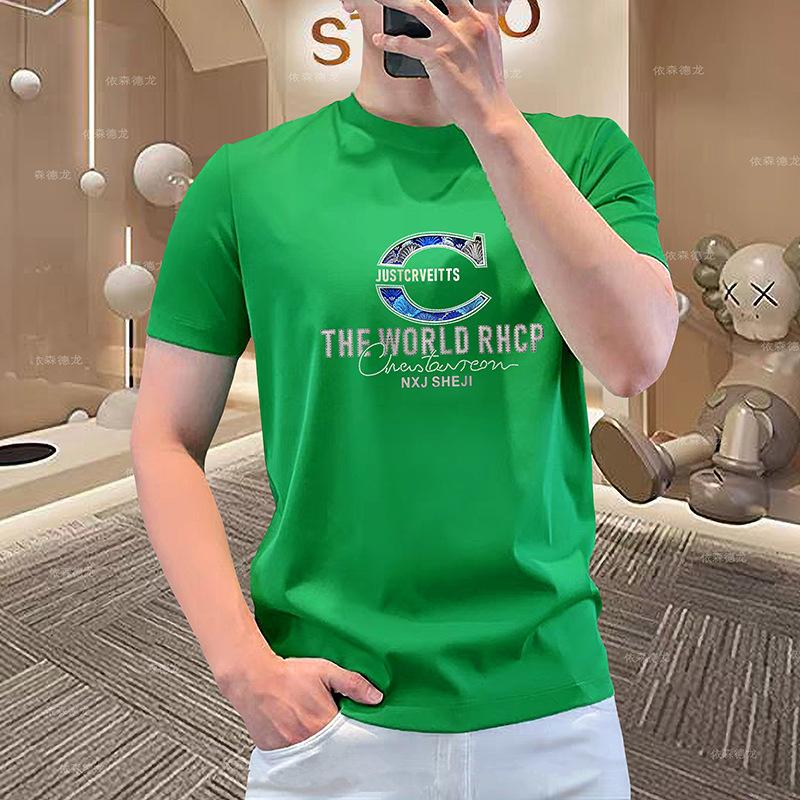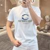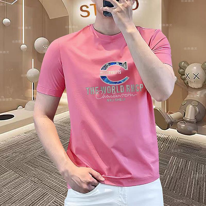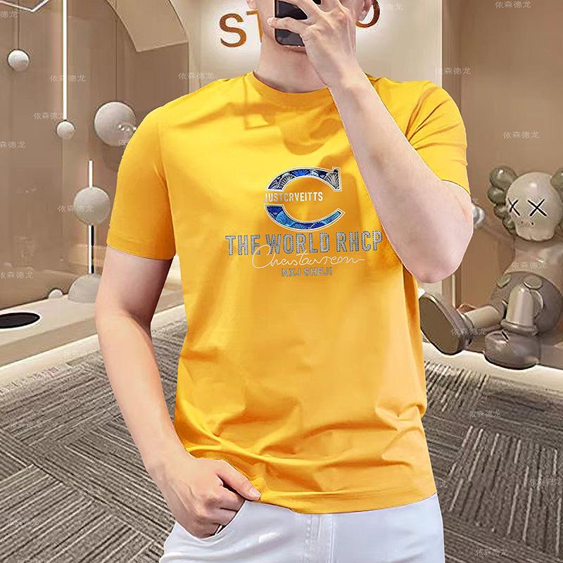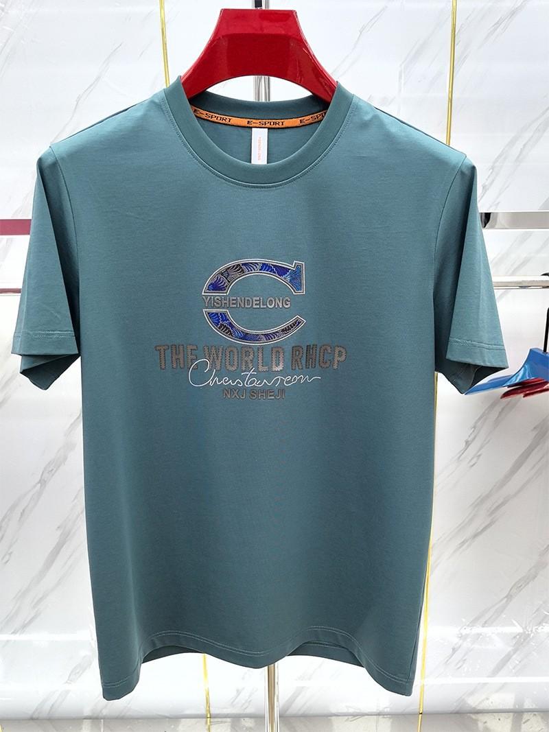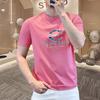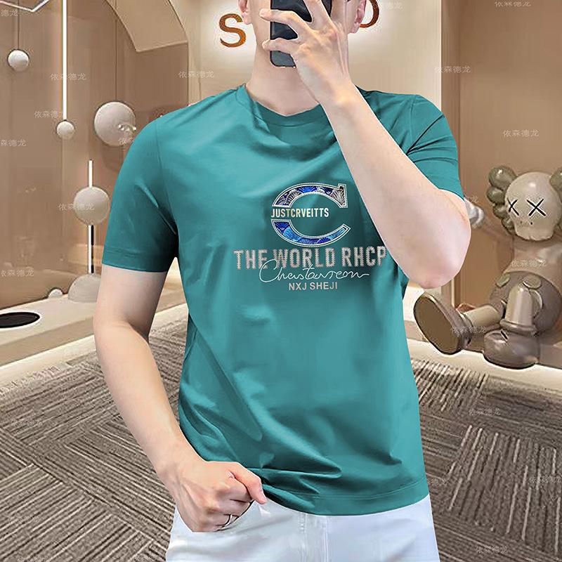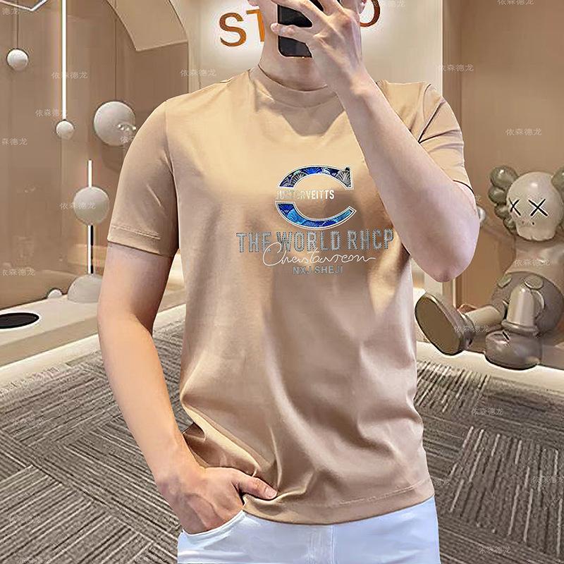 Hermosa camiseta de algodón mercerizado para hombre, de corte entallado, de verano, con cuello redondo, ligera, de lujo, de manga corta, nueva moda 2025, con letras de tendencia
