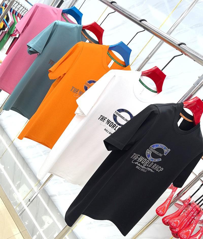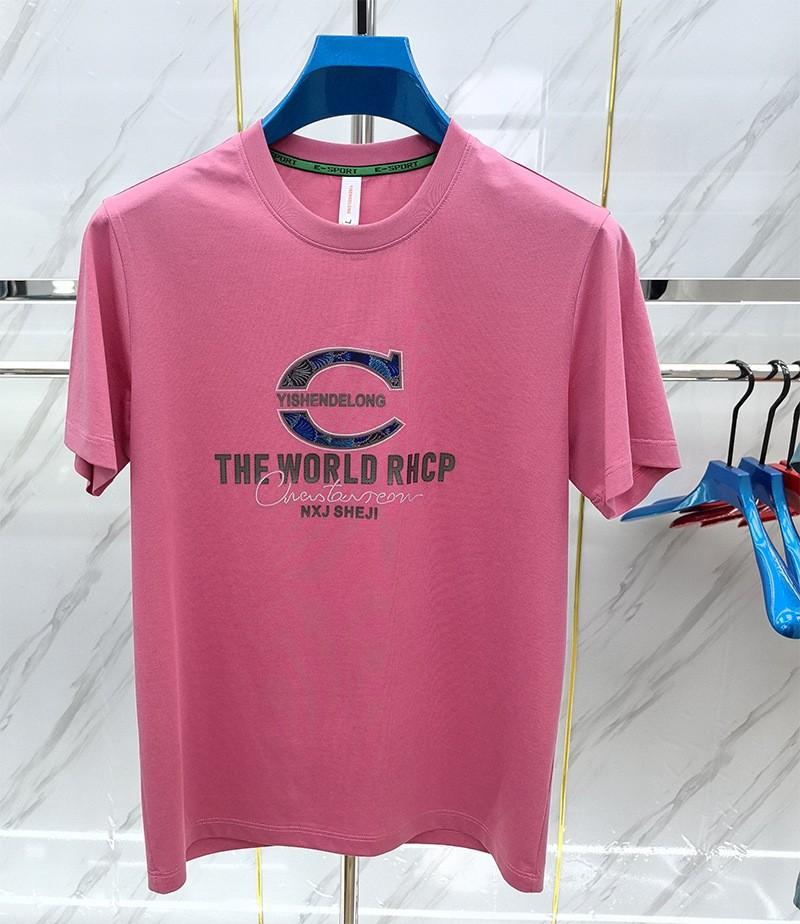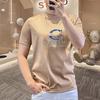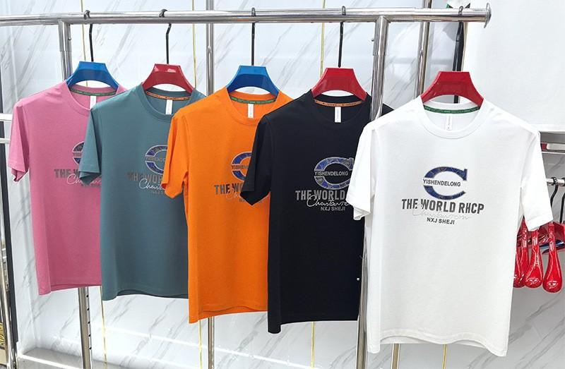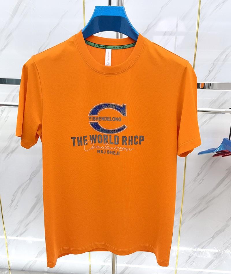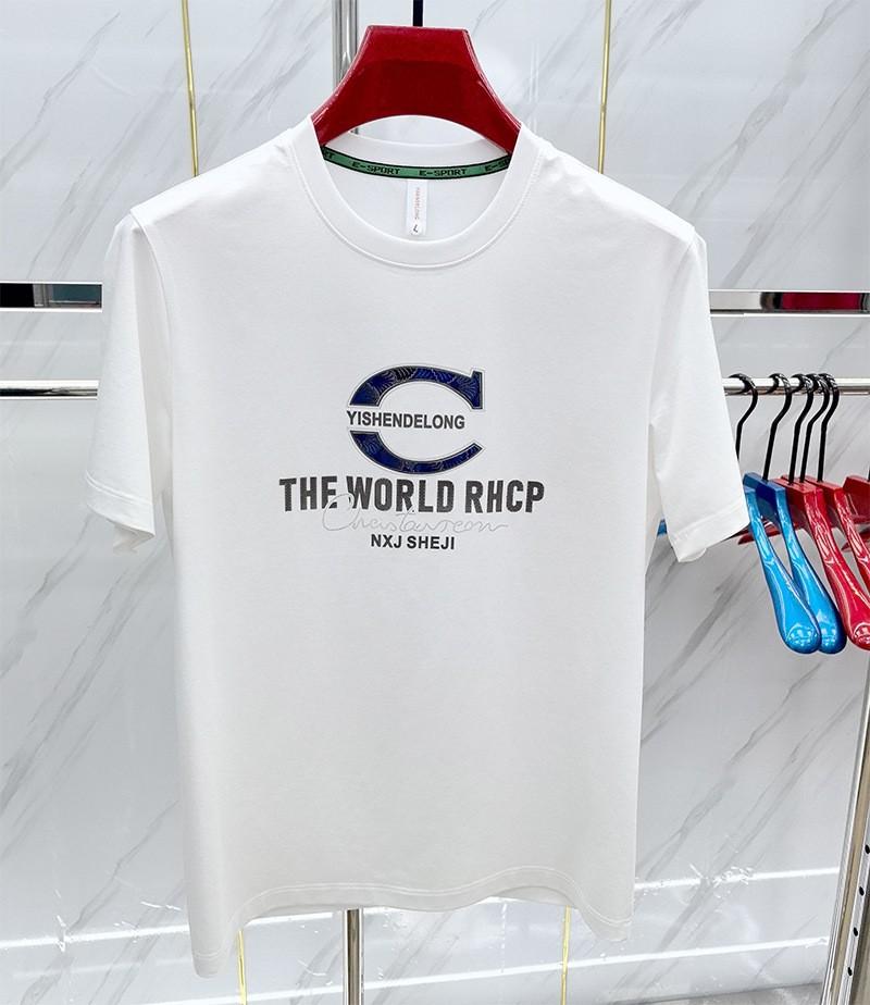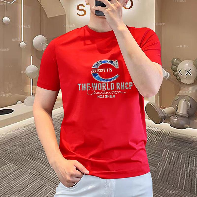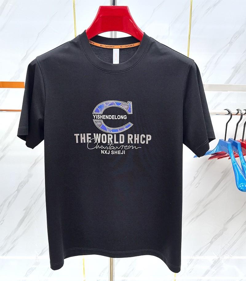Hermosa camiseta de algodón mercerizado para hombre, de corte entallado, de verano, con cuello redondo, ligera, de lujo, de manga corta, nueva moda 2025, con letras de tendencia