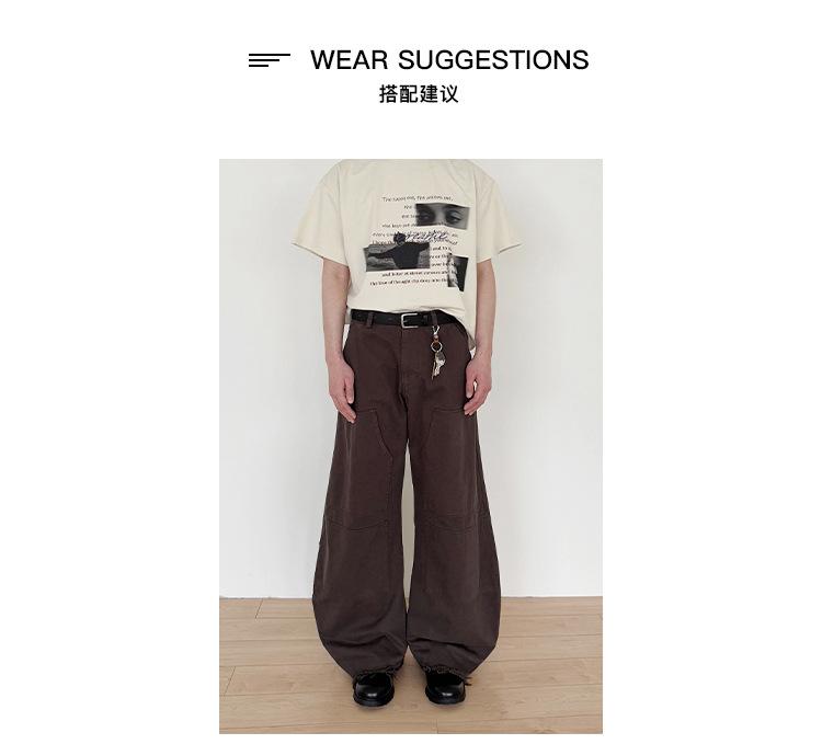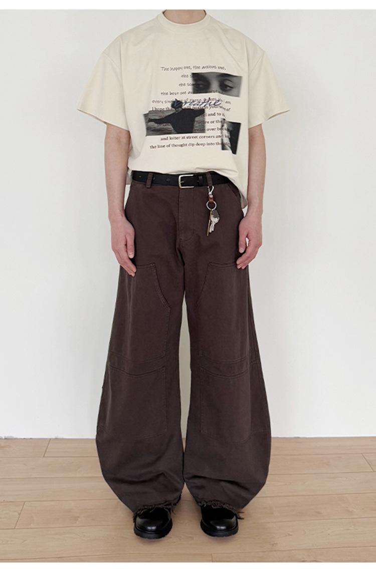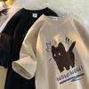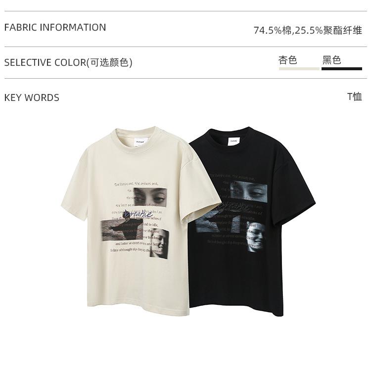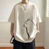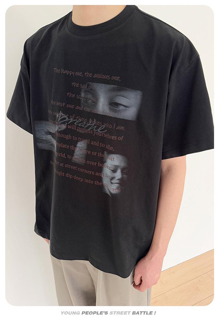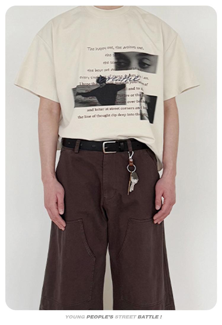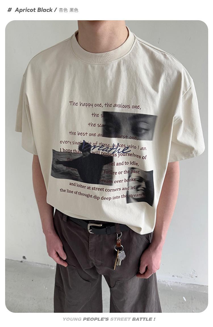 CATTEE Verano Diseño Nicho Sentido Estampado Manga Corta Algodón Casual Holgado Top Camiseta Trendy de Media Manga para Hombre