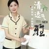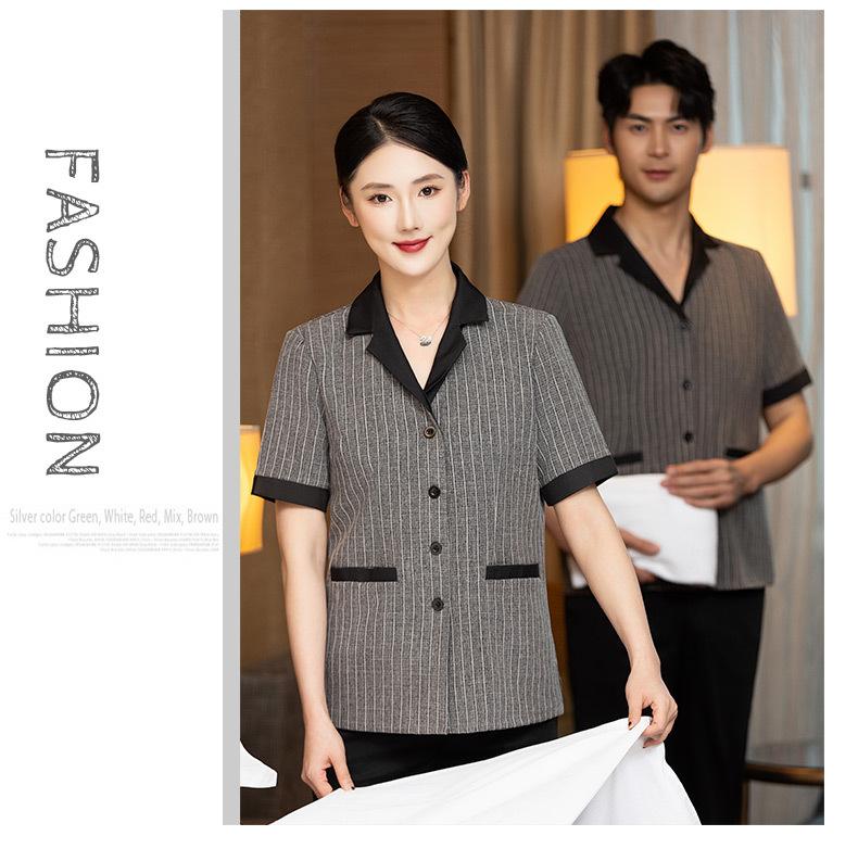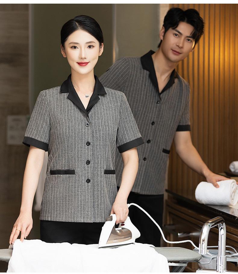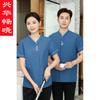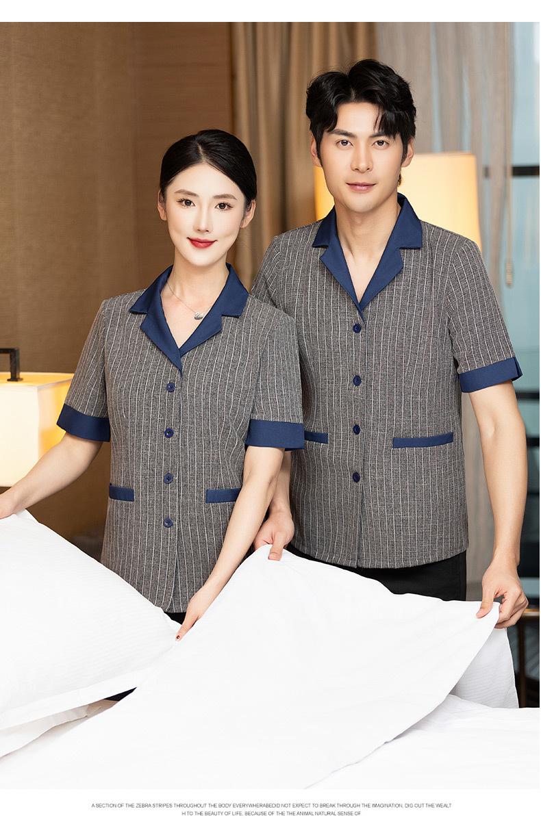 Cuello occidental lino hotel de estrellas ropa de trabajo de limpieza de habitación de huéspedes manga corta verano propiedad tía limpiadora escuela de economía doméstica doctor