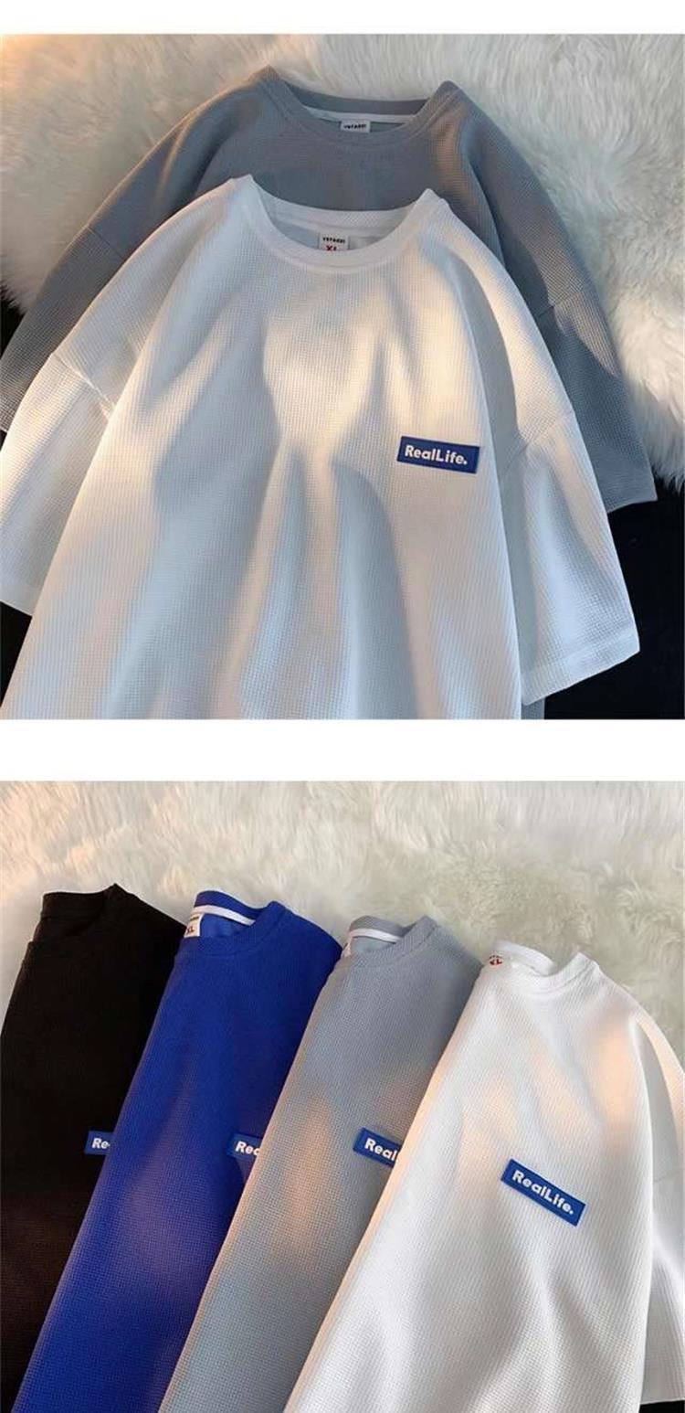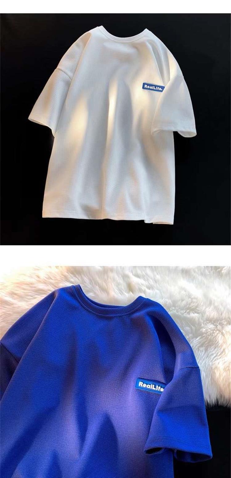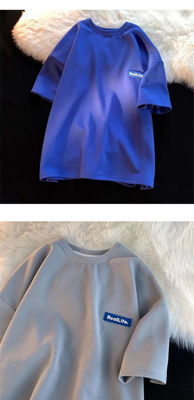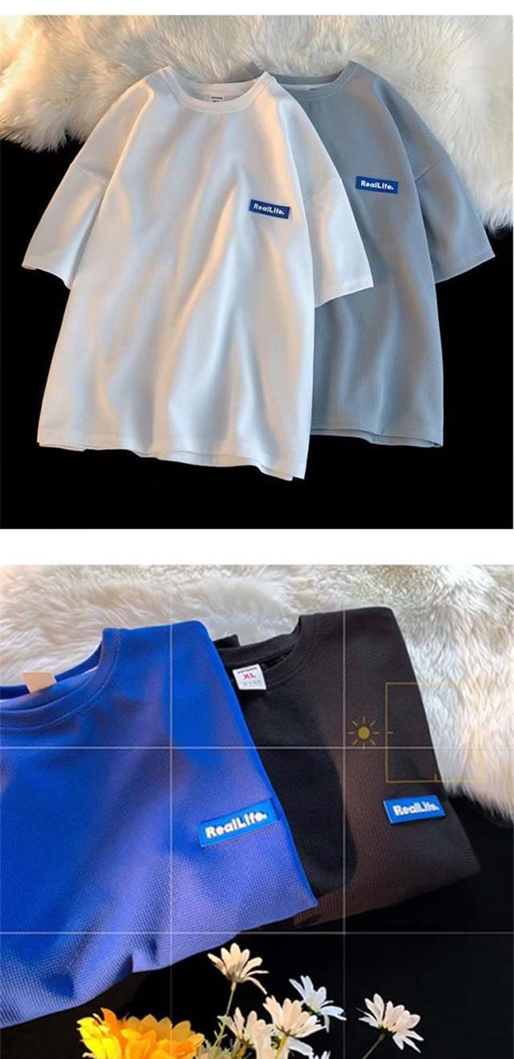 Fabricantes de fuentes, marca de moda, gofre, casual, Joker, camiseta de moda de manga corta, moda suelta, parejas, casual, manga corta