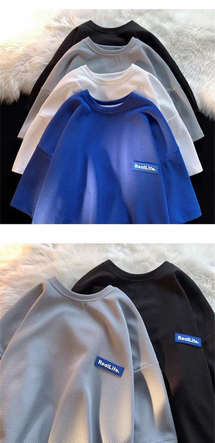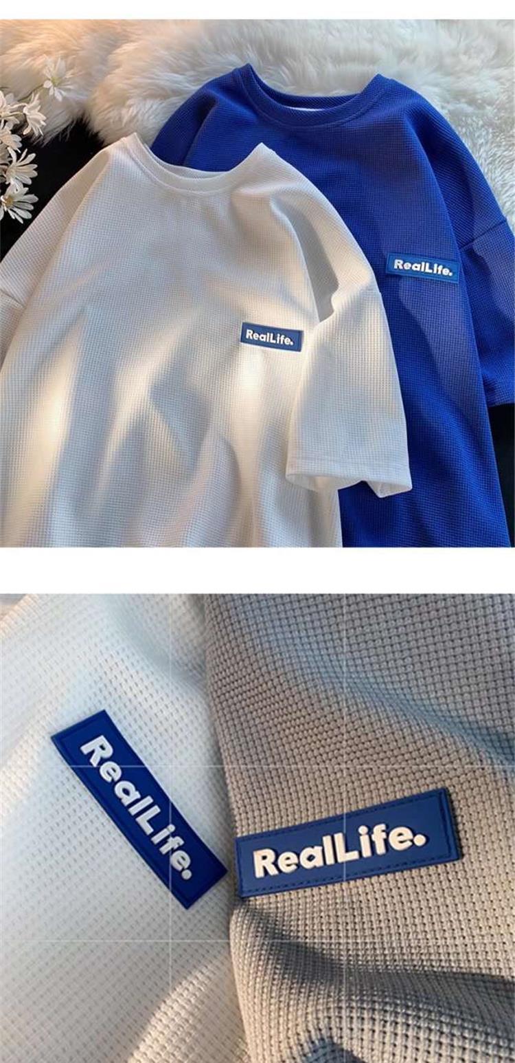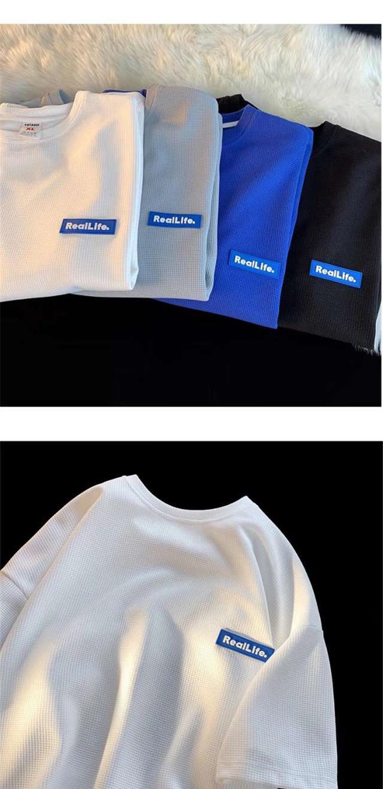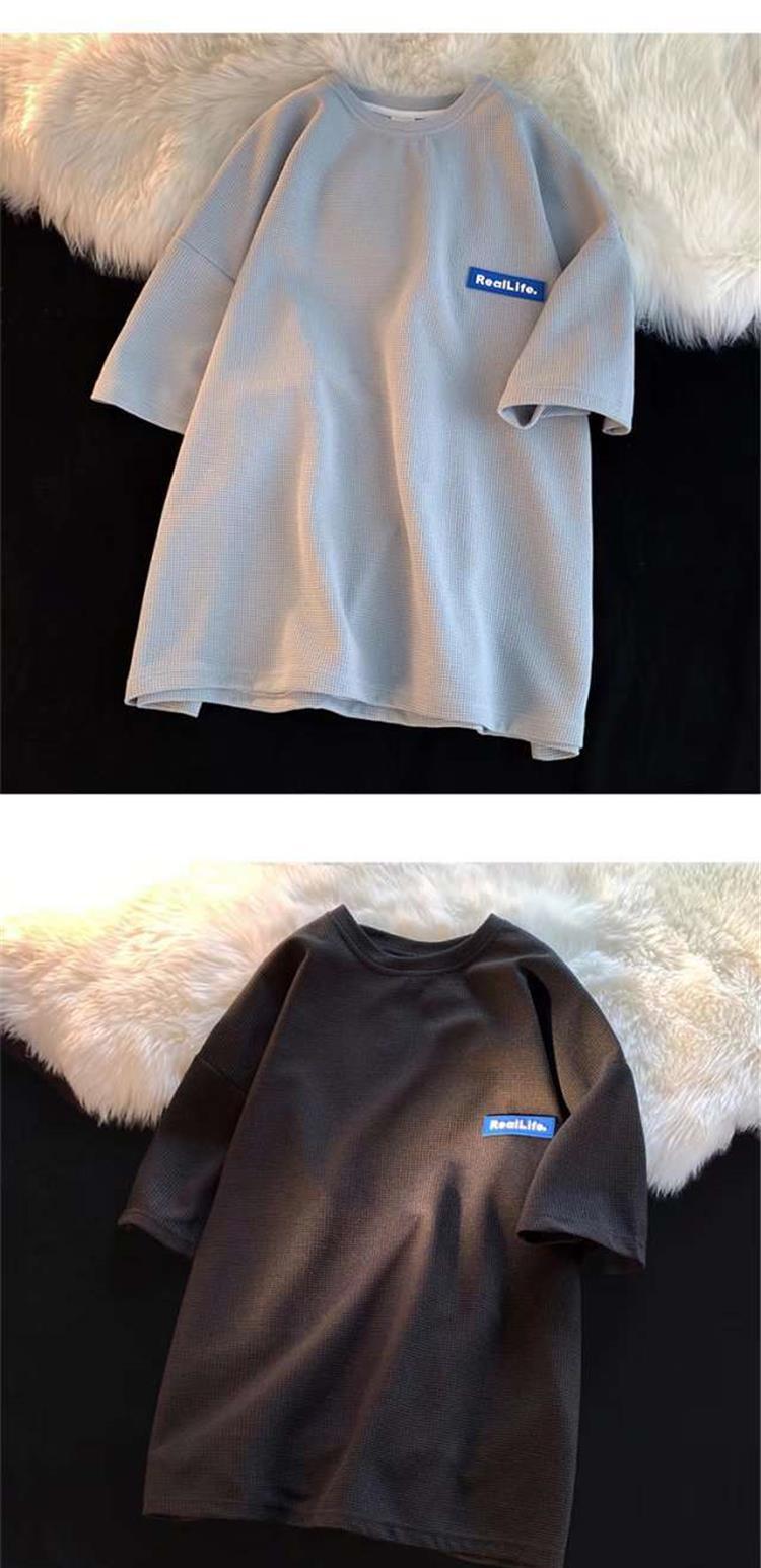 Fabricantes de fuentes, marca de moda, gofre, casual, Joker, camiseta de moda de manga corta, moda suelta, parejas, casual, manga corta