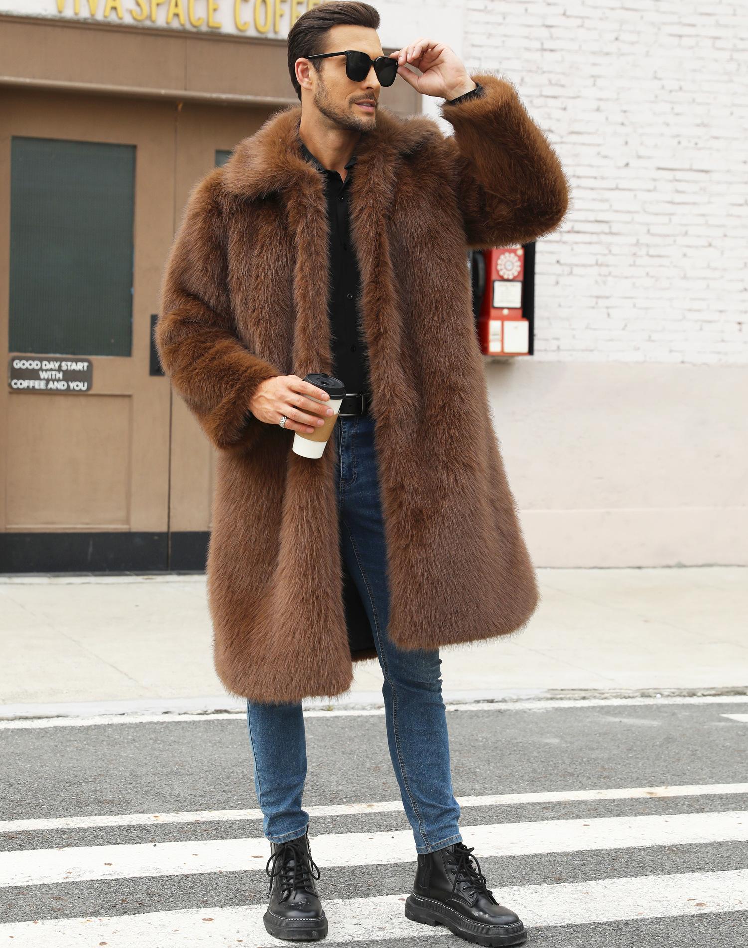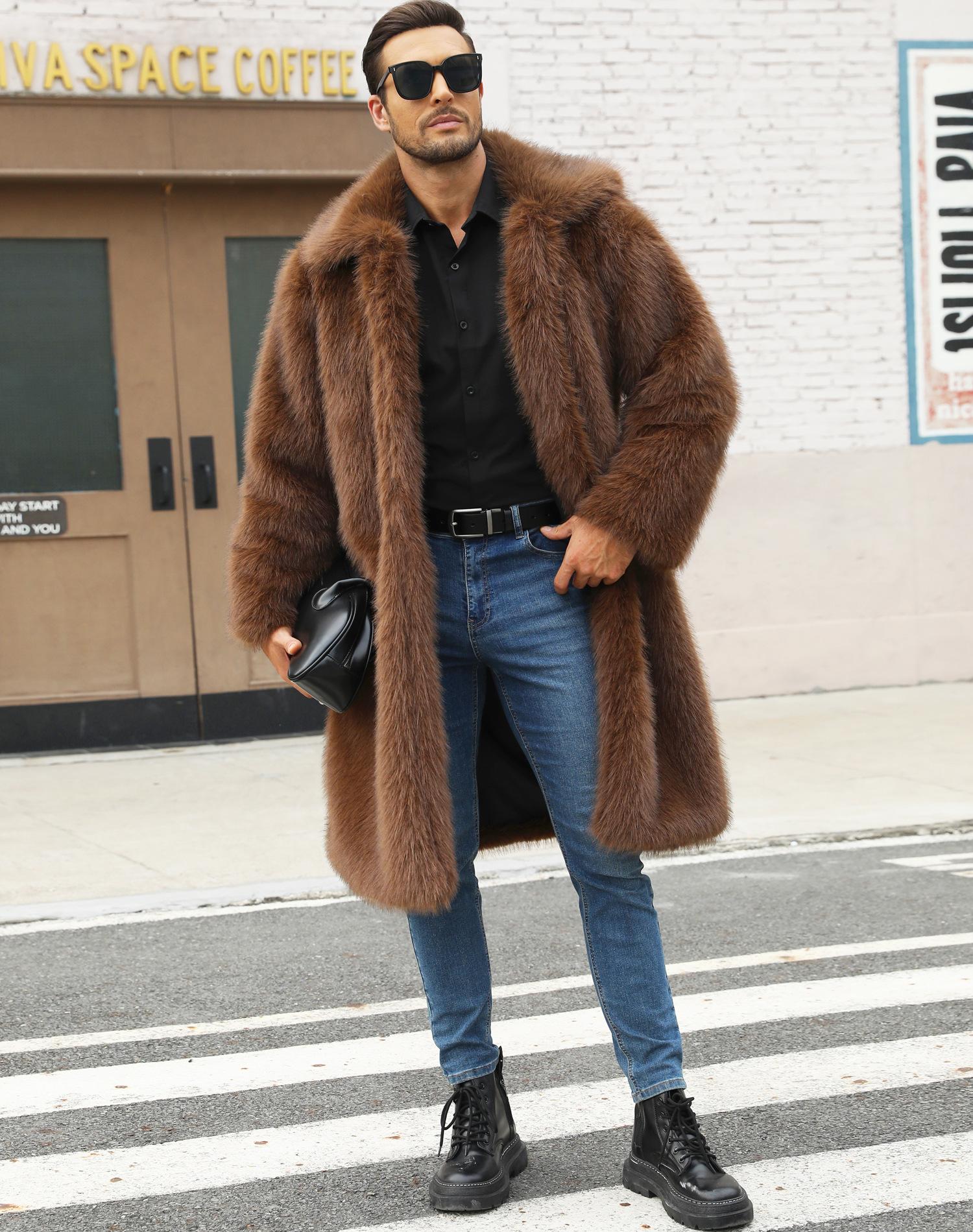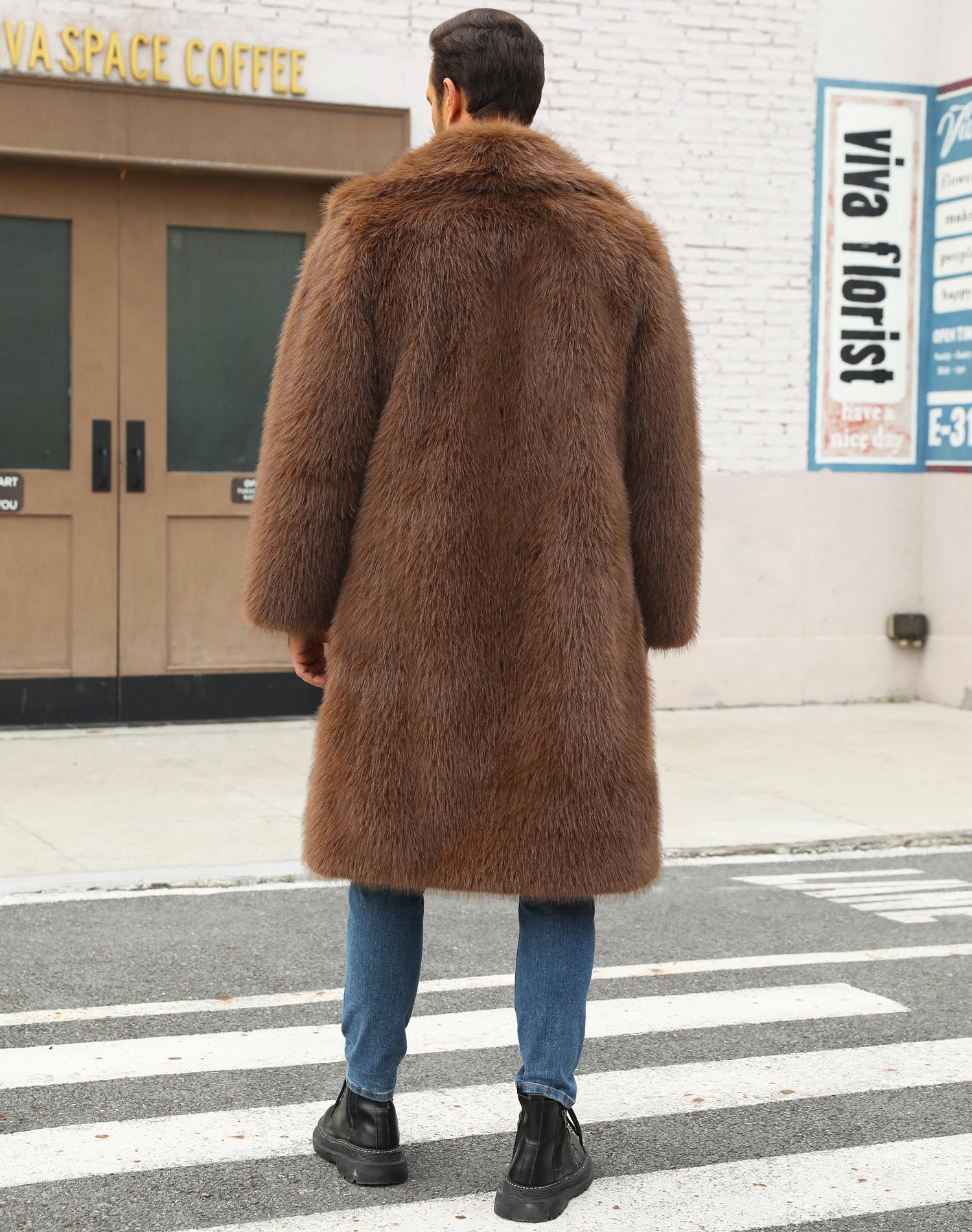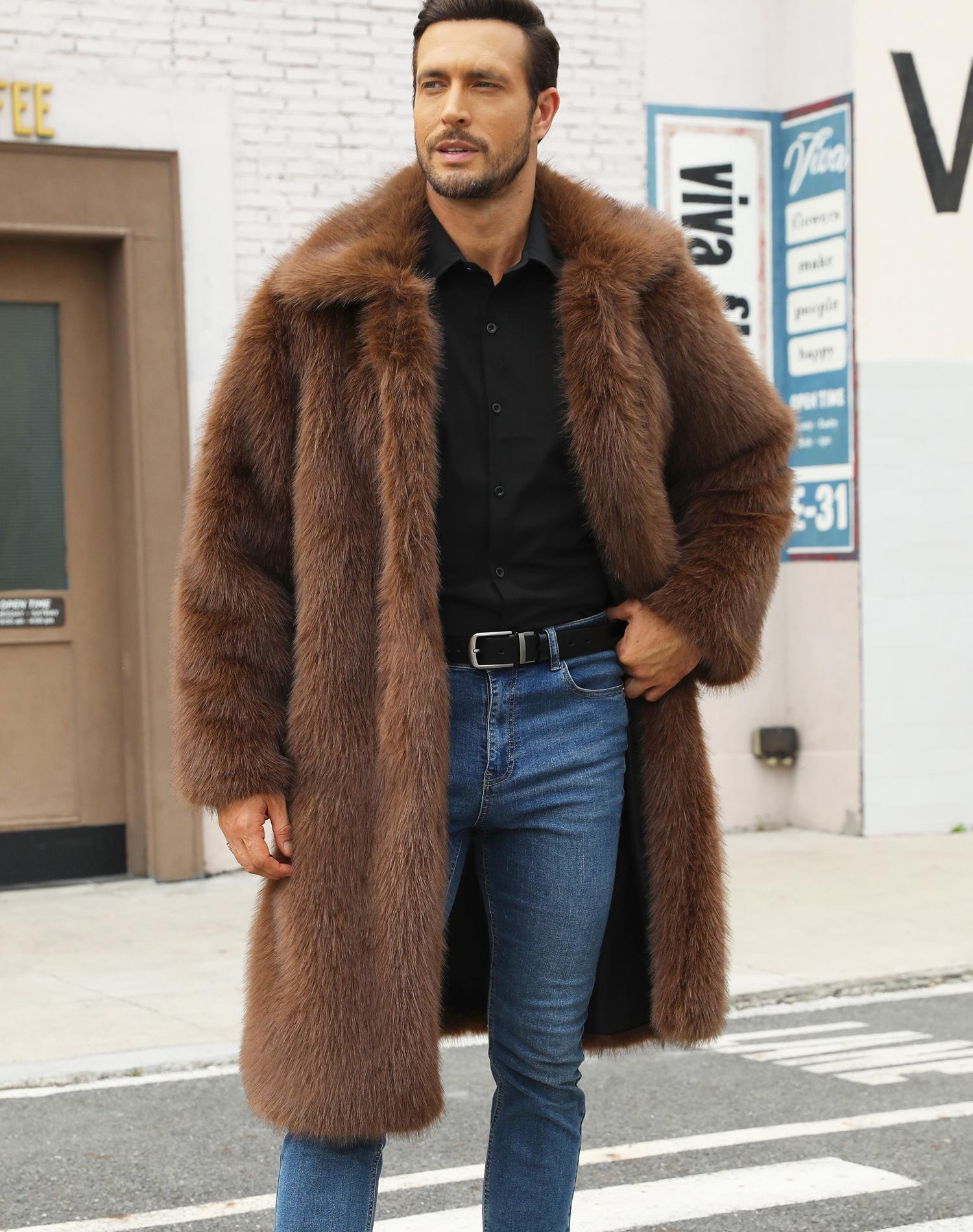 Abrigo de piel sintética de zorro para otoño e invierno, abrigo cálido y resistente al frío para hombres europeos y americanos.