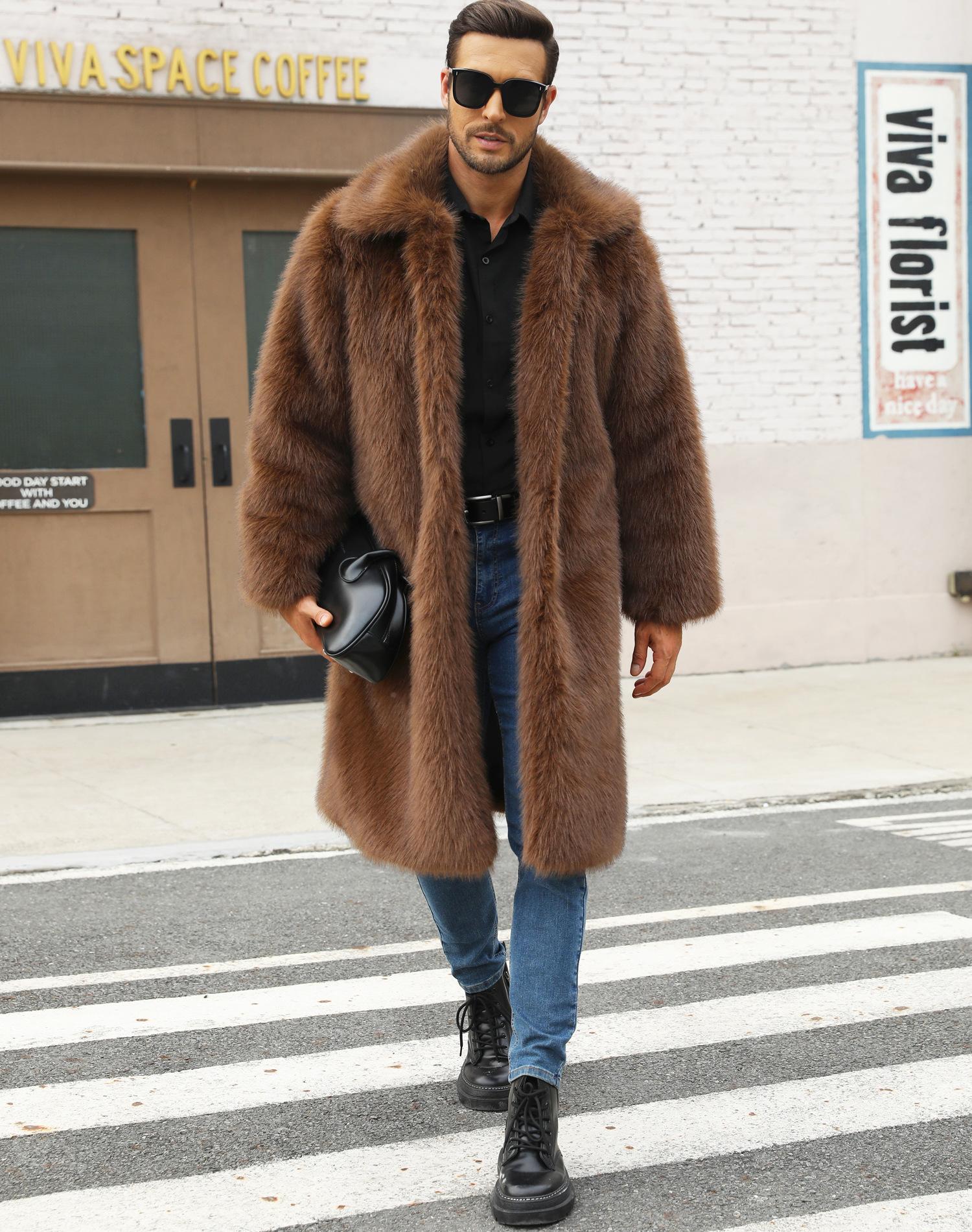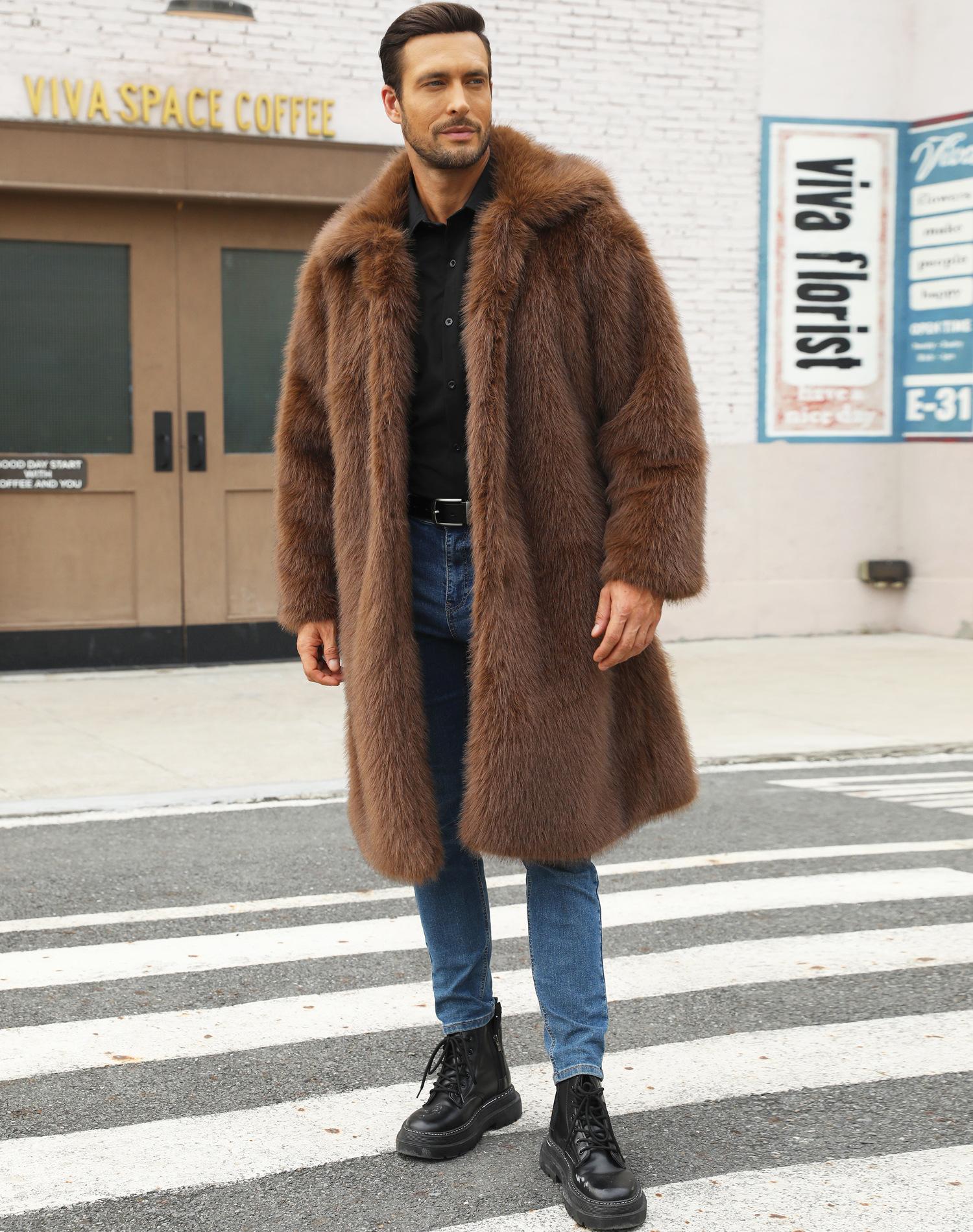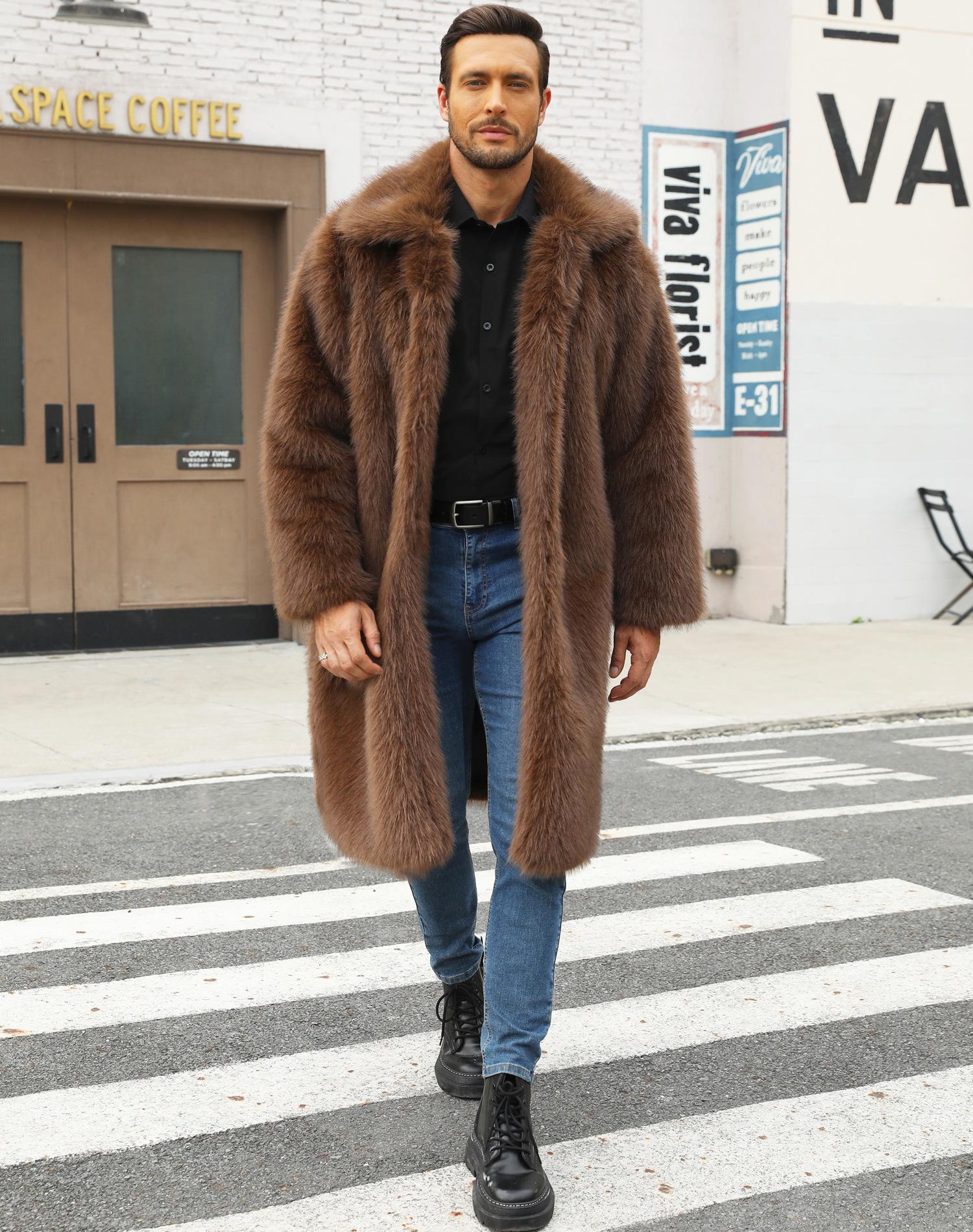 Abrigo de piel sintética de zorro para otoño e invierno, abrigo cálido y resistente al frío para hombres europeos y americanos.