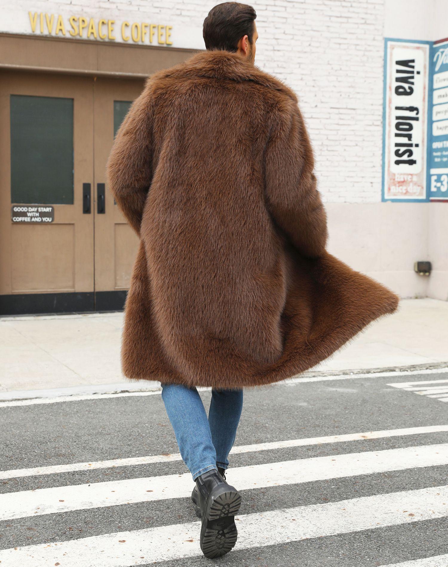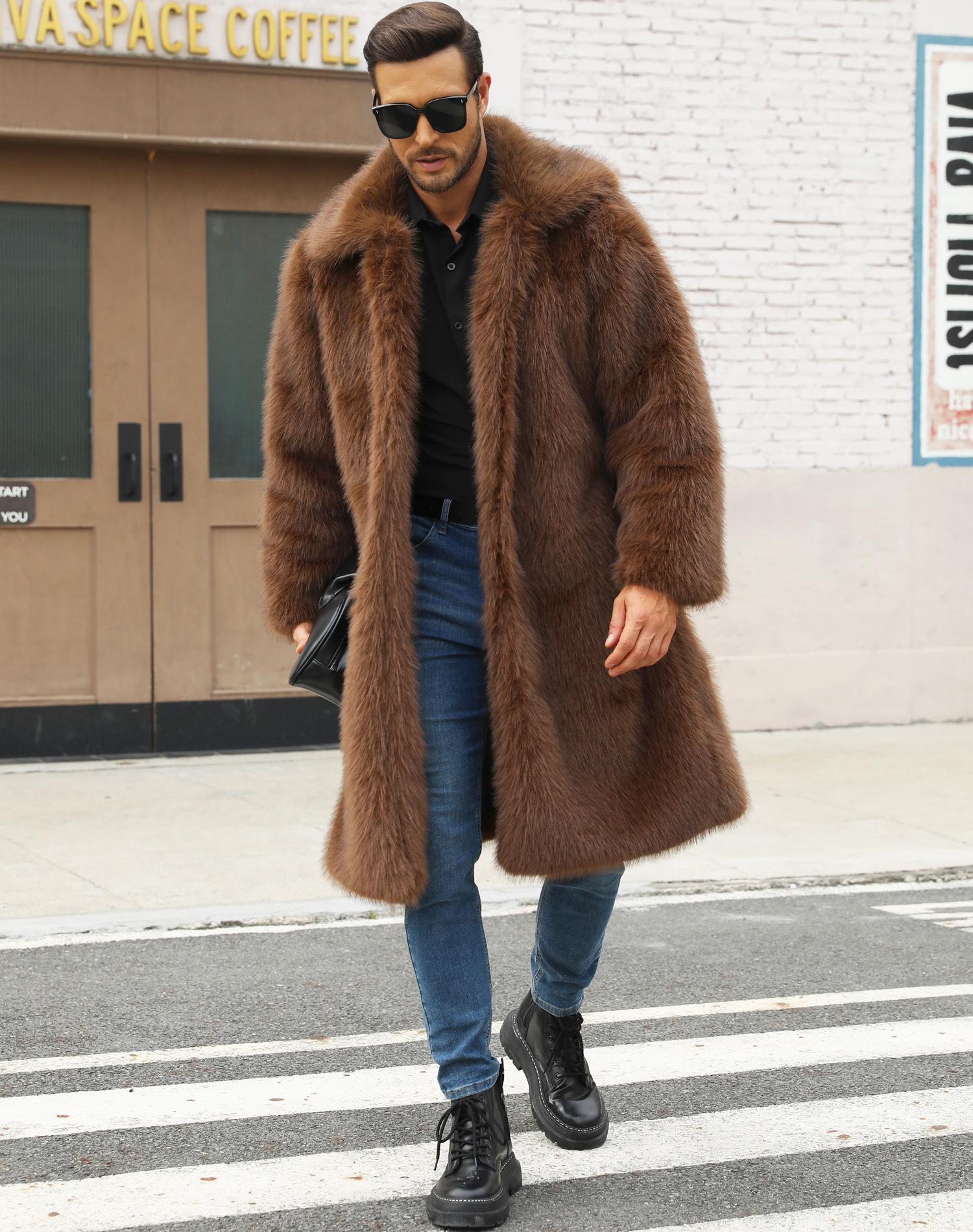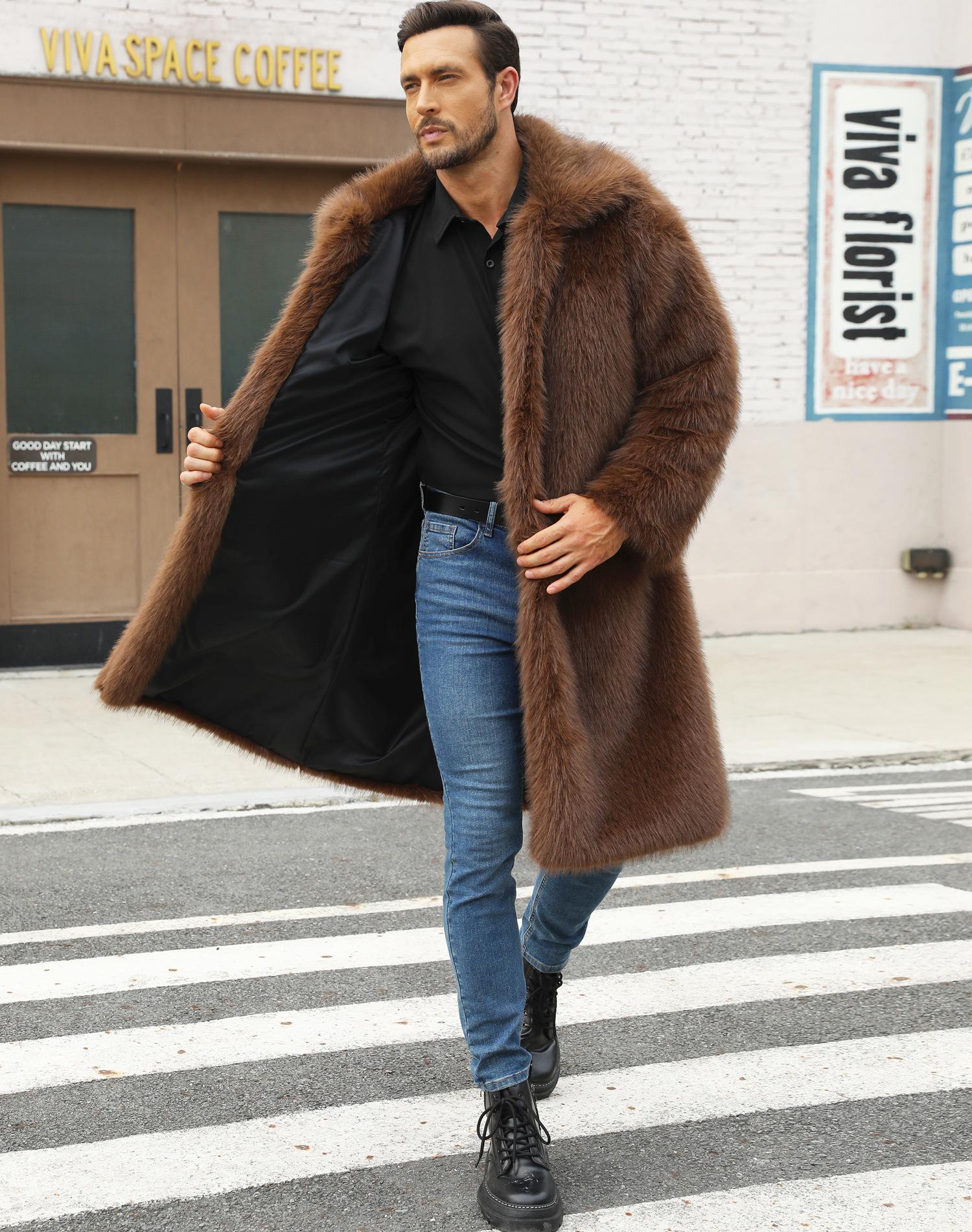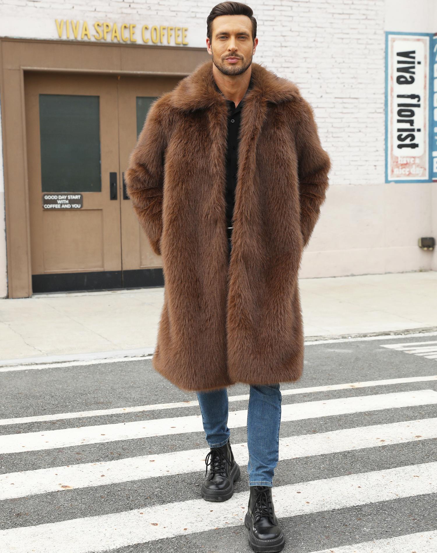 Abrigo de piel sintética de zorro para otoño e invierno, abrigo cálido y resistente al frío para hombres europeos y americanos.