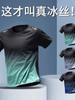 Camiseta deportiva de secado rápido para hombre, de manga corta, holgada, de seda helada, con cambio gradual de color y cuello redondo, ropa fina de verano para entrenamiento físico.