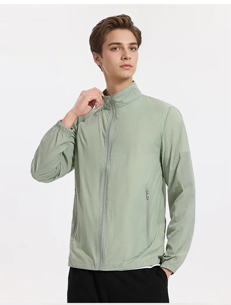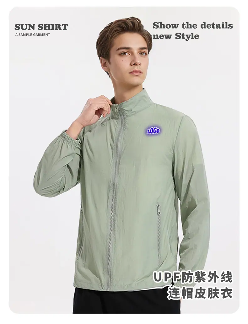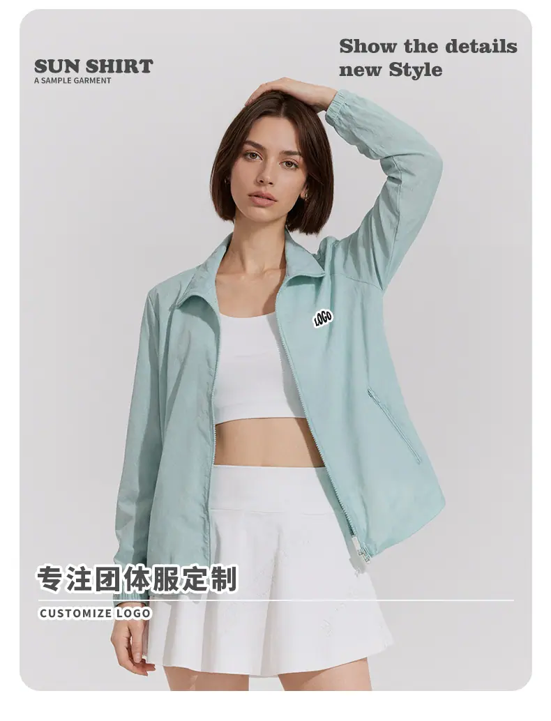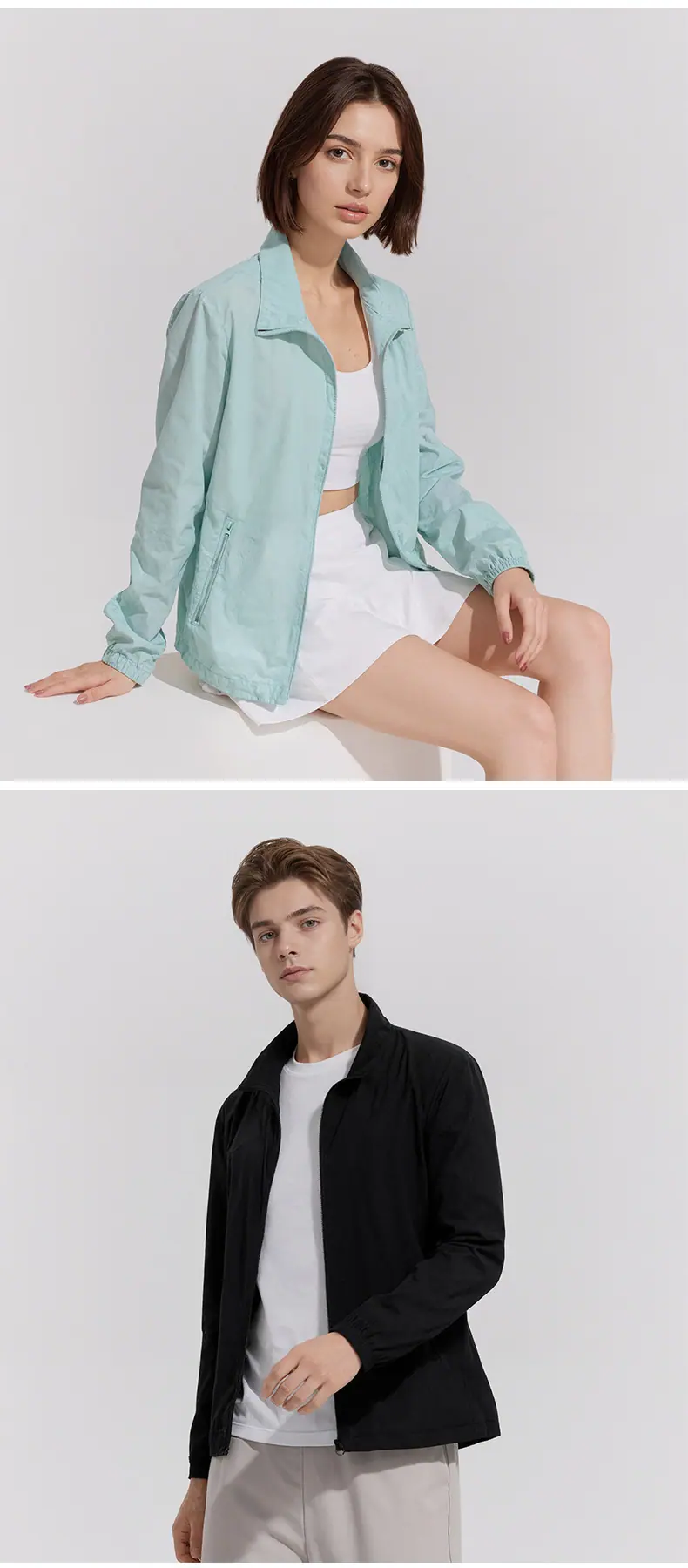 Ropa de protección solar de verano con cuello alto y sensación de hielo, color sólido, ligera, para hombre y mujer, ropa de exterior, abrigo holgado, ropa para la piel para mujer, prenda exterior