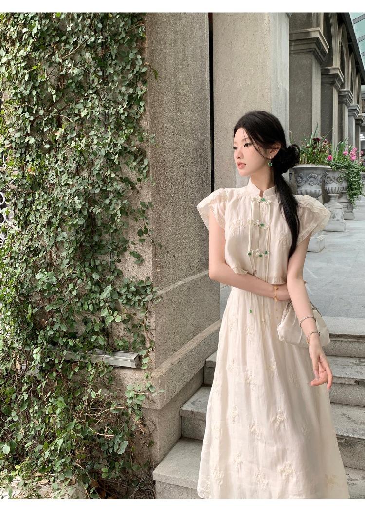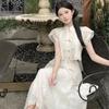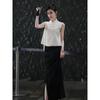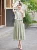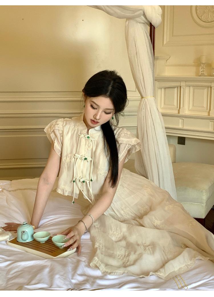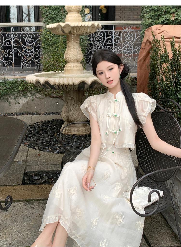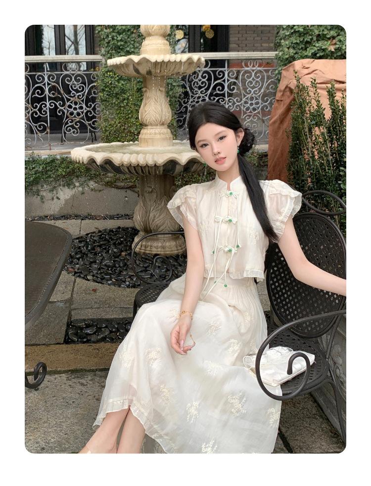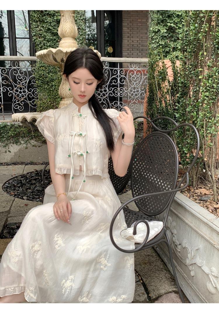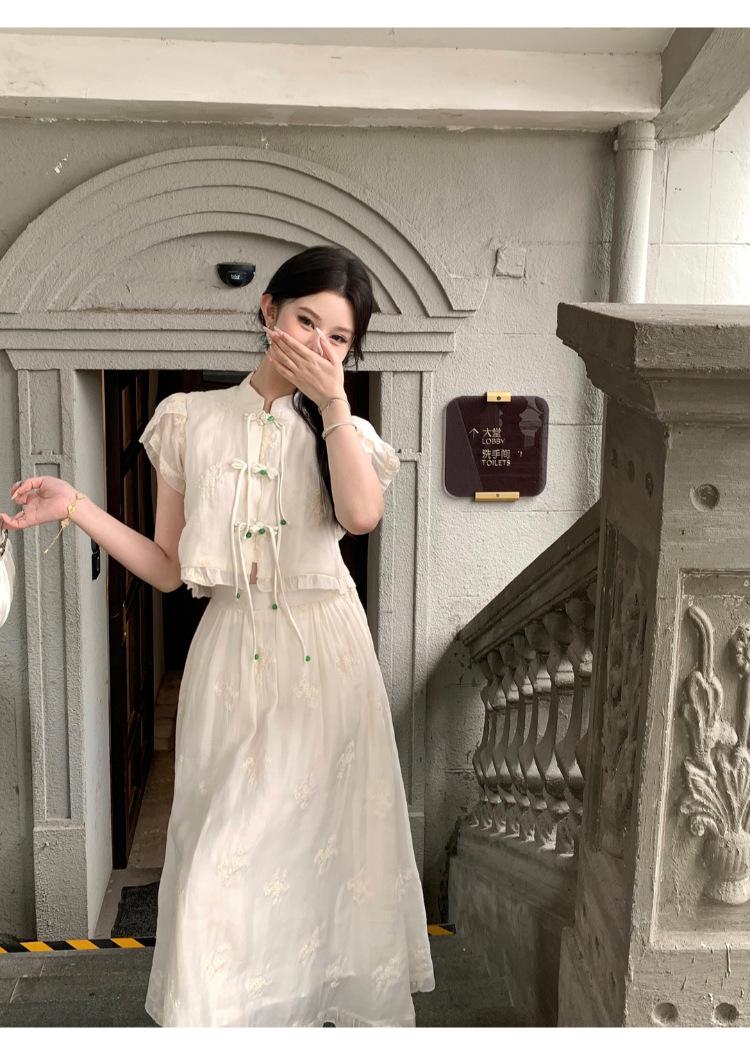Foto Real y Precio Real Nueva Camisa Elegante de Manga Corta con Hebilla de Borla Chinoiserie Falda de Cintura Alta Traje de Moda de Diseño para Mujer