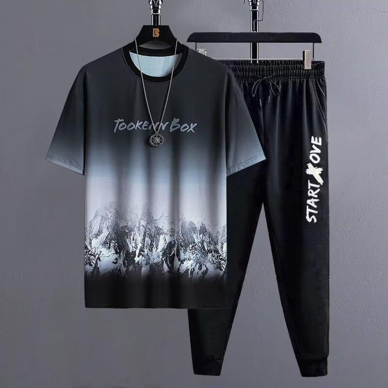 Nuevo Verano 2025 Transfronterizo Delgado Secado Rápido Manga Corta Traje Degradado Suelto Casual Deportivo Juvenil Conjunto de Dos Piezas