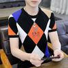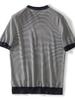 Camiseta de manga corta con cuello redondo a rayas para hombre, verano 2025, nueva camiseta informal de punto de seda helada a la moda con color en contraste.
