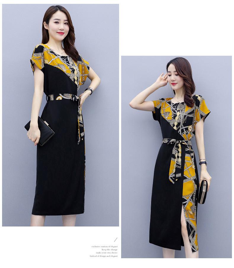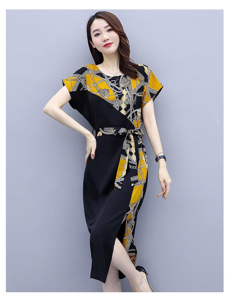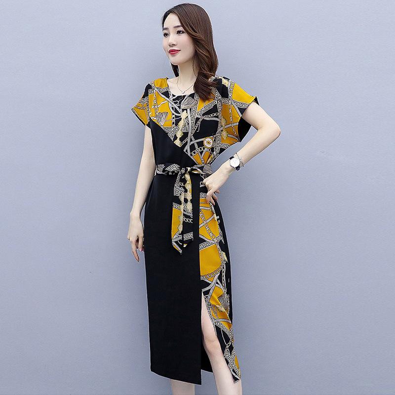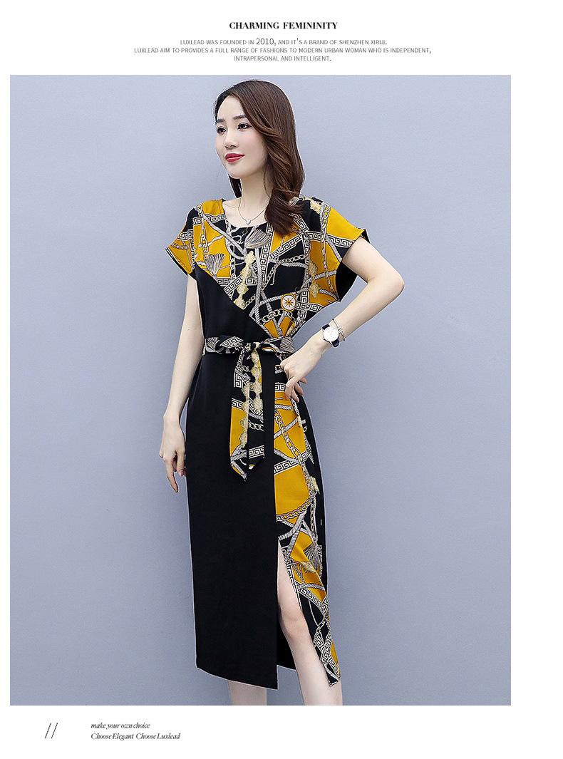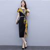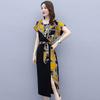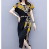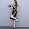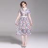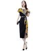 Vestido transfronterizo Verano 2023 Nuevo Elegante Cintura Cuello Redondo Moda Estampado Cordones Ajustado Falda Elegante