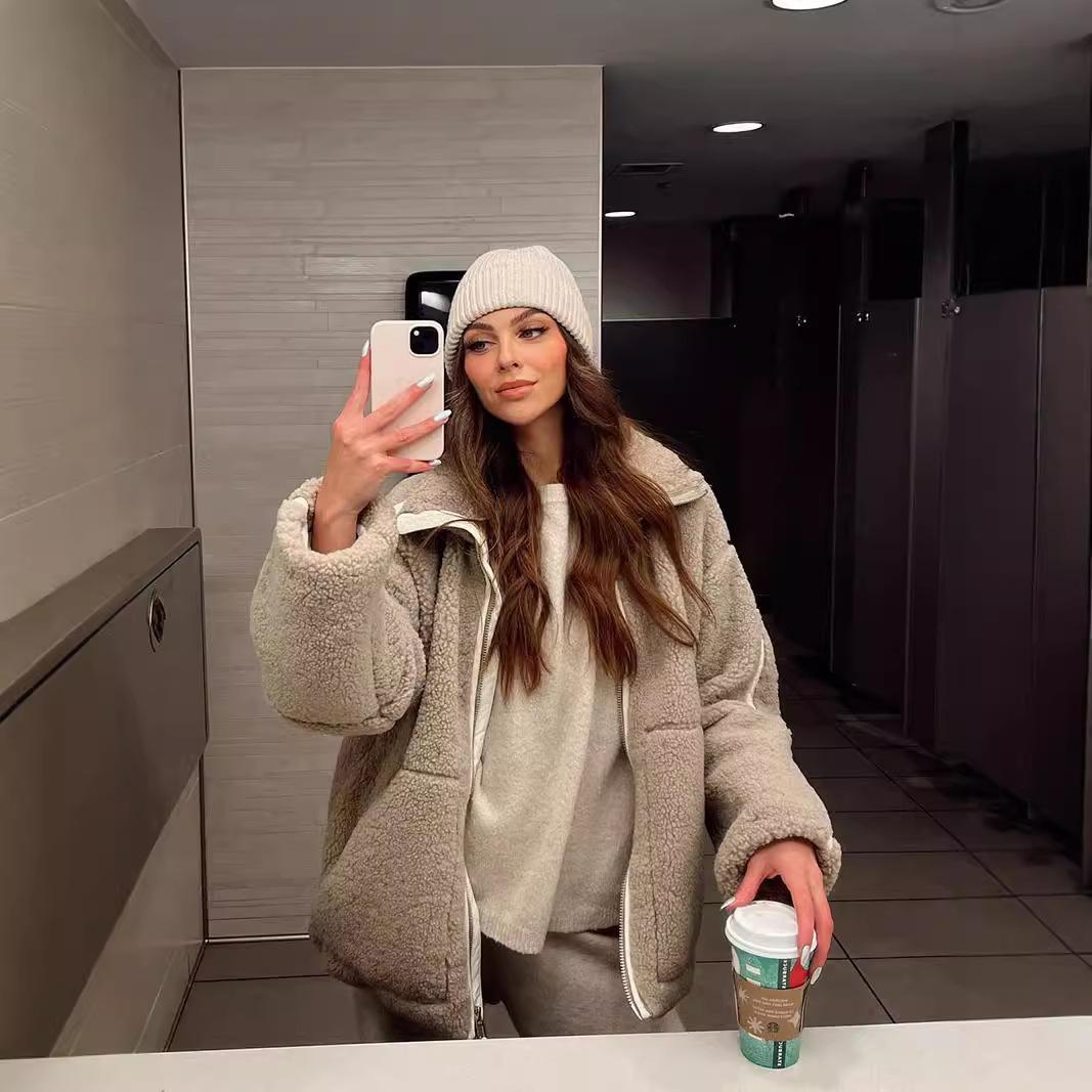 Chaqueta informal con cremallera para exteriores, personalizada, anticachemira, holgada, de otoño e invierno, para mujer europea y americana transfronteriza de Amazon