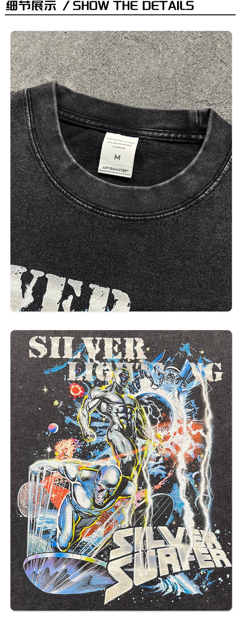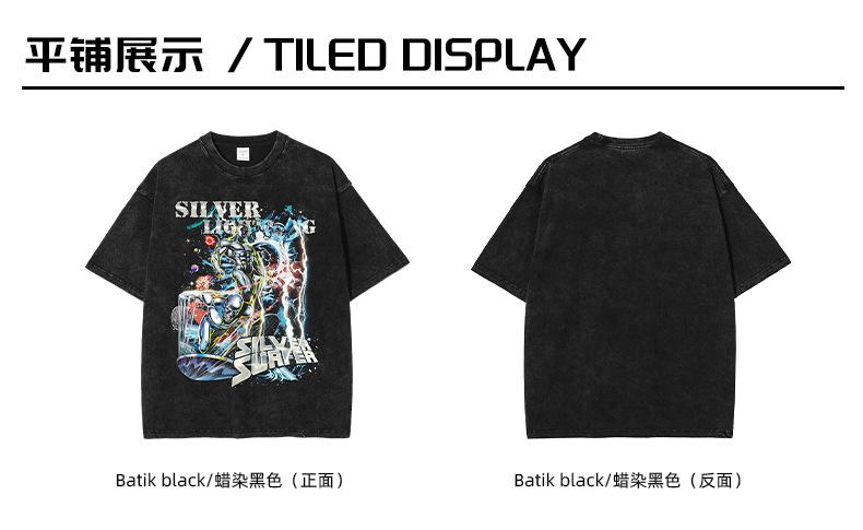 Cadena de ropa de moda para hombre, primavera y verano 2025, nueva marca de moda retro, ropa para hombre, manga corta, lavado con agua para hacer, vieja camiseta de dibujos animados genial.