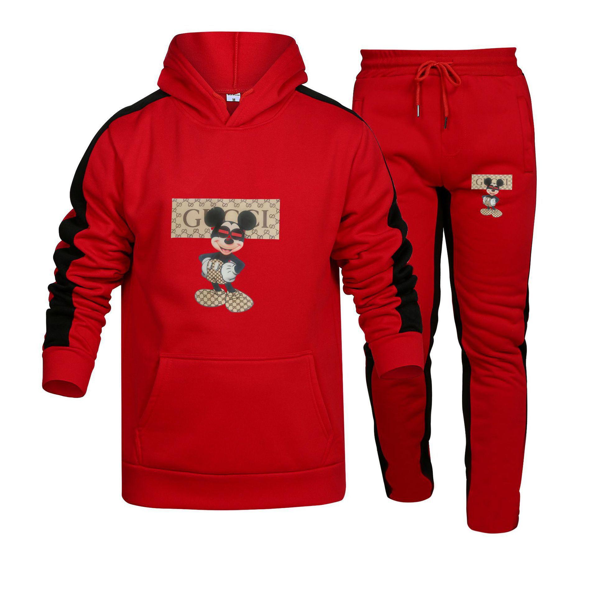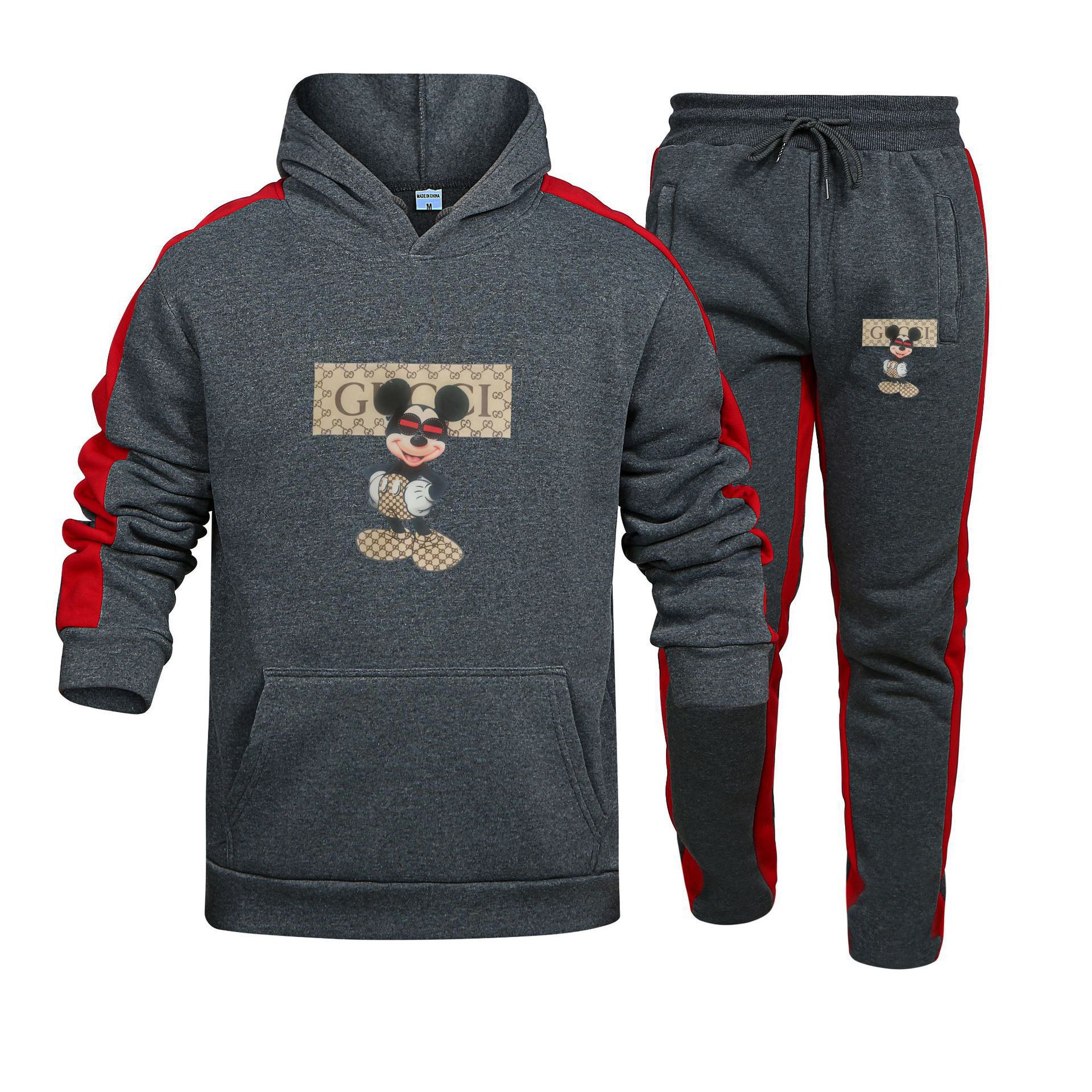 Marca de Moda de Otoño Europea y Americana Transfronteriza Sudadera con Capucha Estampada para Hombre y Mujer Traje Deportivo Casual para Pareja Conjunto de Dos Piezas de Pantalón de Sudadera