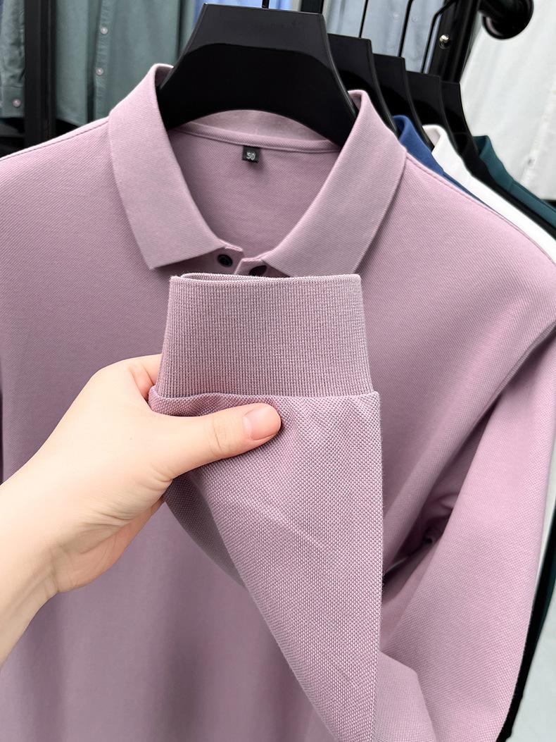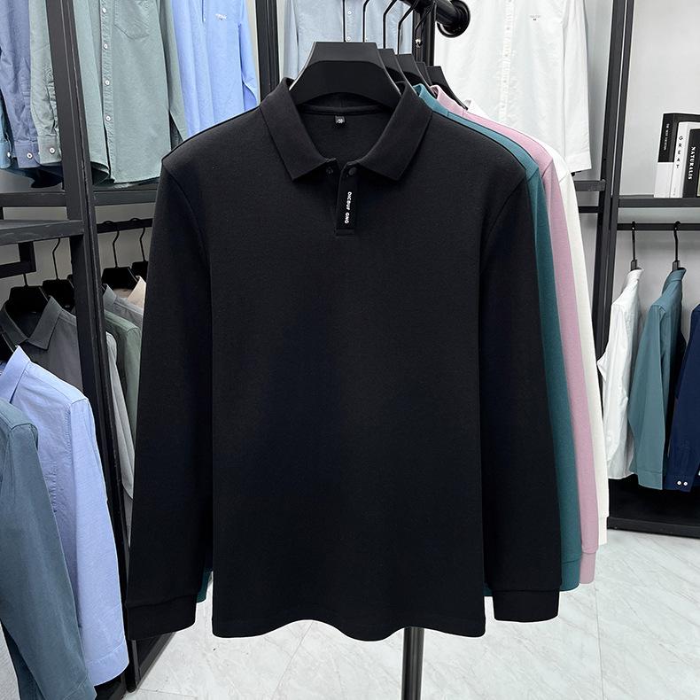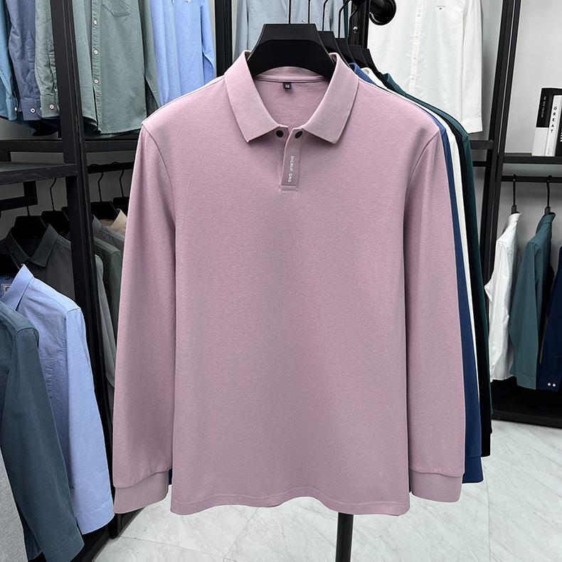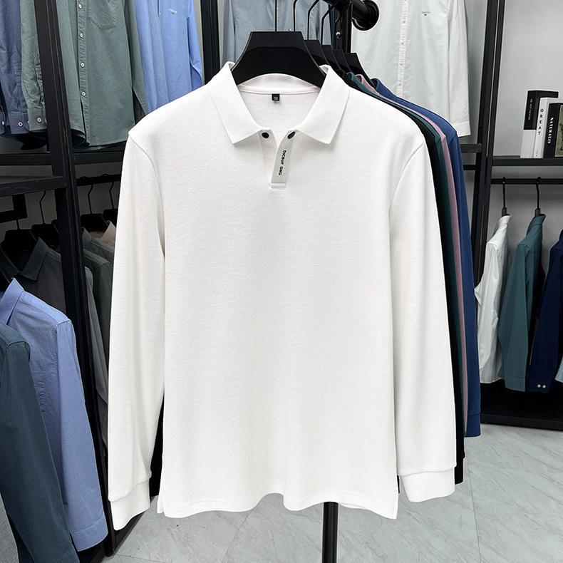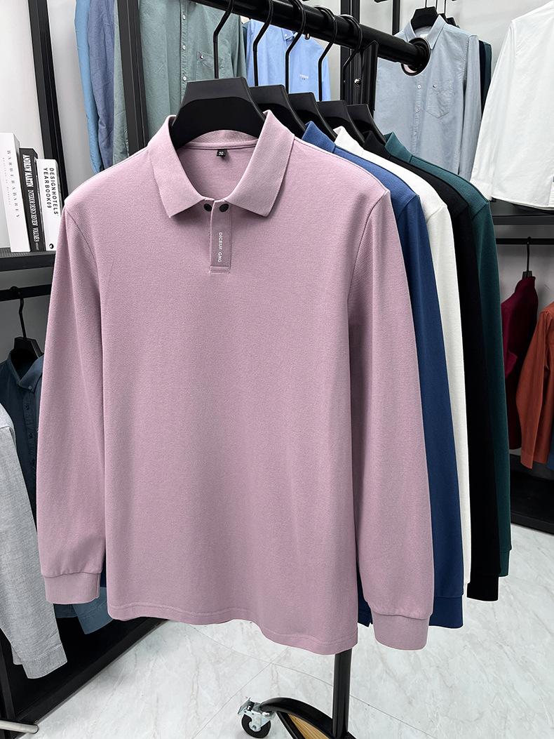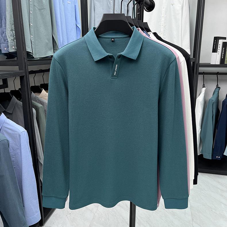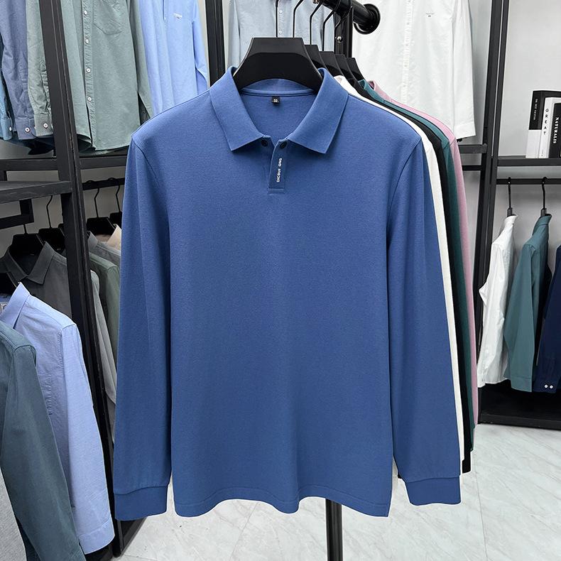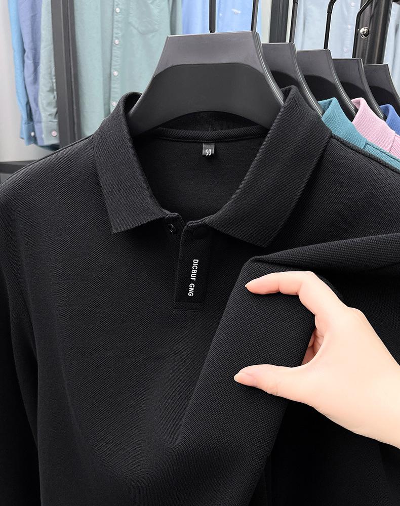 Camiseta de Manga Larga de Algodón 100% Estilo Nuevo de Primavera y Otoño para Hombre Piqué Doble Cara Un Botón Business Casual Polo para Hombre