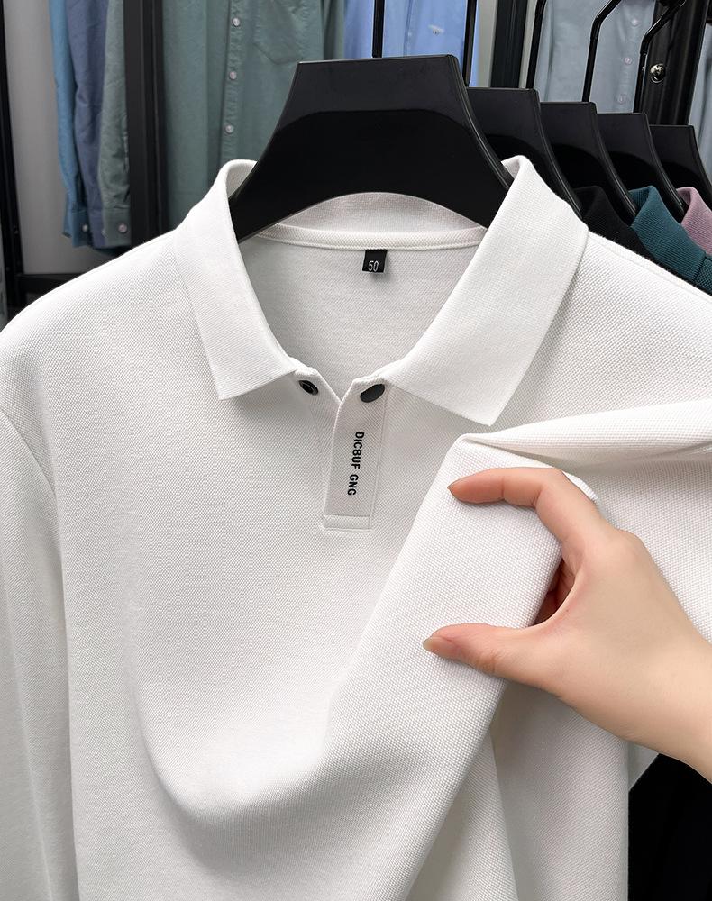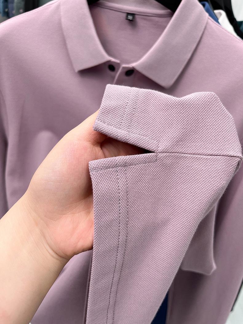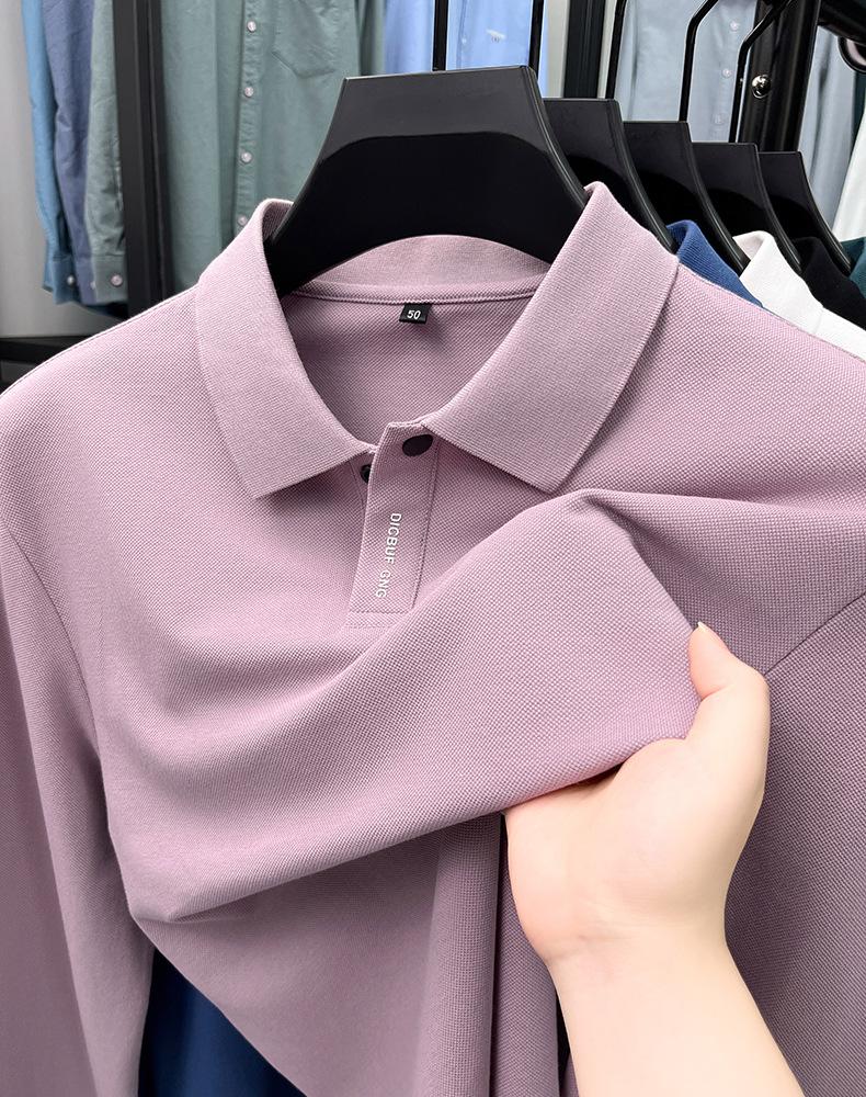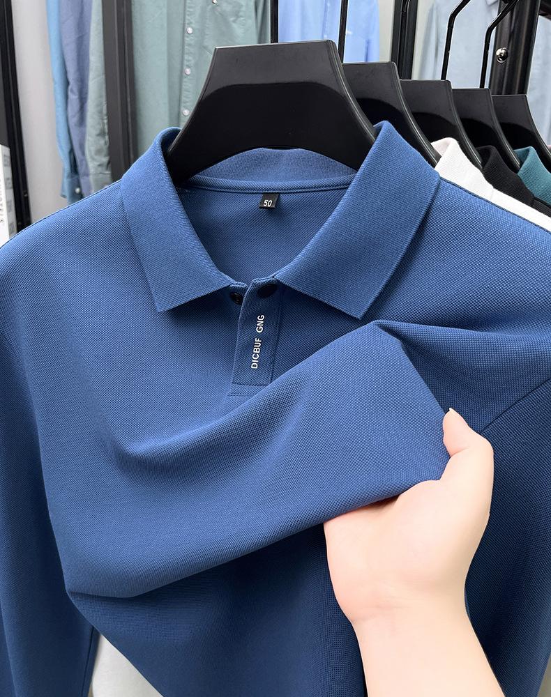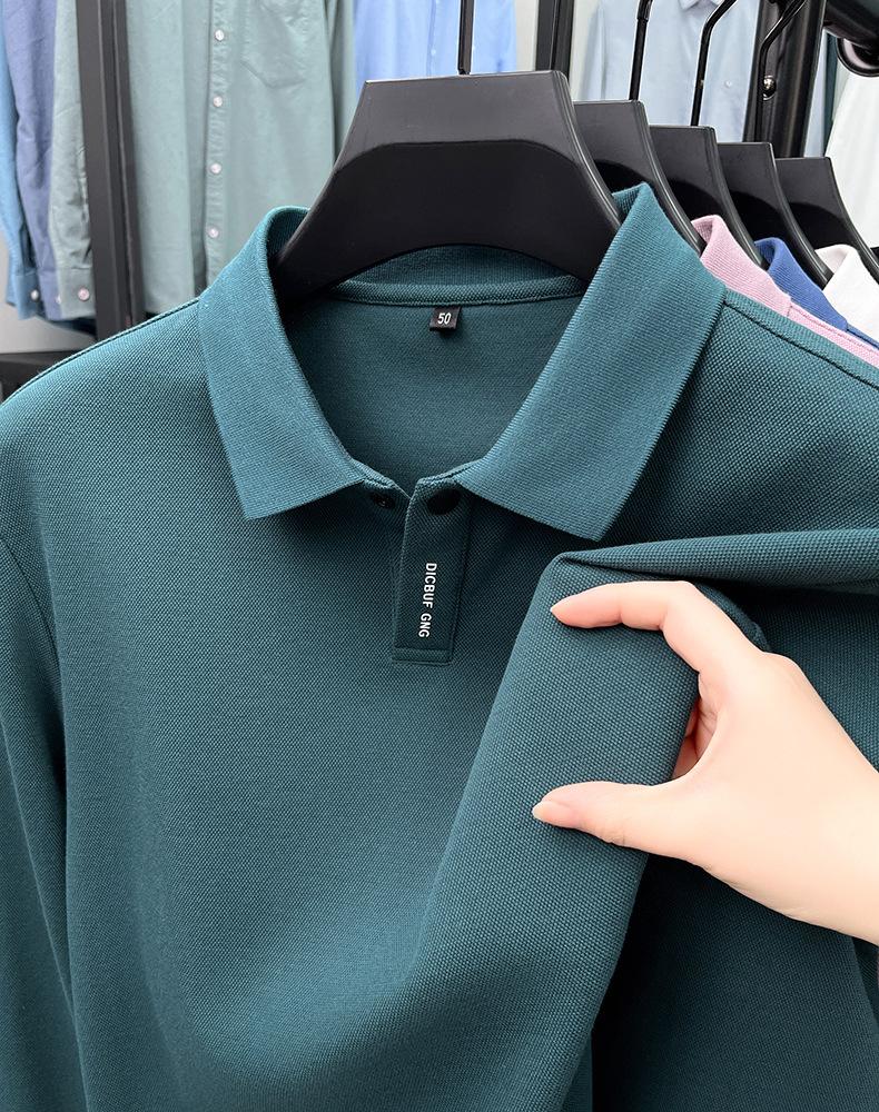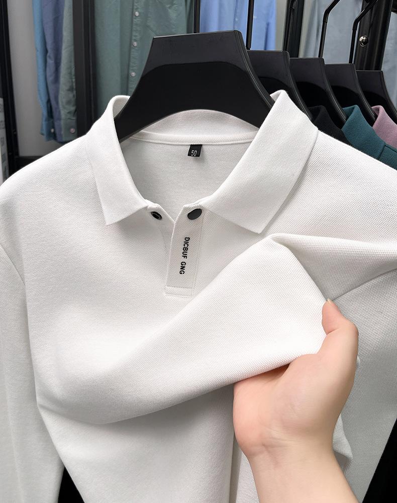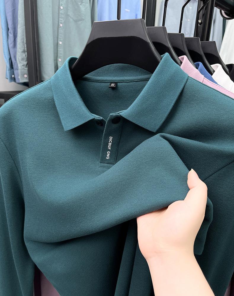 Camiseta de Manga Larga de Algodón 100% Estilo Nuevo de Primavera y Otoño para Hombre Piqué Doble Cara Un Botón Business Casual Polo para Hombre