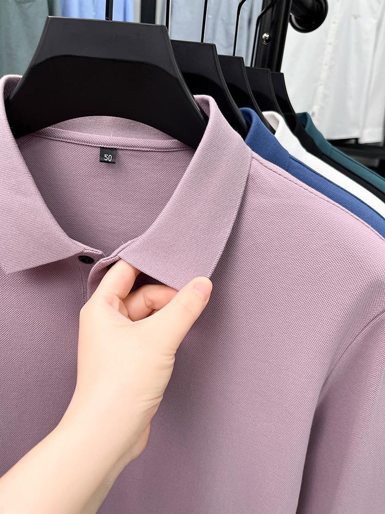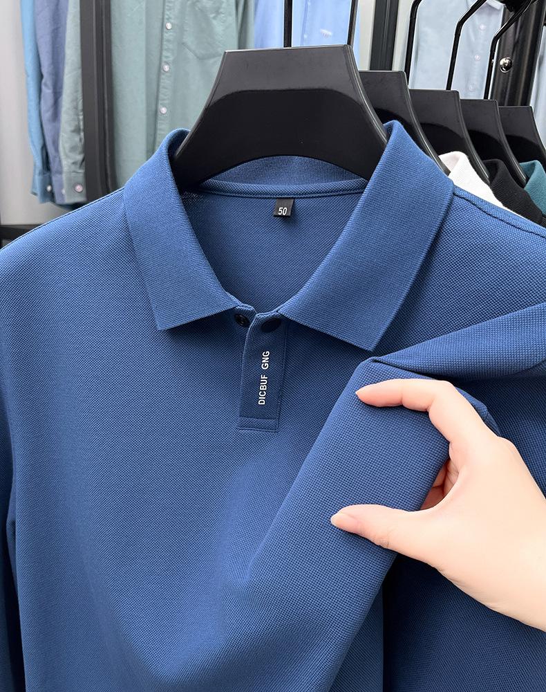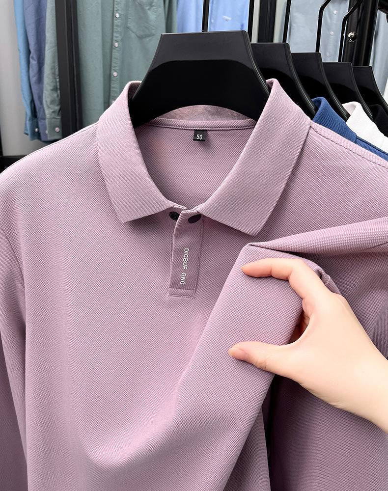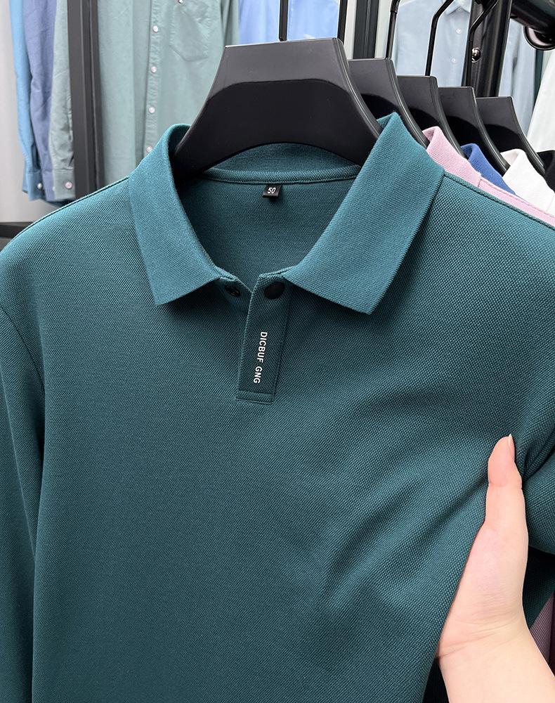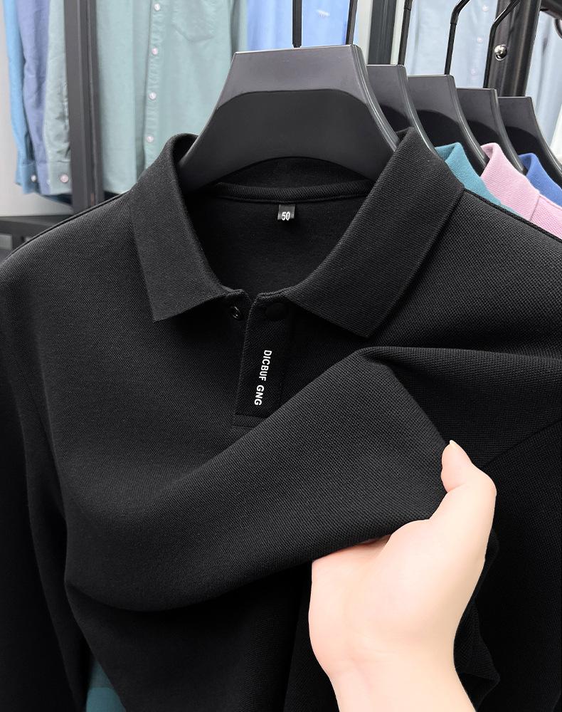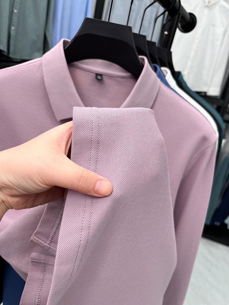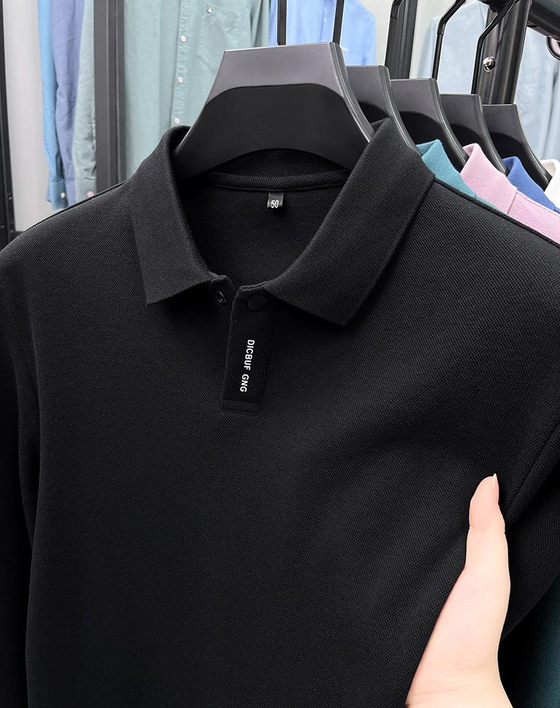 Camiseta de Manga Larga de Algodón 100% Estilo Nuevo de Primavera y Otoño para Hombre Piqué Doble Cara Un Botón Business Casual Polo para Hombre