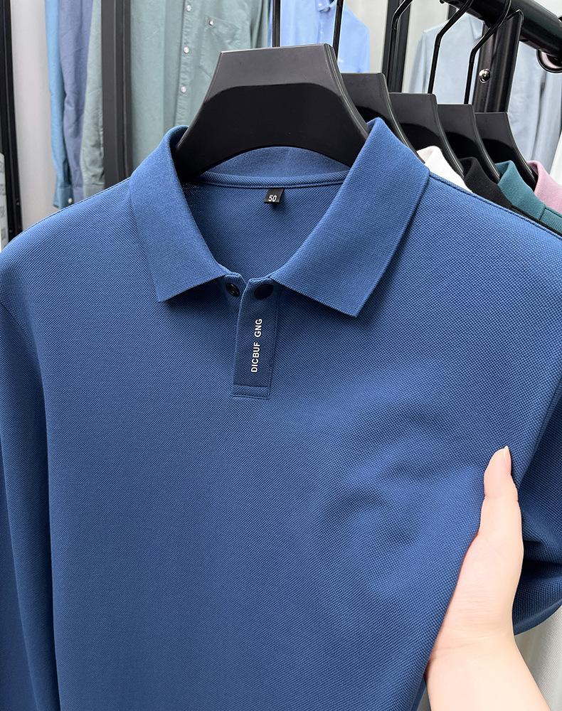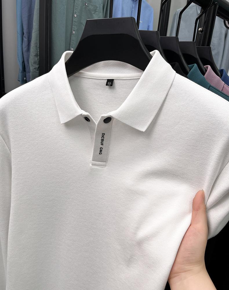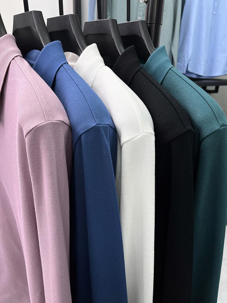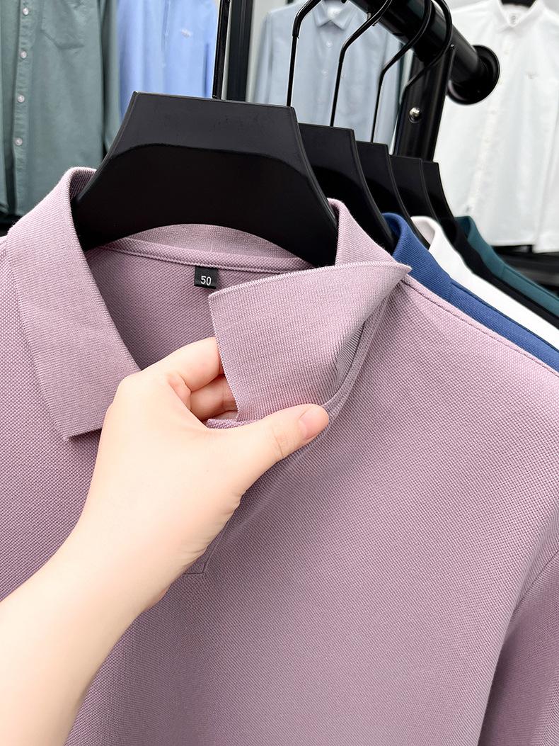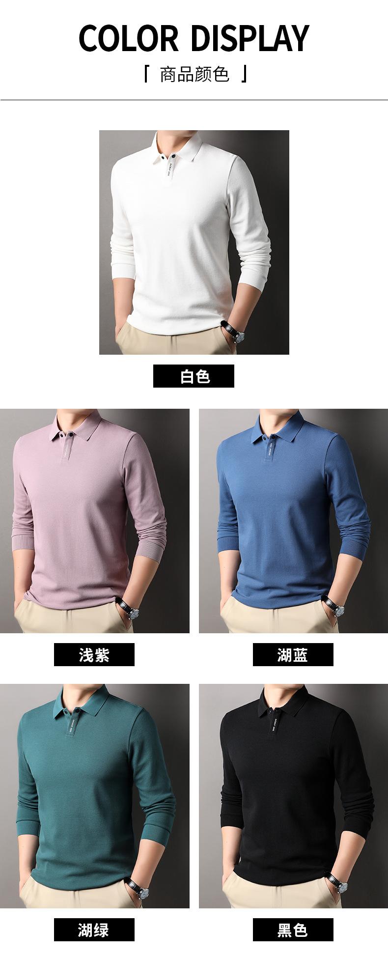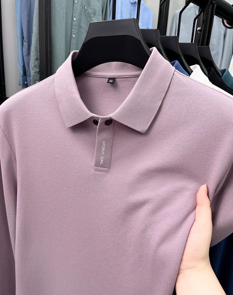 Camiseta de Manga Larga de Algodón 100% Estilo Nuevo de Primavera y Otoño para Hombre Piqué Doble Cara Un Botón Business Casual Polo para Hombre