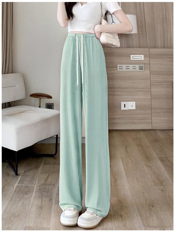 Pantalones de mujer embarazada 2024 nuevo verano sin soporte abdominal con cordón pantalones de pierna ancha primavera y verano pantalones de fregona fina de seda de hielo ropa exterior