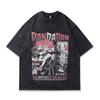 Camiseta de hombre de la marca de moda TKPA, estilo americano, vintage, retro, de calle, estampada, de algodón puro, lavada, de manga corta.