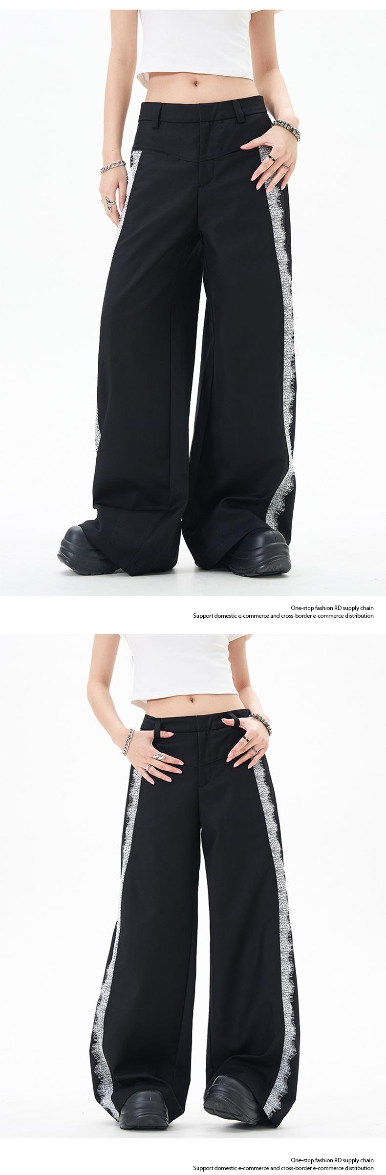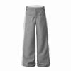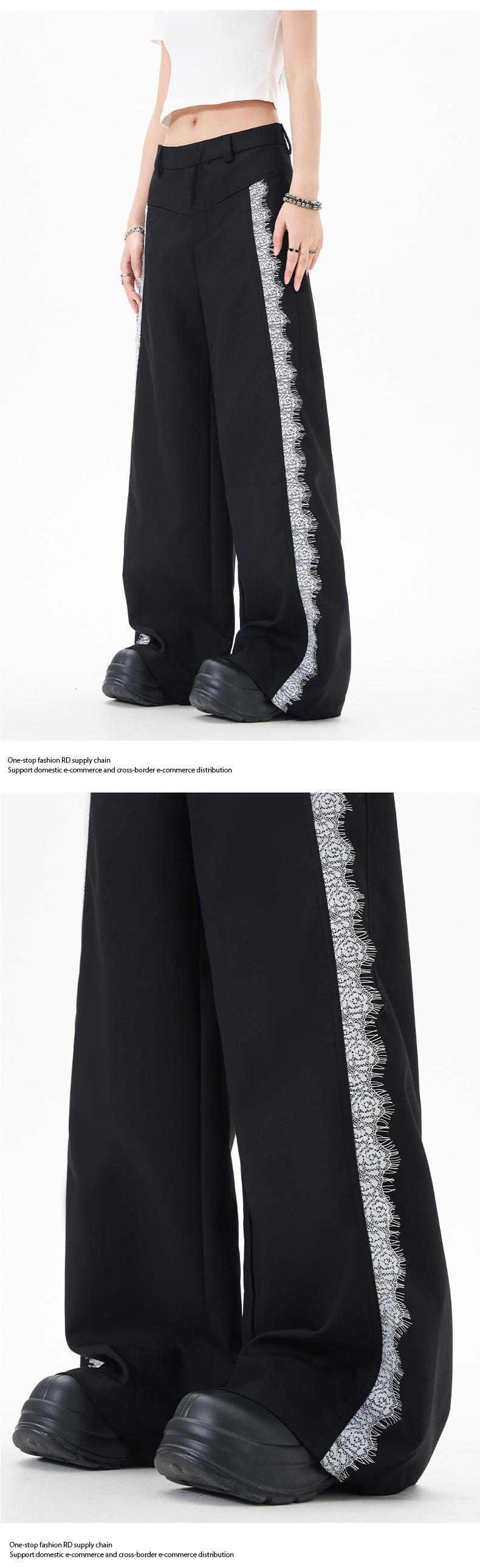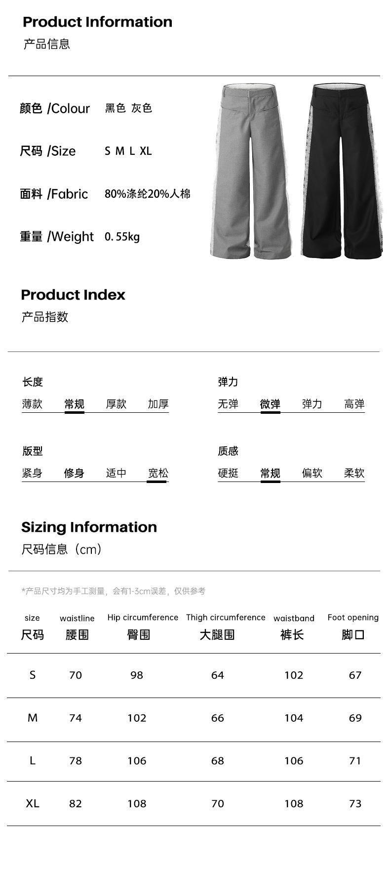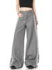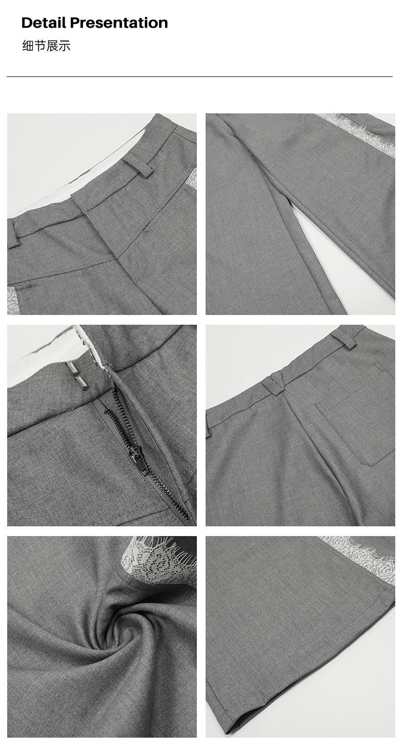 OREETA Pantalones Grises Drapeados con Encaje en el Borde y Costuras Marca de Moda Avanzada Pierna Ancha Adelgazantes Casuales