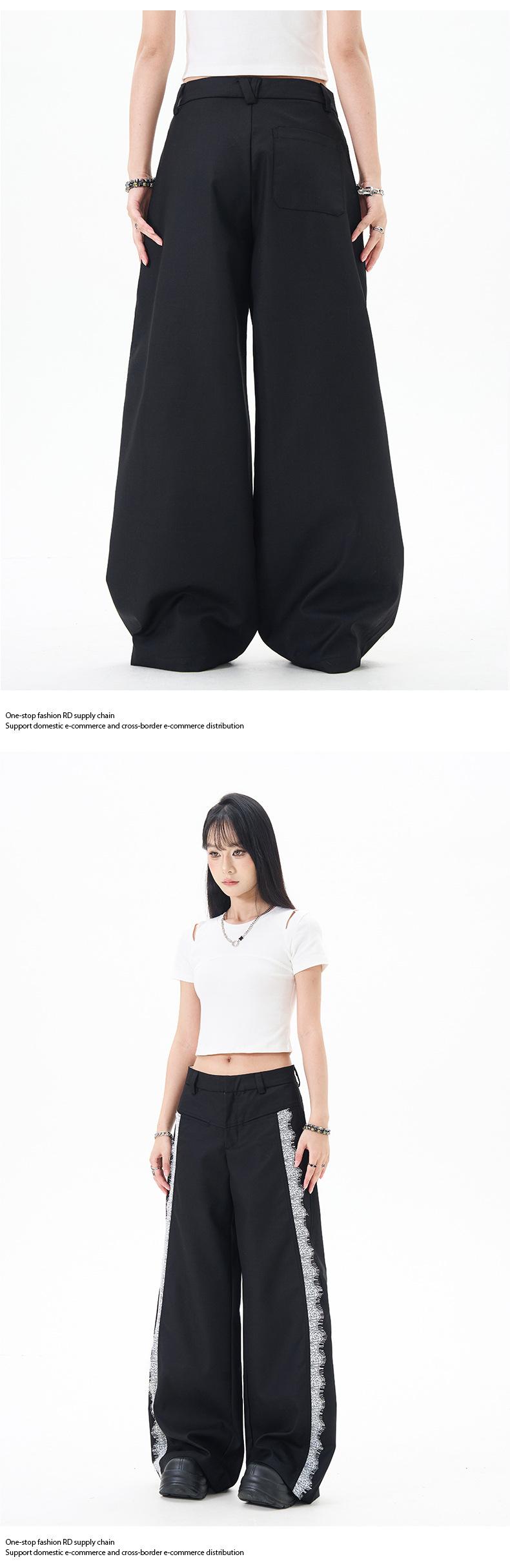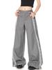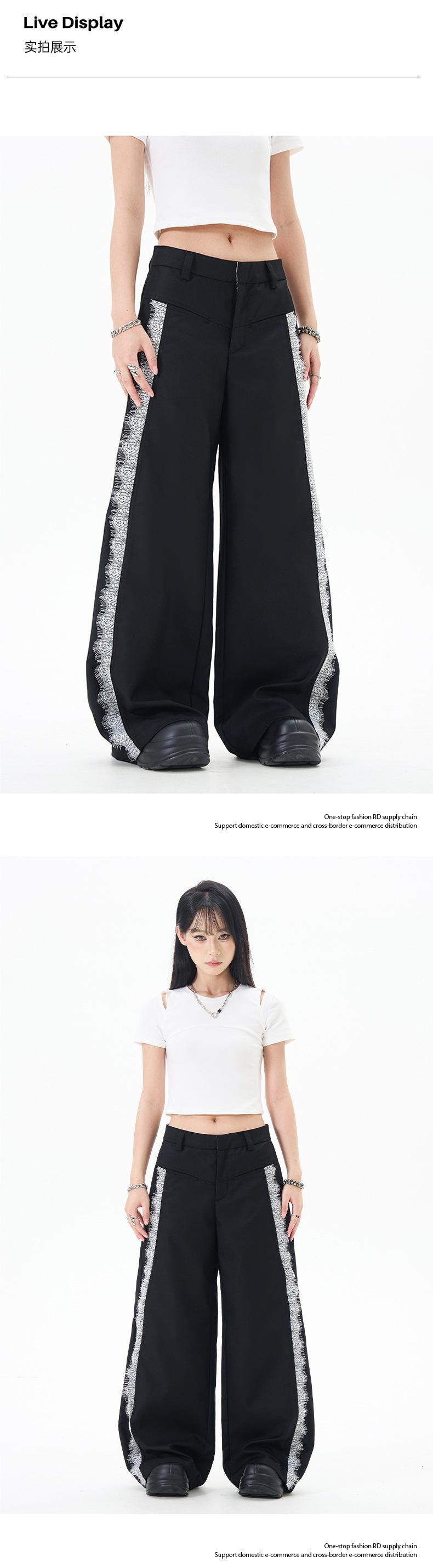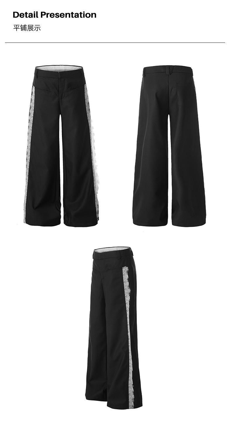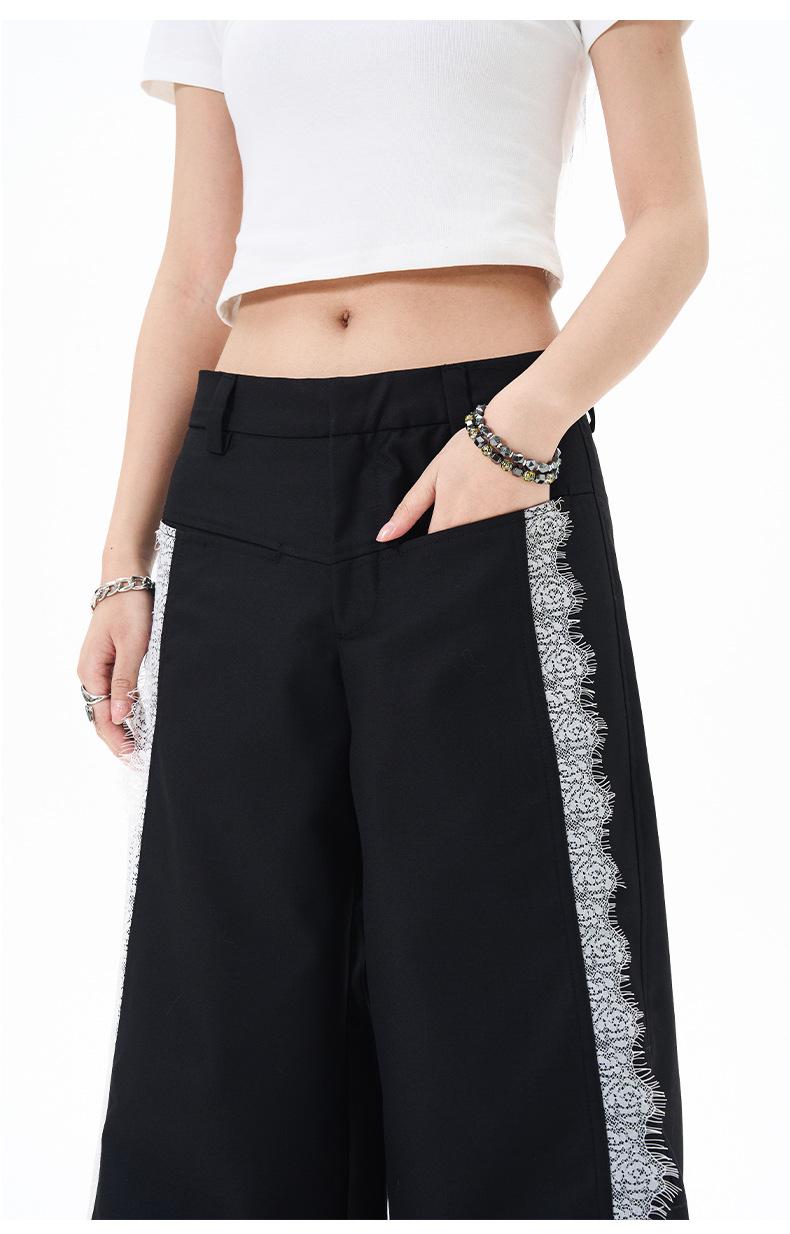 OREETA Pantalones Grises Drapeados con Encaje en el Borde y Costuras Marca de Moda Avanzada Pierna Ancha Adelgazantes Casuales