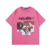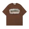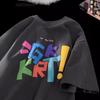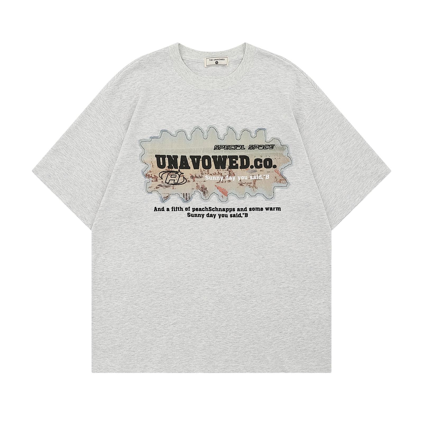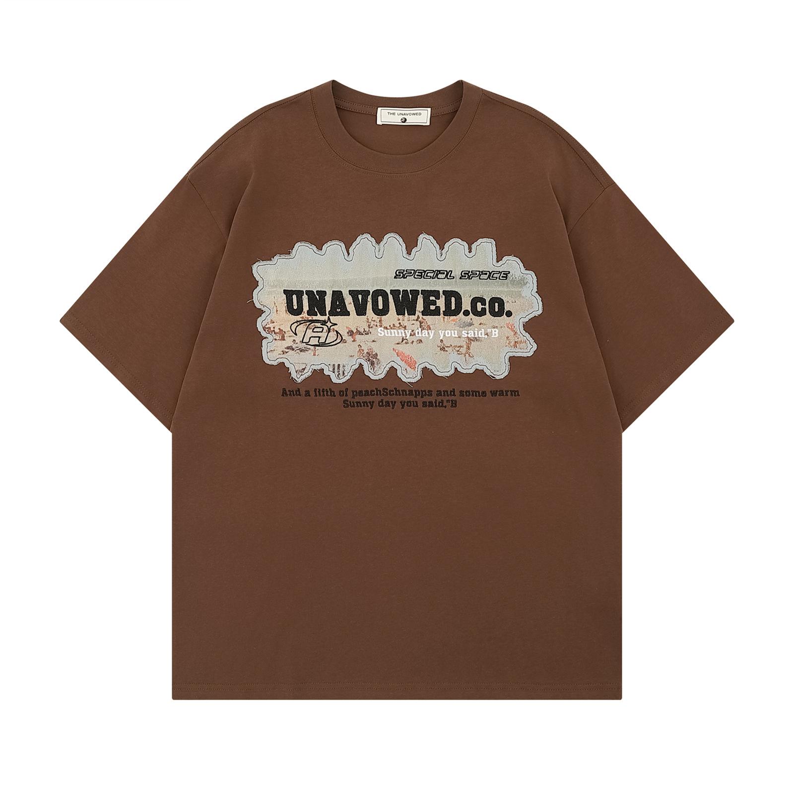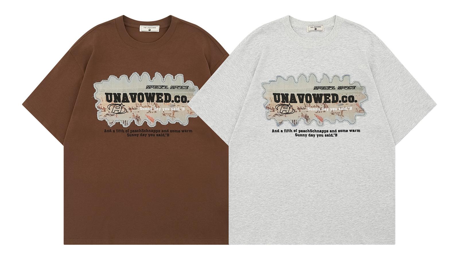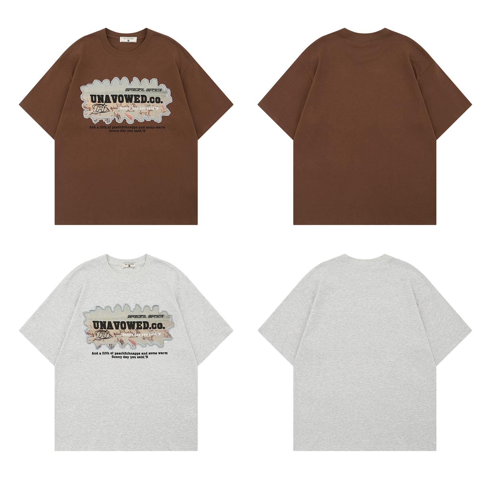 Camiseta de manga corta de verano con letras bordadas y pegatinas vintage americanas para hombre y mujer, holgada, combinable, de algodón puro para parejas.